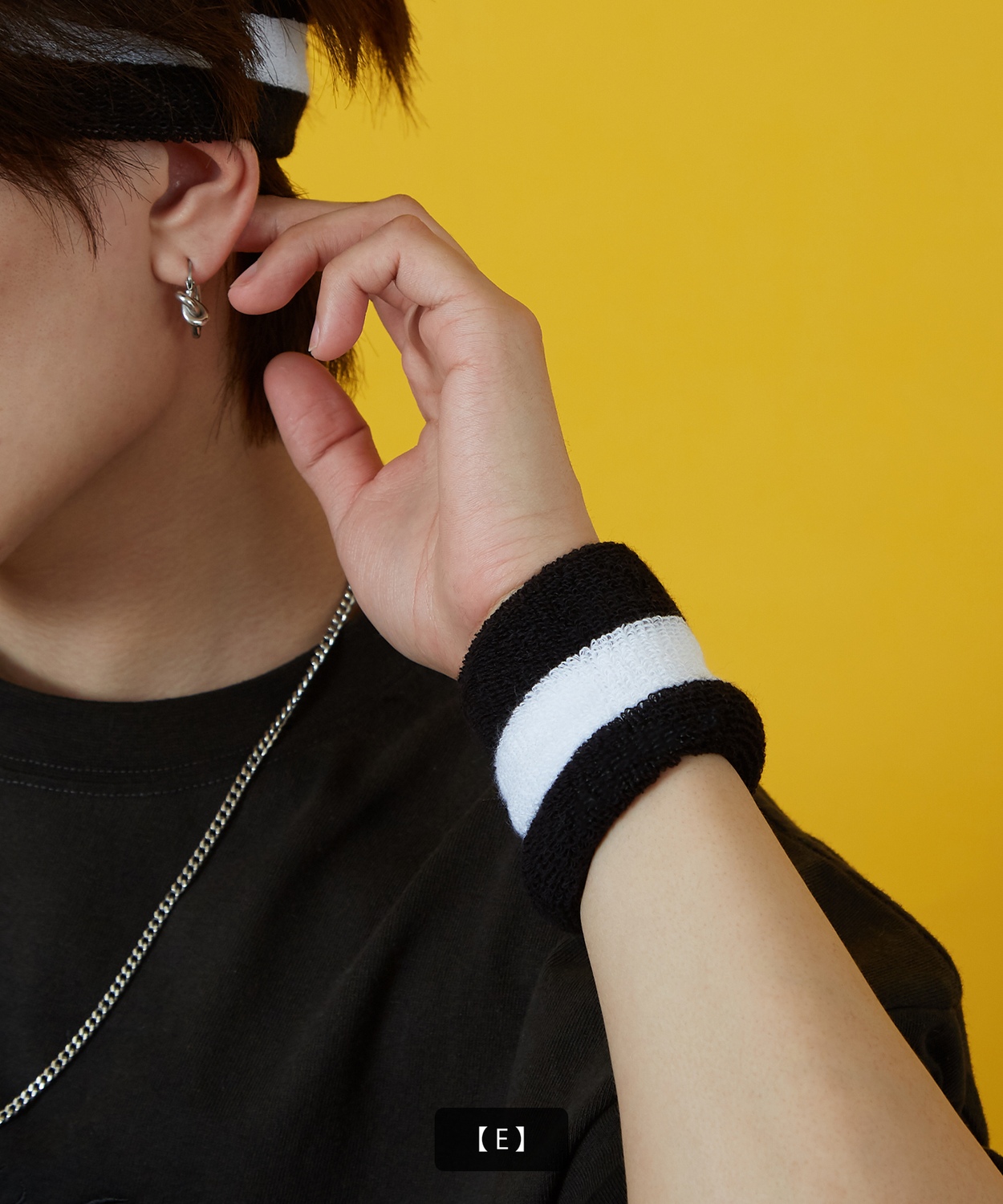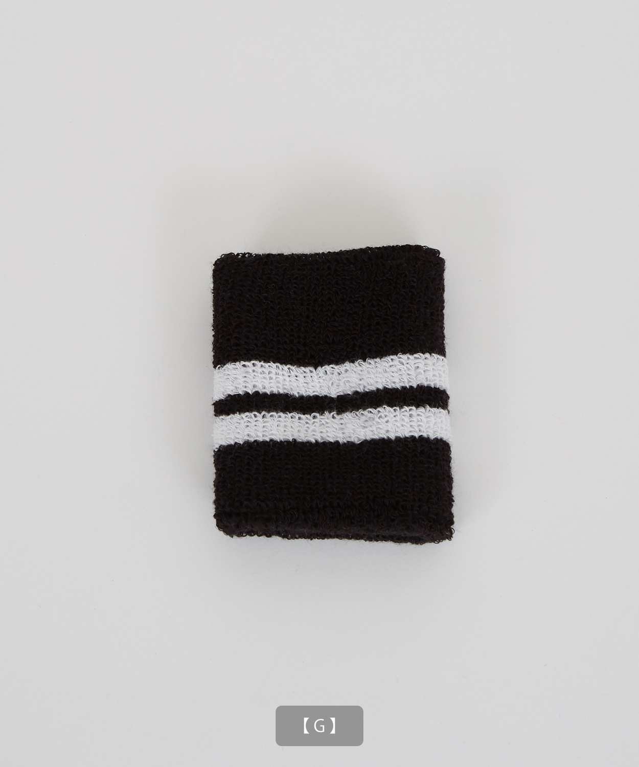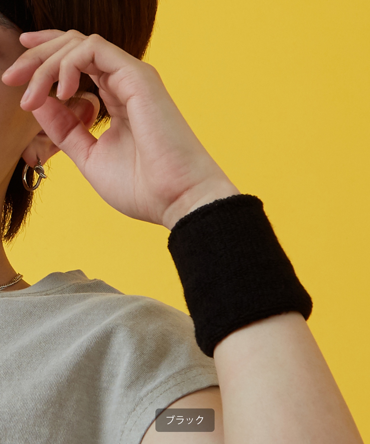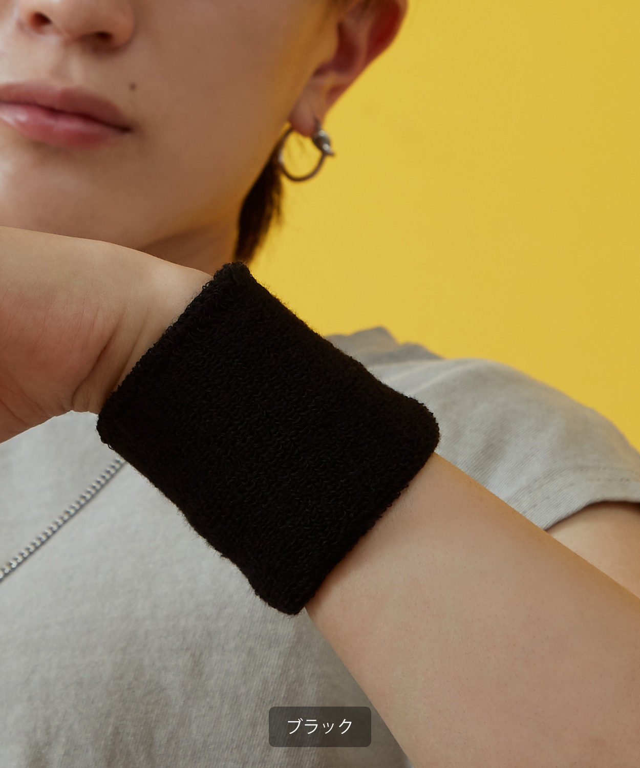 スポーティーな雰囲気とファッション性を兼ね備えた、リストバンド。吸汗性に優れたパイル素材を使用しており、運動時にも快適に着用可能。