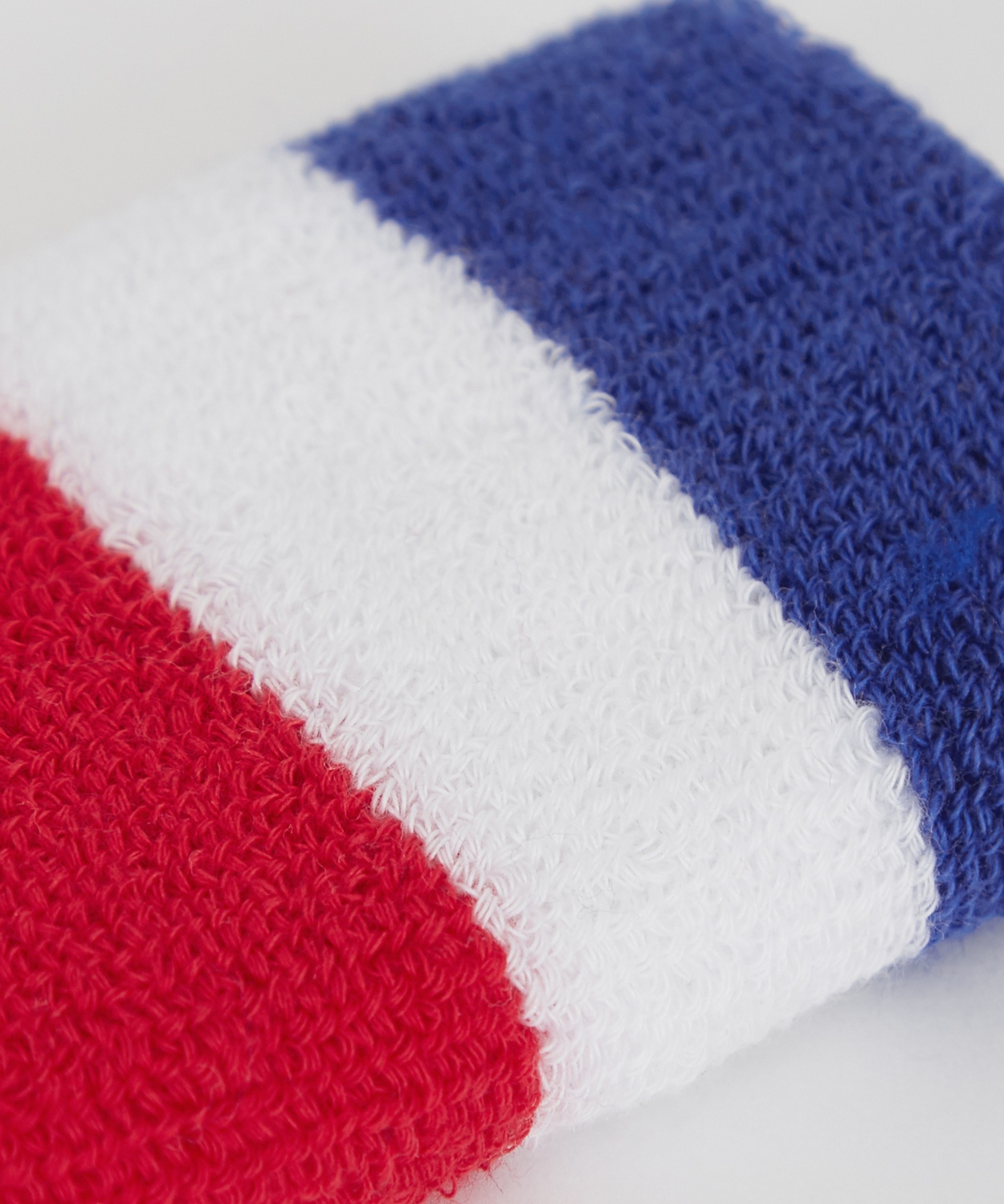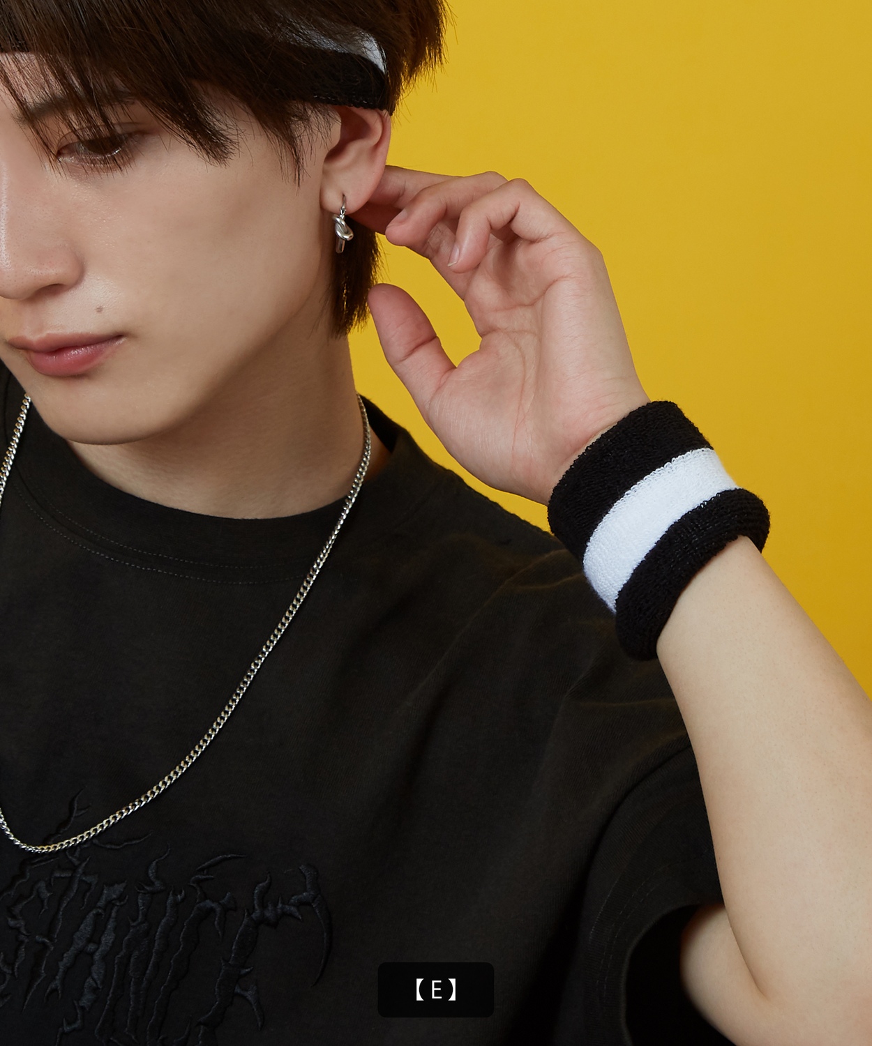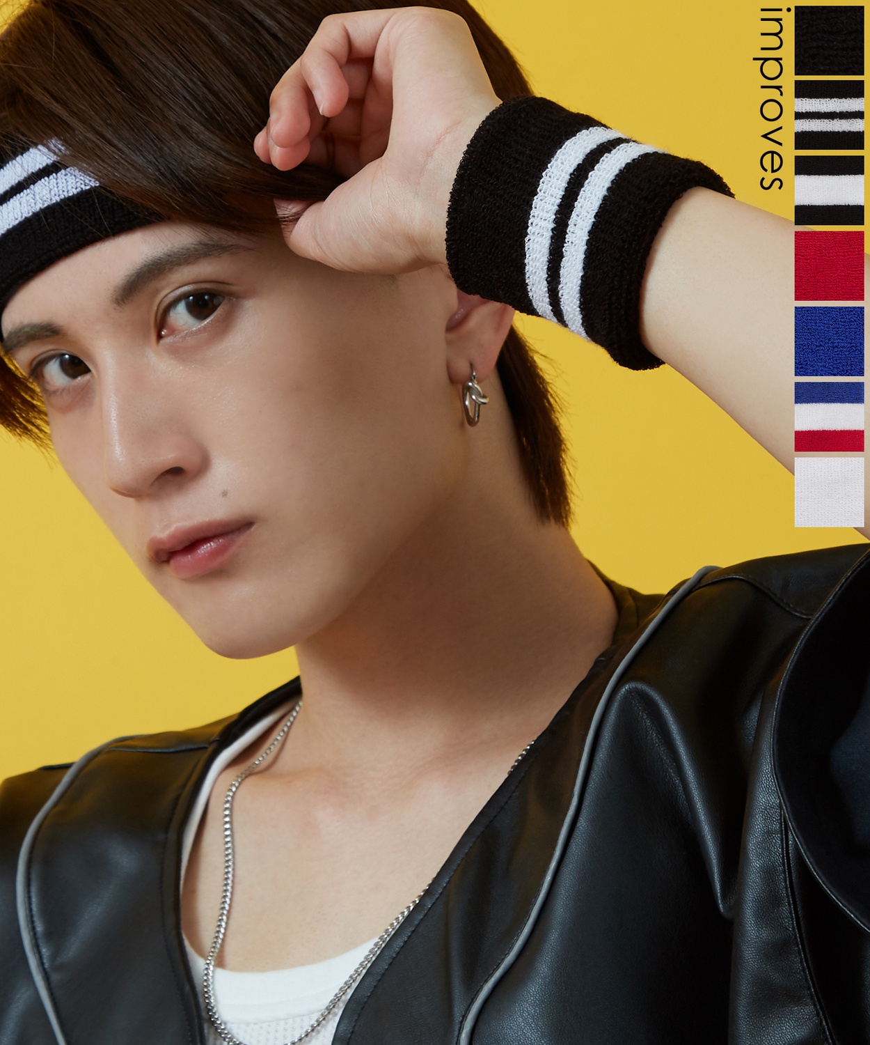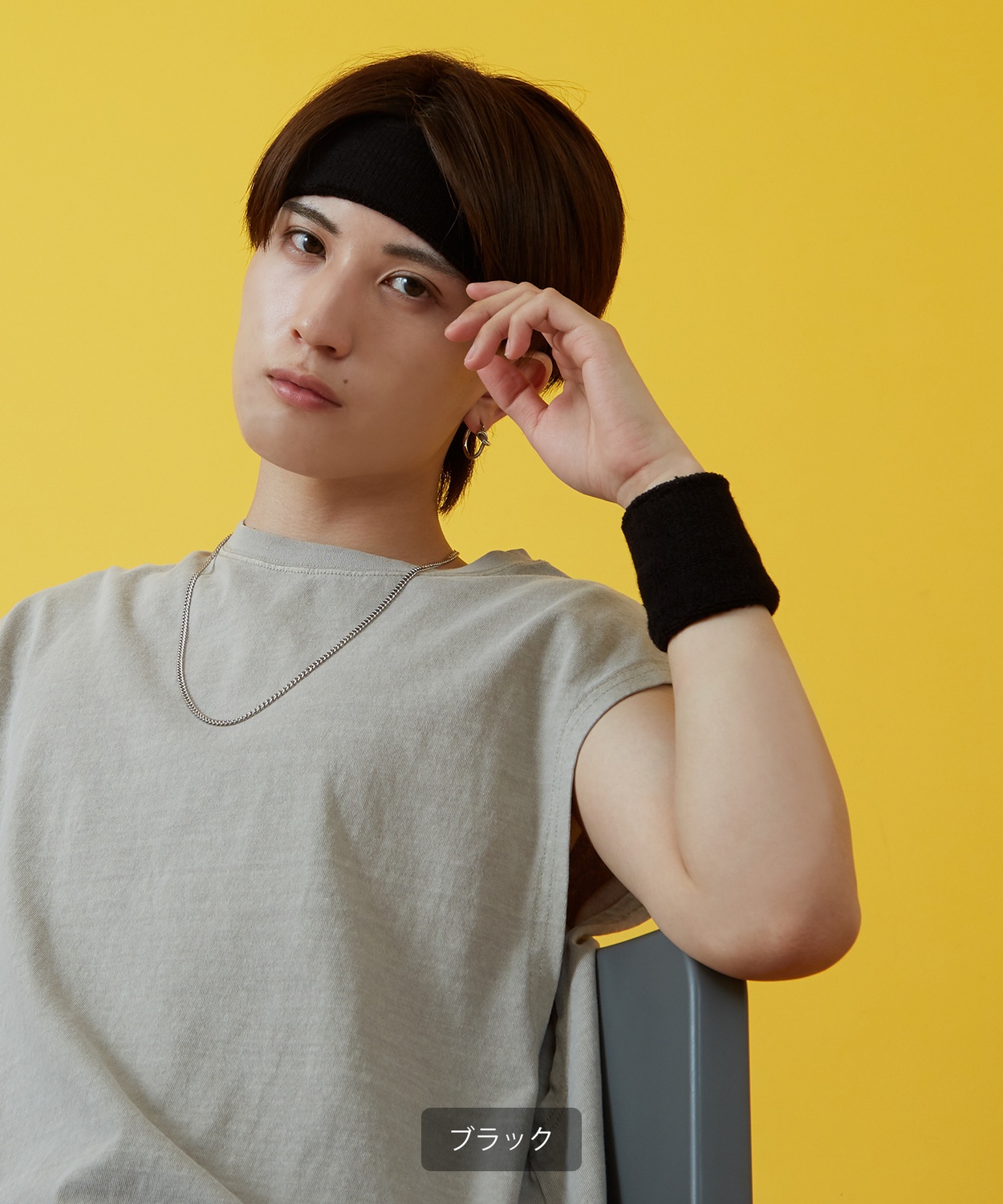 スポーティーな雰囲気とファッション性を兼ね備えた、リストバンド。吸汗性に優れたパイル素材を使用しており、運動時にも快適に着用可能。