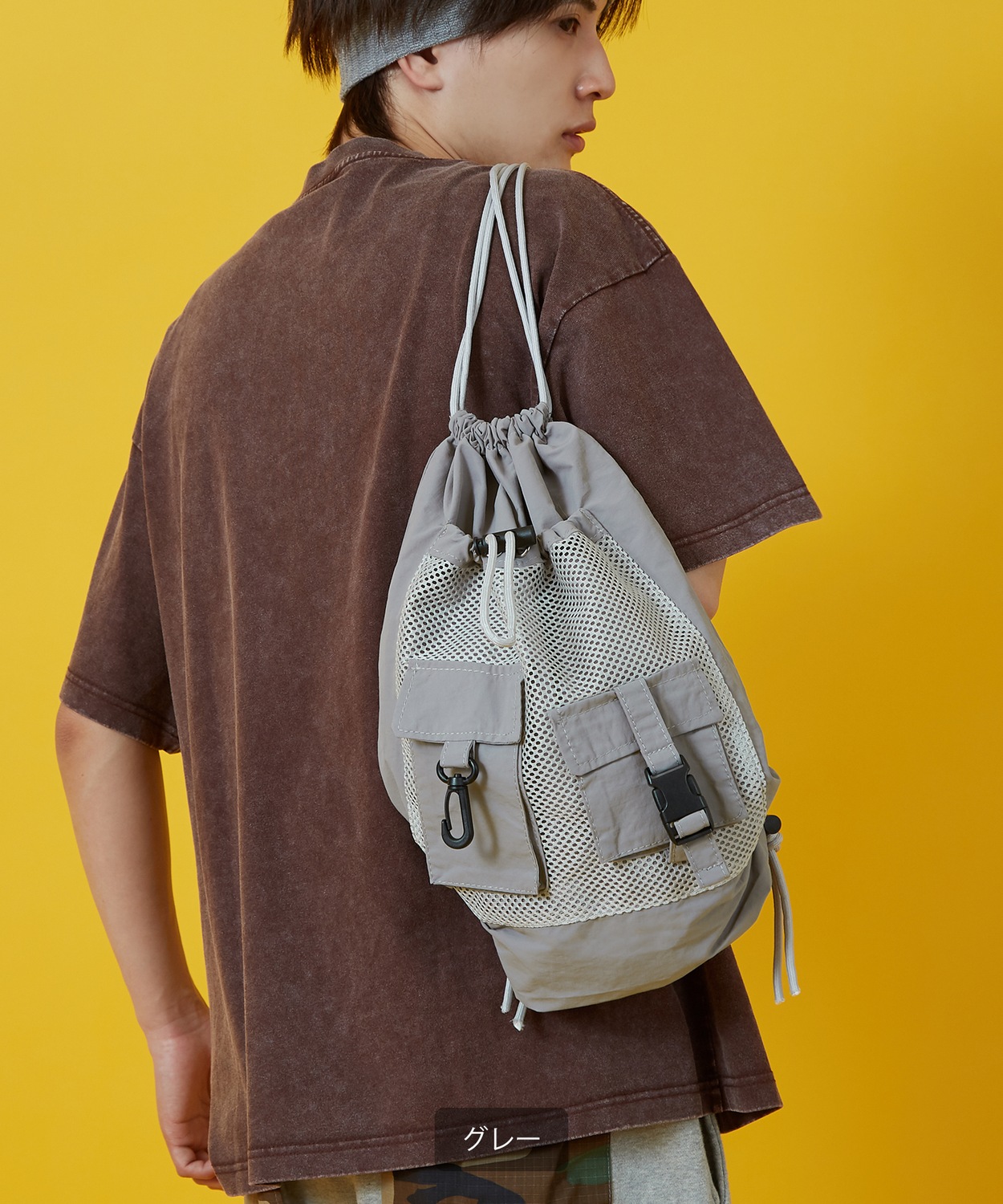 Photograph ![]() ![]() ![]() ![]() ![]() ![]() ![]() ![]() ![]() ![]() ![]() ![]() Item Info 「ポケットで魅せる。」 機能的ナップサックをご紹介。 ●スポーティーライクなデザイン(韓国ファッション) ●カラビナ&バックル付きでミリタリーテイストに ●軽量で持ち運びやすく、デイリー使いにも◎ ●定番のブラックに加え、シックなグレーをご用意 (point) ◆トレンド感と実用性を兼ね備えたナップサック 軽量なポリナイロン素材に、フロントのメッシュと立体ポケットをプラス。 バックルやカラビナ付きのディテールが、ミリタリーライクなアクセントを演出します。 流行の発信地となった韓国セレクトのバッグ。 ユニセックス仕様で、男女問わず使えるのも嬉しいポイント。 デイリー使いはもちろん、アウトドアやフェス、ストリートコーデにも映える1点です。 Item Size