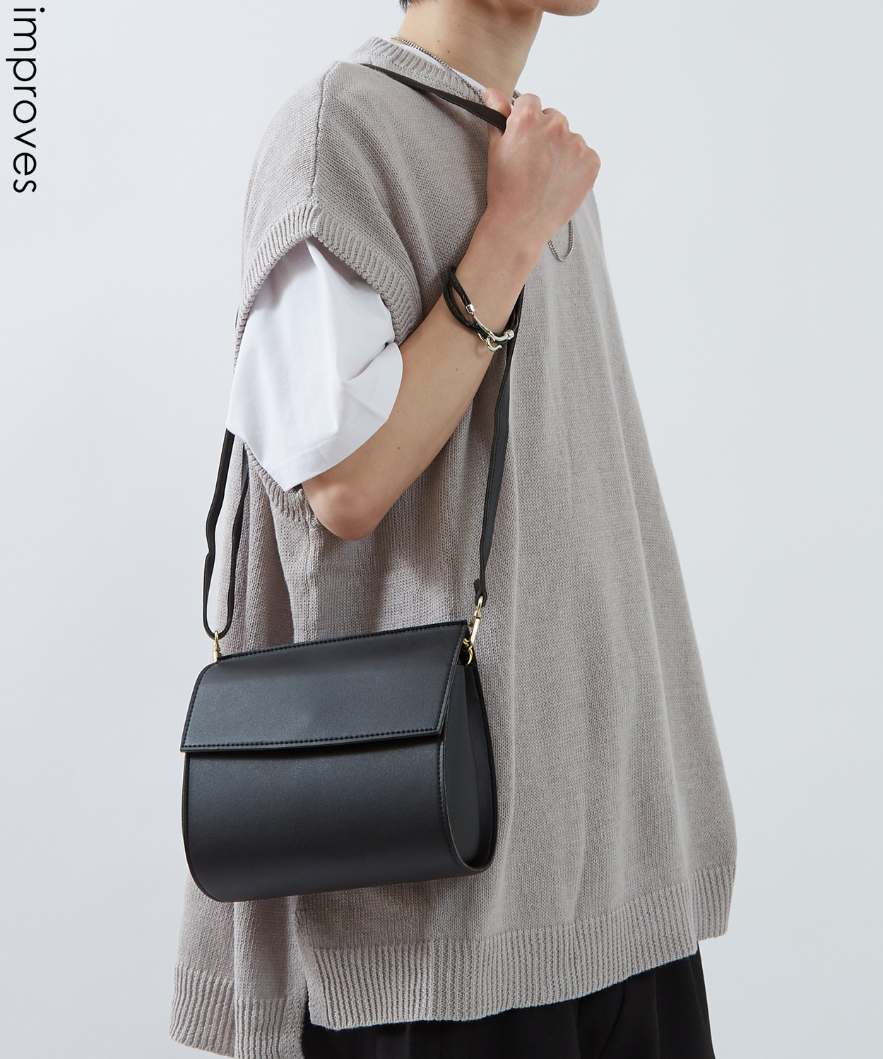 洗練されたフォルムとミニマルなデザインが魅力のショルダーバッグ。