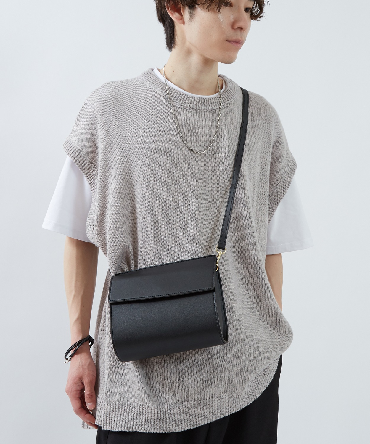 洗練されたフォルムとミニマルなデザインが魅力のショルダーバッグ。●本革のような自然なシボ感を持つ合成皮革●マグネットフラップ式で開閉も簡単●長さ調節可能なショルダーストラップ●男女問わず使えるユニセックスデザイン[point]上質な合成皮革を使用しており、高級感がありながらも軽量で扱いやすいのが特長です。コンパクトながらも長財布やスマホ、小物類がしっかり収納できる実用的なサイズ感。ストラップは長さ調節可能なので、ショルダーとしても斜め掛けとしても使えます。流行の発信地となった韓国セレクトのバッグ。きれいめカジュアル、ノームコアファッション、モード系まで、幅広いスタイルにマッチ。ユニセックスで使えるジェンダーレスなデザインも嬉しいポイントです。