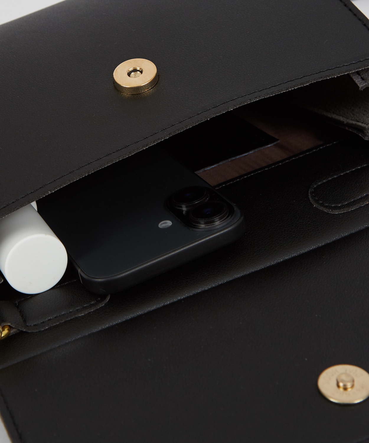 コンパクトながらも長財布やスマホ、小物類がしっかり収納できる実用的なサイズ感。