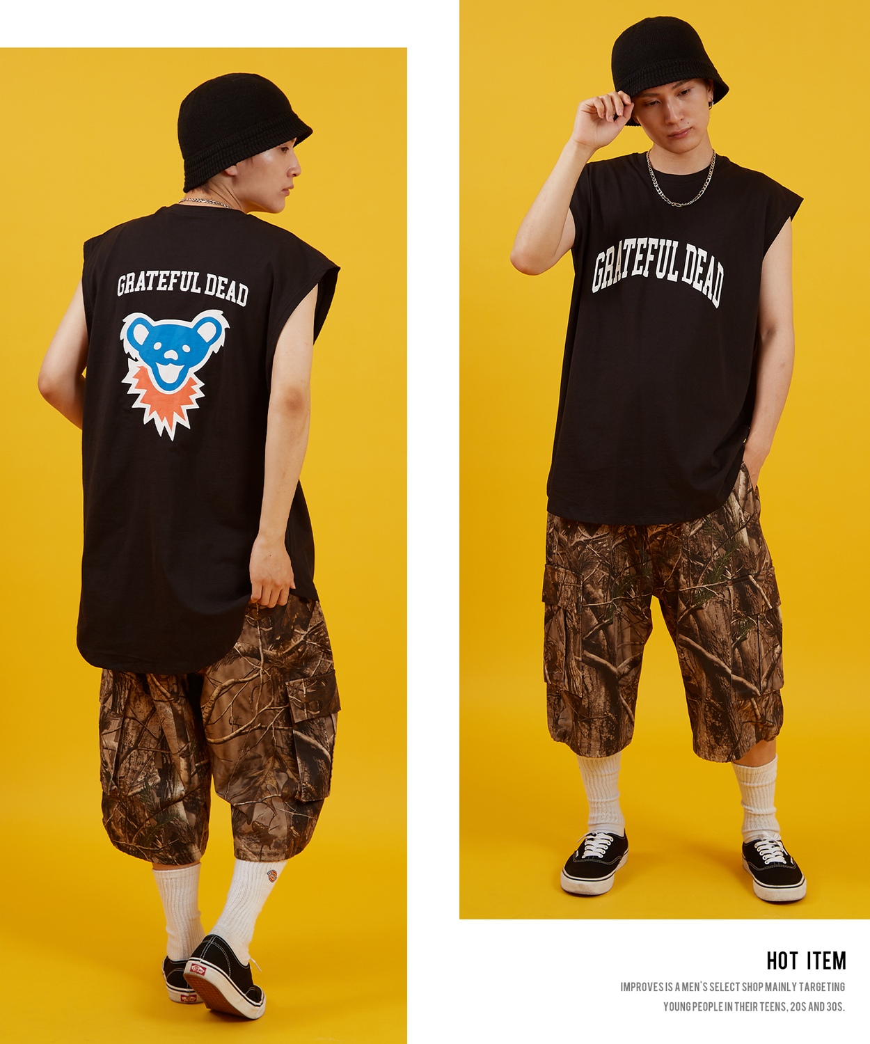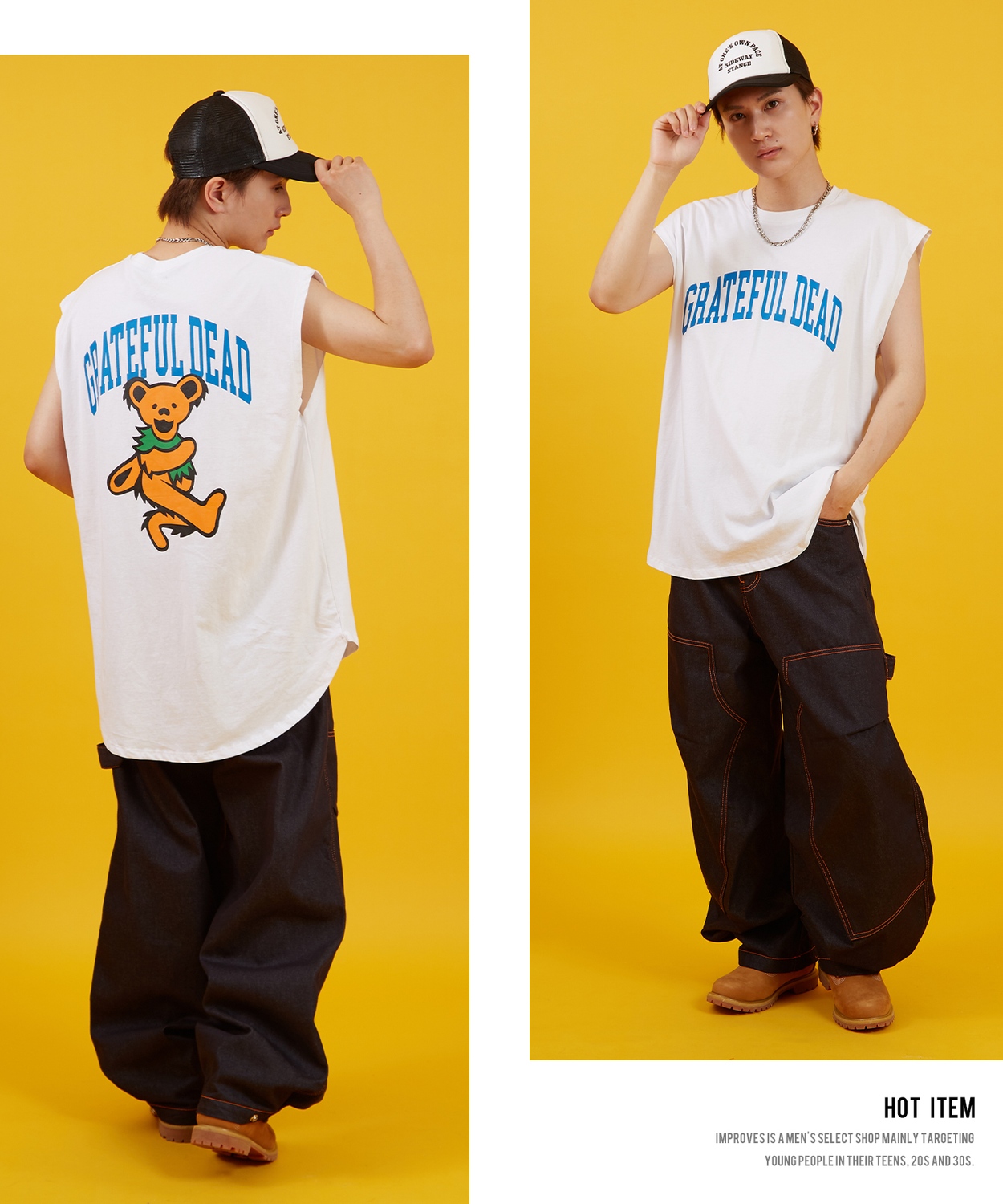 目を引くフロントプリントでコーディネートの主役間違いなし。●コットン100%で心地よい肌触り●オーバーサイズ仕様でリラックスした着心地●ノースリーブで夏コーデに映える抜け感をプラス◎一枚着はもちろんインナーのアクセント付にも使いやすい仕上がりです。カジュアルなスタイリングにお勧めでデニムやカーゴパンツ、スウェットとの相性◎ユニセックスで着用可能、フェスやアウトドアにもおすすめです。Greatful Dead/グレートフルデッド1965年にカリフォルニア州サンフランシスコで結成された、アメリカのロックバンド。グレイトフルデッドの音楽は、ロック、フォーク、ジャズ、ブルーグラス、カントリー、ブルース、サイケデリックロックなど、様々な要素を内包し、本国では熱狂的な支持を集めている。