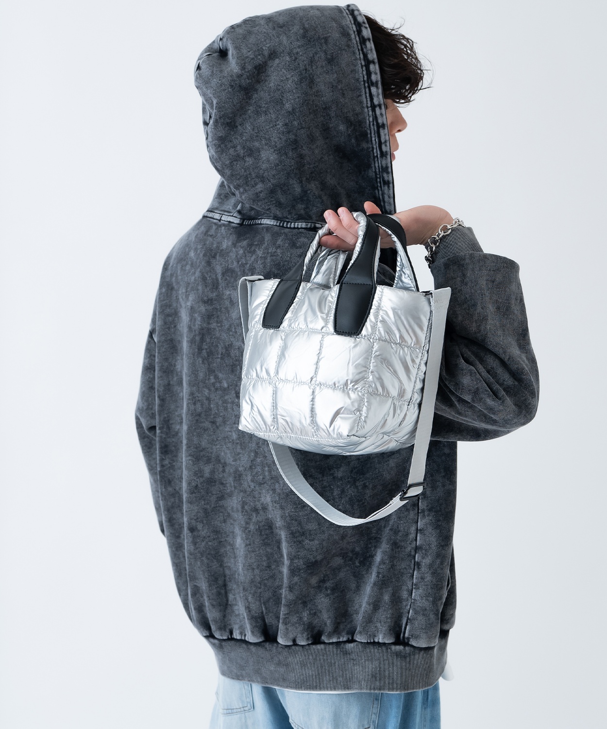 Photograph ![]() ![]() ![]() ![]() ![]() Item Info メタリック キルティング ショルダーバッグ ●ギラつきすぎない上品な光沢感 ●メタリックナイロンでお手入れも簡単、雨の日も安心 ●ミニトートバッグとしても使える2WAY仕様 ●洗練されたメタリックシルバーがコーデのアクセントに トレンドの発信地となった韓国セレクトのアイテム。 ストリートやアメカジと、どんなスタイルのファッションにも取り入れやすく メンズはもちろん、レディースにもオススメです。 Item Size
