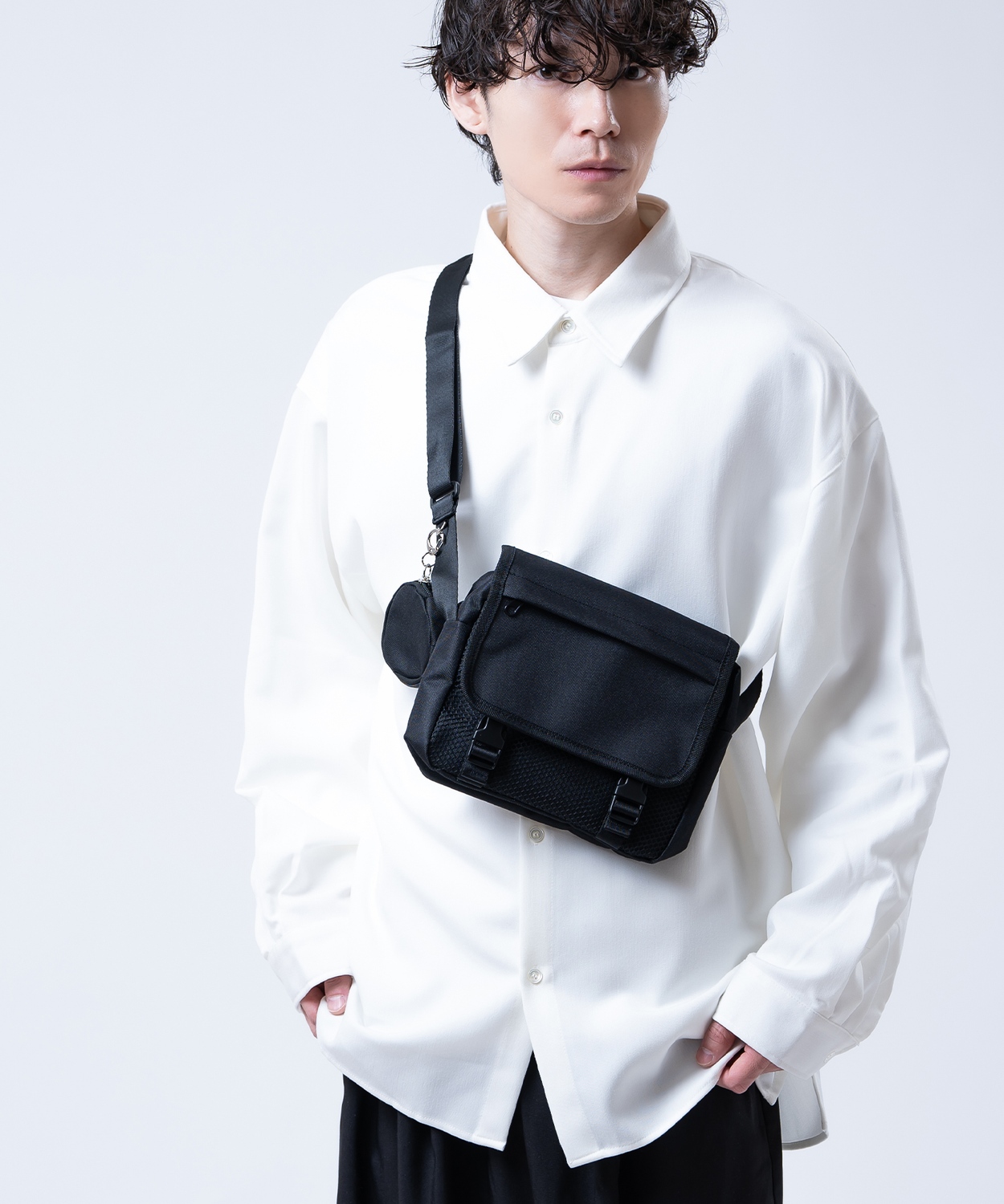 Attention ※ウエストにゴムが入ったパンツのウエスト値は、推奨ウエストのサイズです。伸縮値では御座いませんのでご注意下さい。 ※大量生産による生産過程におきまして、 若干の個体差(1cmから2cm)が生じる場合がございます。 それ以上の差異がある場合は弊社までお問い合わせください。 【サイズの測り方についての詳細はこちら】 ※サイトに掲載されている商品は、モニター環境により実際のものと素材感・色が若干異なって見える場合がございます。 ※加工具合により掲載画像との誤差が見られる場合もございます。 予めご了承くださいますようお願い申し上げます。 image ![]() ![]() ![]() ![]() スタイリングを選ばない、シンプルかつ機能的なショルダーバッグ。 ●使い勝手の良いスクエア型のフォルム ●貴重品の管理に便利なジップ付きポケットを搭載 ●ジェンダーレスで使えるミニマルなデザイン ●スマホや財布がしっかり入る絶妙なサイズ感 無骨なミリタリー要素とクリーンなストリート感を掛け合わせた一品です。 メッシュ素材の透け感が軽やかな印象を与え、オールブラックでも重くなりすぎません。 付属のポーチは小銭やワイヤレスイヤホン収納に便利。 実用性とファッション性を両立した、今季外せないマストアイテムです。 どんなコーデにも馴染む、洗練された黒の存在感!収納力と軽さを兼ね備えた、毎日持ち歩きたくなる相棒バッグ