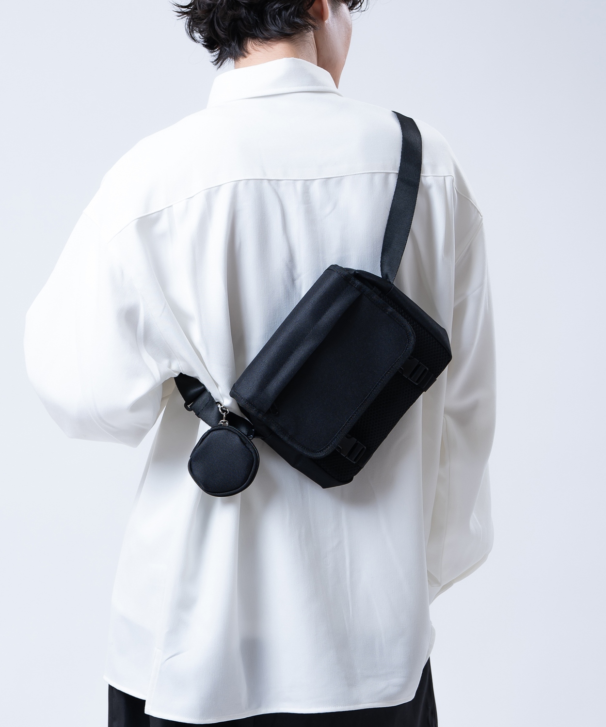 Photograph ![]() ![]() ![]() ![]() ![]() Item Info スタイリングを選ばない、シンプルかつ機能的なショルダーバッグ。 ●使い勝手の良いスクエア型のフォルム ●貴重品の管理に便利なジップ付きポケットを搭載 ●ジェンダーレスで使えるミニマルなデザイン ●スマホや財布がしっかり入る絶妙なサイズ感 無骨なミリタリー要素とクリーンなストリート感を掛け合わせた一品です。 メッシュ素材の透け感が軽やかな印象を与え、オールブラックでも重くなりすぎません。 付属のポーチは小銭やワイヤレスイヤホン収納に便利。 実用性とファッション性を両立した、今季外せないマストアイテムです。 Item Size