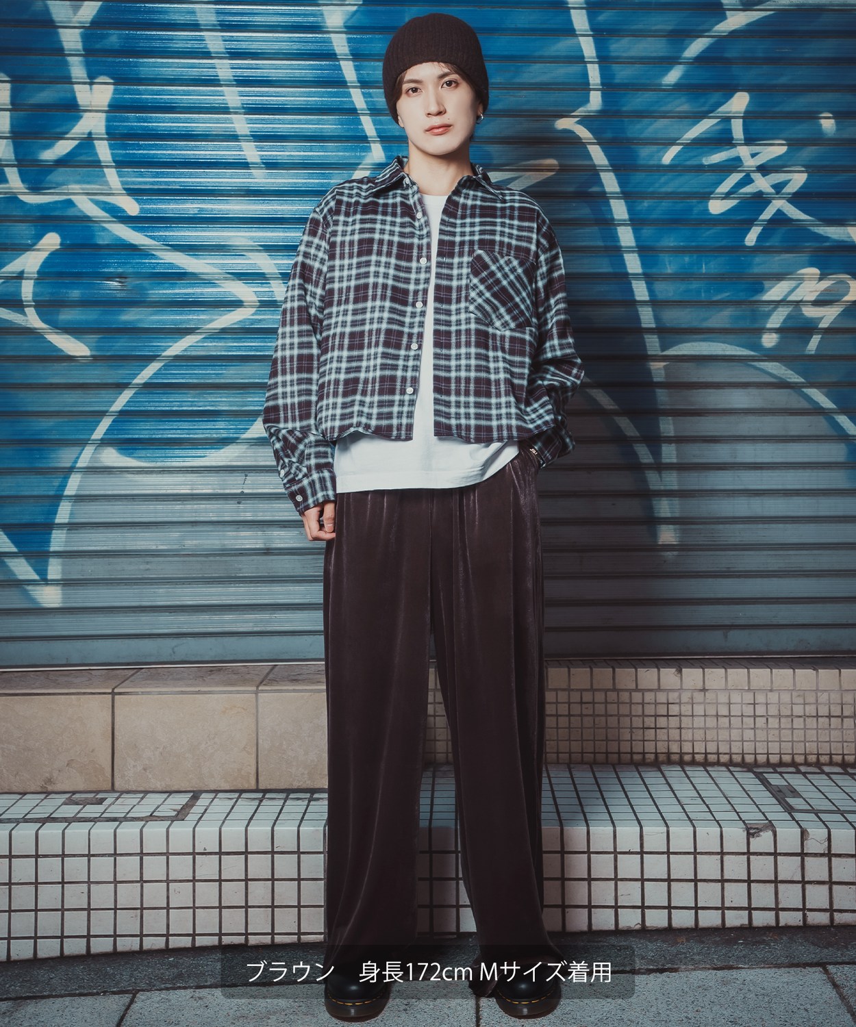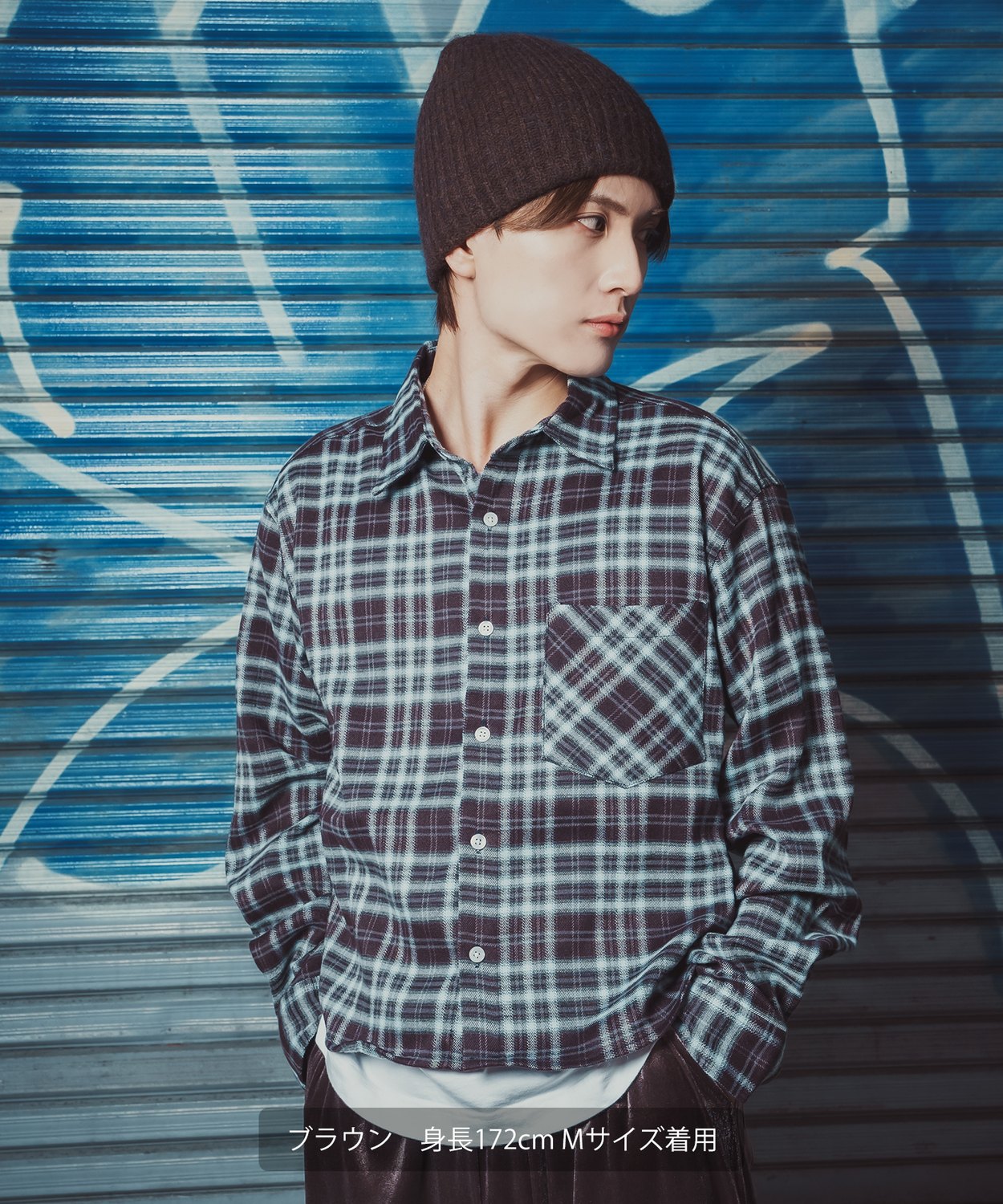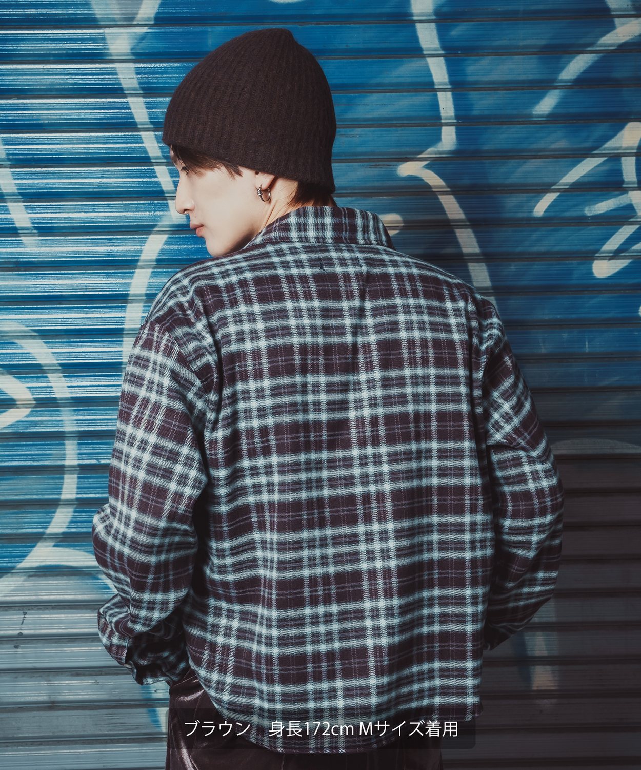 Attention ※ウエストにゴムが入ったパンツのウエスト値は、推奨ウエストのサイズです。伸縮値では御座いませんのでご注意下さい。 ※大量生産による生産過程におきまして、 若干の個体差(1cmから2cm)が生じる場合がございます。 それ以上の差異がある場合は弊社までお問い合わせください。 【サイズの測り方についての詳細はこちら】 ※サイトに掲載されている商品は、モニター環境により実際のものと素材感・色が若干異なって見える場合がございます。 ※加工具合により掲載画像との誤差が見られる場合もございます。 予めご了承くださいますようお願い申し上げます。 image ![]() ![]() ![]() ![]() ![]() ![]() ![]() ![]() ![]() ![]() ![]() ![]() ![]() ![]() ![]() ![]() ![]() ![]() ![]() ![]() 暖かみのある起毛素材が魅力のクロップド丈チェックシャツ。 ●旬のクロップド丈とルーズなシルエットでスタイルアップ ●暖かく柔らかな起毛(フランネル)素材を使用 ●ストリート、Y2K、古着ライク、韓国ファッションなどトレンドスタイルにマッチ ●インナーの白Tシャツとのレイヤードでこなれ感を演出 ヴィンテージライクなチェック柄と、ふっくらとした起毛感が魅力。 短めの着丈とドロップショルダーのビッグシルエットが、いつものコーディネートを今っぽく格上げします。 ボトムスを選ばないデザインで、ストリートからカジュアルまで様々な着こなしを楽しめます。 レトロな配色と起毛素材が雰囲気バツグン!旬のクロップド丈でストリートにも古着MIXにもハマる万能チェックシャツ