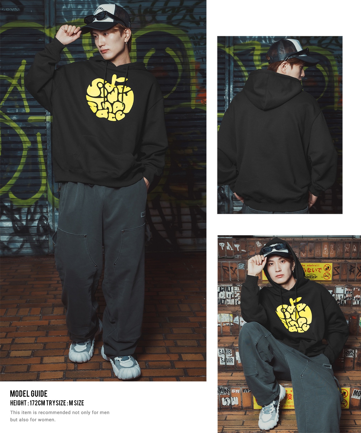 ポップでレトロな文字のデザインでリンゴのモチーフを表現した、ストリート&Y2Kを体現するインパクト抜群の一着です。