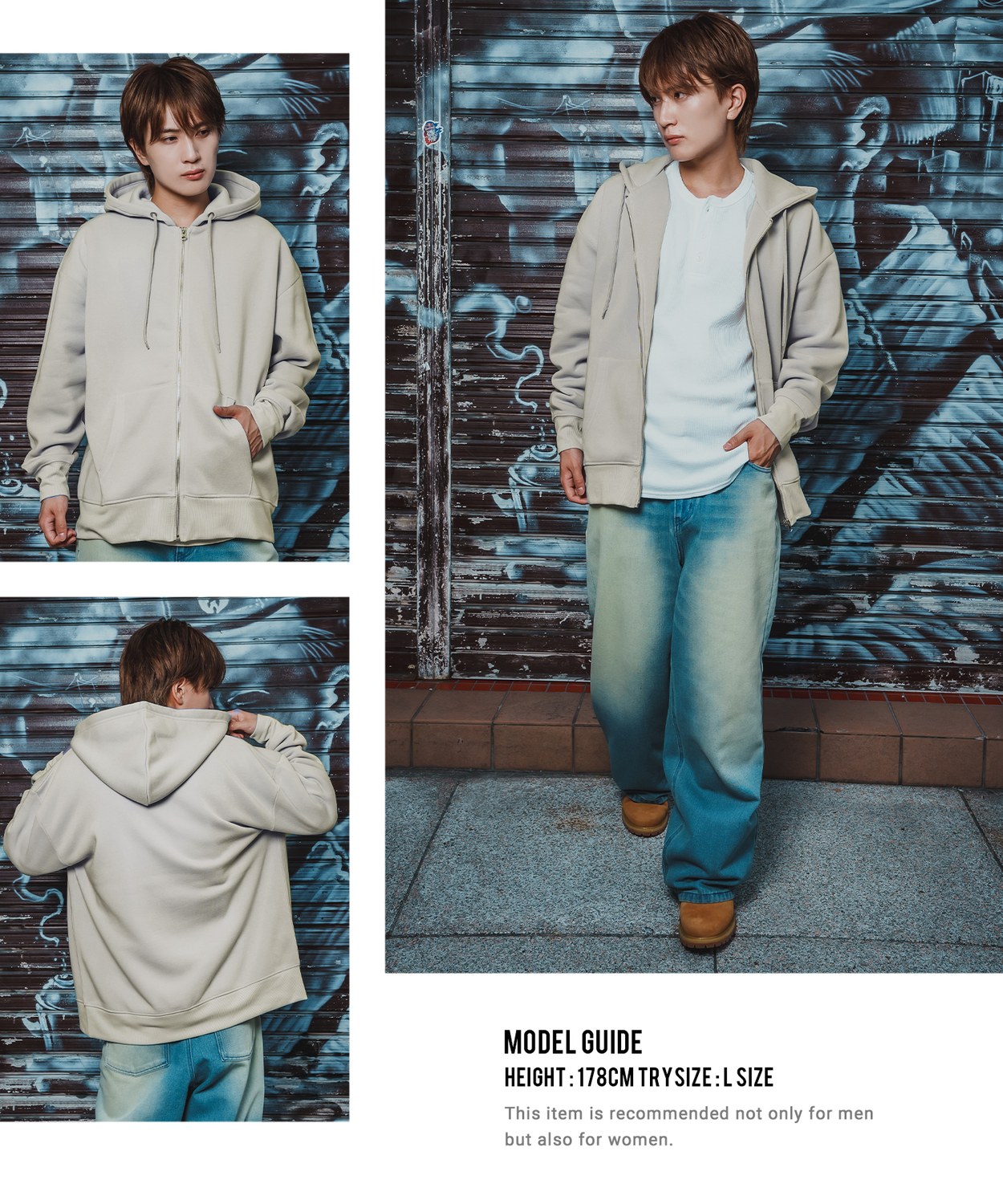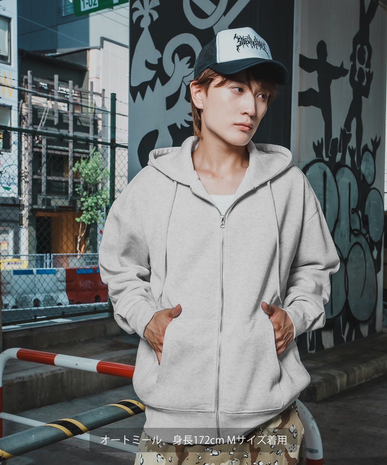 Photograph ![]() ![]() ![]() ![]() ![]() ![]() ![]() ![]() ![]() ![]() ![]() ![]() ![]() ![]() ![]() ![]() ![]() ![]() Item Info ふんわりとした綿のような肌触りが心地よい裏起毛ジップパーカー。 ●コットンのような柔らかな風合いの綿タッチ素材 ●ふっくらとしたボリューム感のある肉厚な裏起毛仕様 ●肩を落としたドロップショルダーのビッグシルエット ●インナーを選ばず着回しやすいフルジップデザイン シンプルながらも計算されたルーズなサイズ感が、今のストリートシーンに映える一着です。 ポリエステル100%の本体は、綿のような質感を楽しみつつ、軽やかで扱いやすい実用性も兼ね備えています。しっかりとした肉厚感があるため、ライトアウターからレイヤードスタイルまで幅広く活躍。 デニムやカーゴパンツと合わせた王道のストリートスタイルはもちろん、きれいめなスラックスの外しアイテムとしても優秀な、着回し力の高いアイテムです。 Item Size