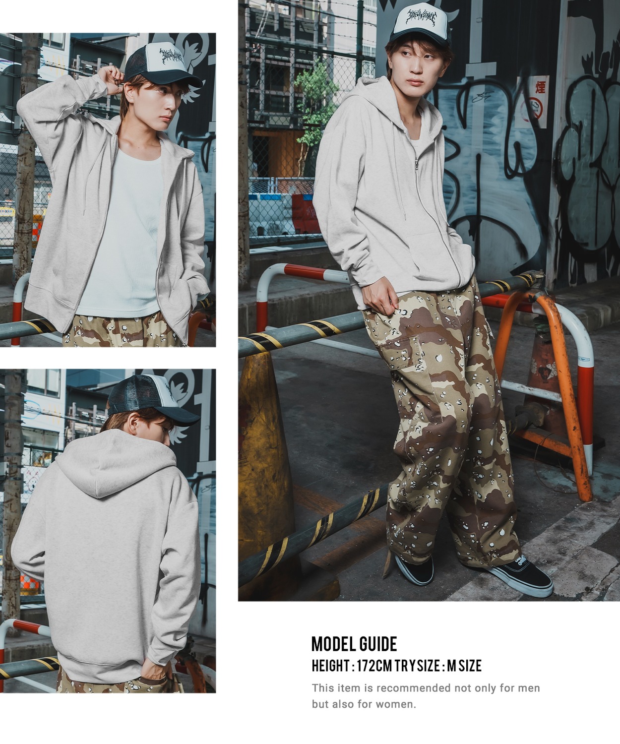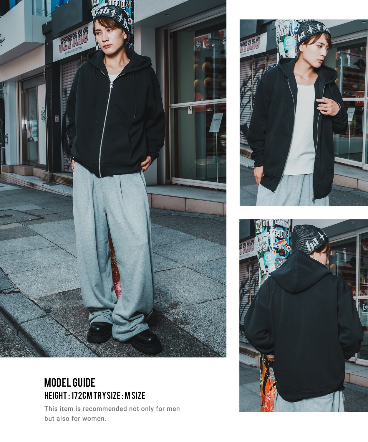 Attention ※ウエストにゴムが入ったパンツのウエスト値は、推奨ウエストのサイズです。伸縮値では御座いませんのでご注意下さい。 ※大量生産による生産過程におきまして、 若干の個体差(1cmから2cm)が生じる場合がございます。 それ以上の差異がある場合は弊社までお問い合わせください。 【サイズの測り方についての詳細はこちら】 ※サイトに掲載されている商品は、モニター環境により実際のものと素材感・色が若干異なって見える場合がございます。 ※加工具合により掲載画像との誤差が見られる場合もございます。 予めご了承くださいますようお願い申し上げます。 image ![]() ![]() ![]() ![]() ![]() ![]() ![]() ![]() ![]() ![]() ![]() ![]() ![]() ![]() ![]() ![]() ![]() ふんわりとした綿のような肌触りが心地よい裏起毛ジップパーカー。 ●コットンのような柔らかな風合いの綿タッチ素材 ●ふっくらとしたボリューム感のある肉厚な裏起毛仕様 ●肩を落としたドロップショルダーのビッグシルエット ●インナーを選ばず着回しやすいフルジップデザイン シンプルながらも計算されたルーズなサイズ感が、今のストリートシーンに映える一着です。 ポリエステル100%の本体は、綿のような質感を楽しみつつ、軽やかで扱いやすい実用性も兼ね備えています。しっかりとした肉厚感があるため、ライトアウターからレイヤードスタイルまで幅広く活躍。 デニムやカーゴパンツと合わせた王道のストリートスタイルはもちろん、きれいめなスラックスの外しアイテムとしても優秀な、着回し力の高いアイテムです。 ふんわり綿タッチの肉厚裏起毛!旬のシルエットで主役級の一着!
