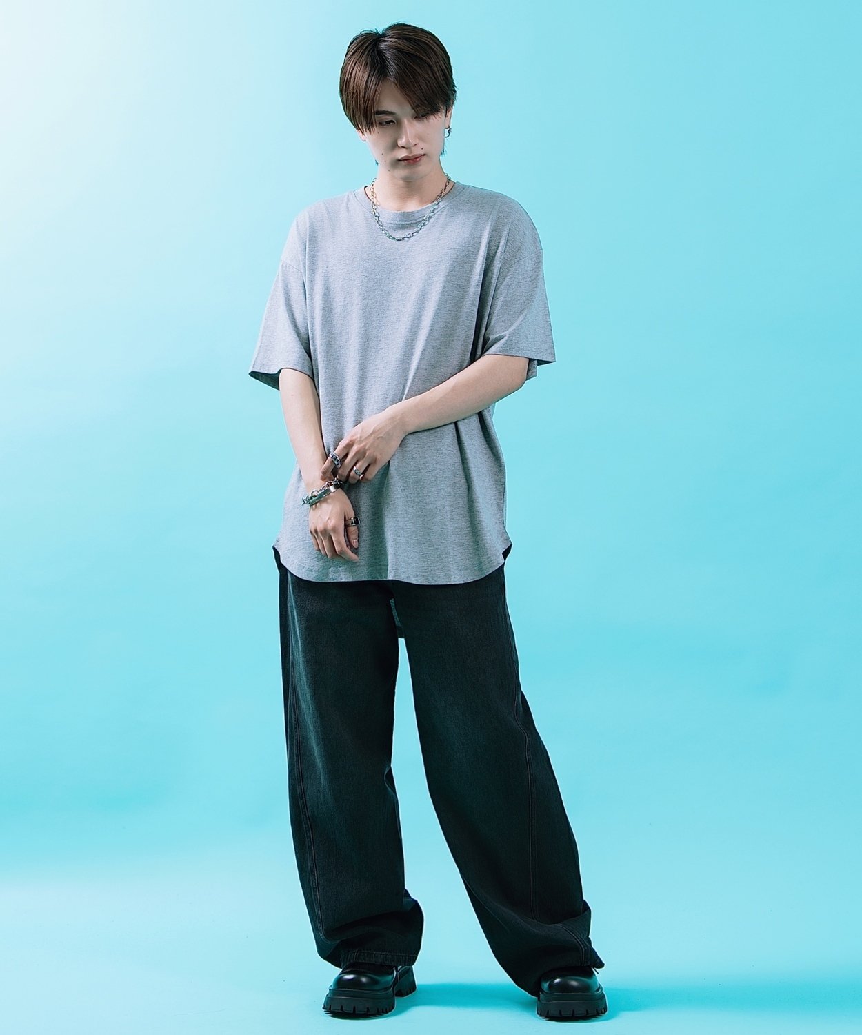Photograph ![]() ![]() ![]() ![]() ![]() ![]() ![]() ![]() ![]() ![]() ![]() ![]() ![]() ![]() ![]() Item Info シルエットで差をつける、大人のストリートスタイル。 ●体型カバーも叶う計算されたオーバーサイズ ●バックスタイルが映えるロング丈の裾デザイン ●首元がよれにくいタフなリブ仕様 ●幅広いスタイルに馴染むベーシックなカラー展開 ●ストリート、韓国ファッション、古着MIXに最適 最大の特徴であるイレギュラーヘムが、動くたびにニュアンスのある表情を演出します。お尻が隠れる長めの着丈は、細身のパンツと合わせてメリハリをつけたり、ワイドパンツと合わせてルーズに着こなしたりと自由自在。シンプルだからこそ、素材の質感やシルエットの美しさが際立つ一着です。男女問わず着用できるサイズ感なので、ペアコーデやシェア服としてもおすすめです。 Item Size