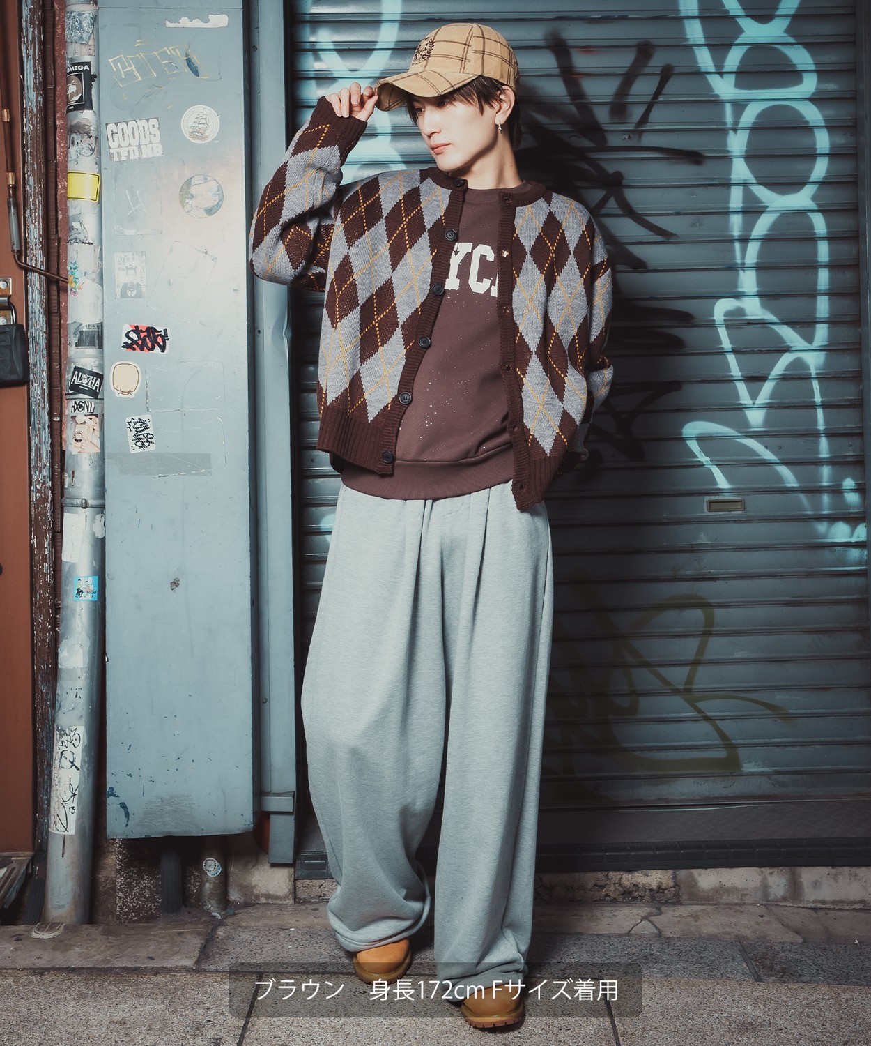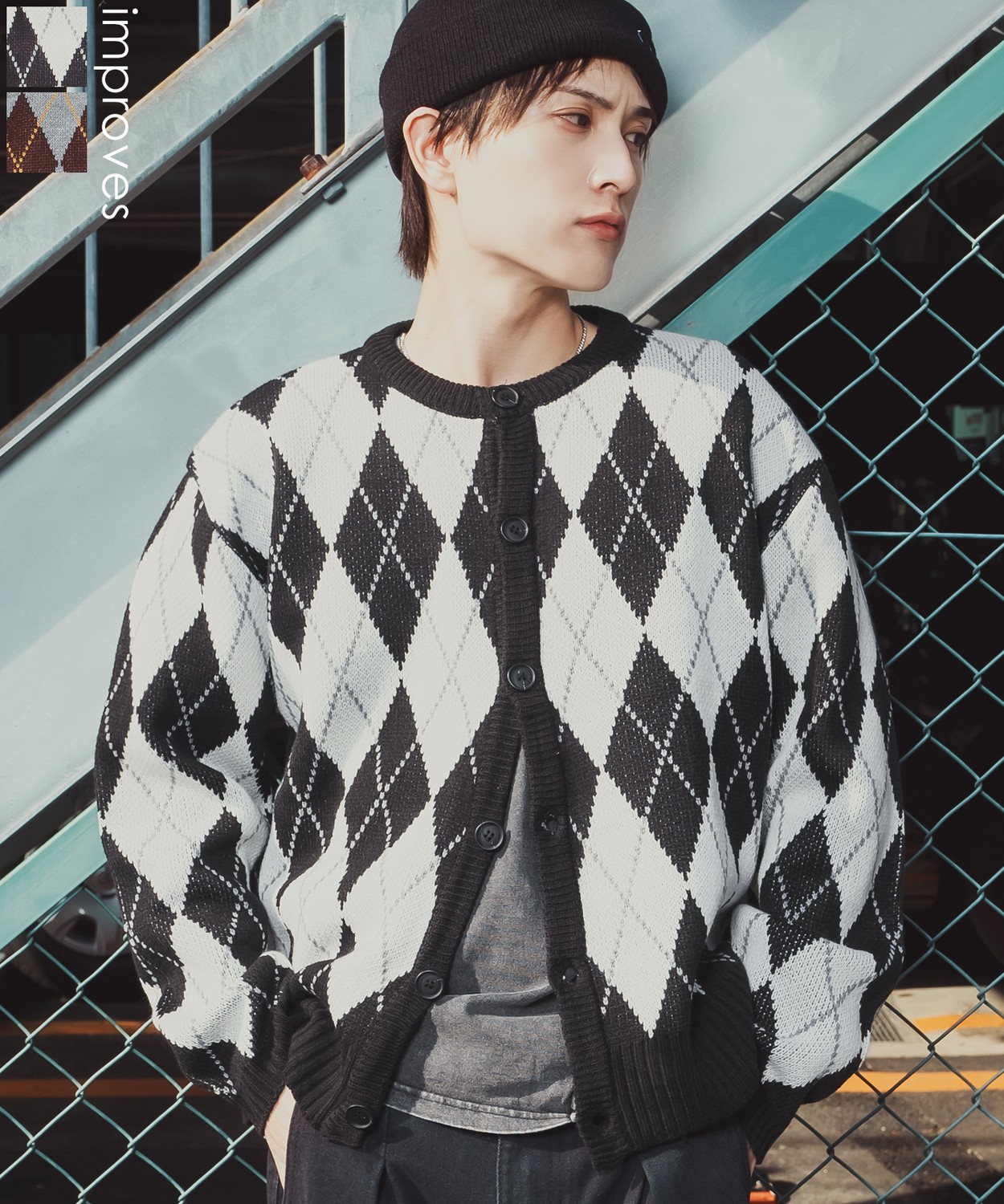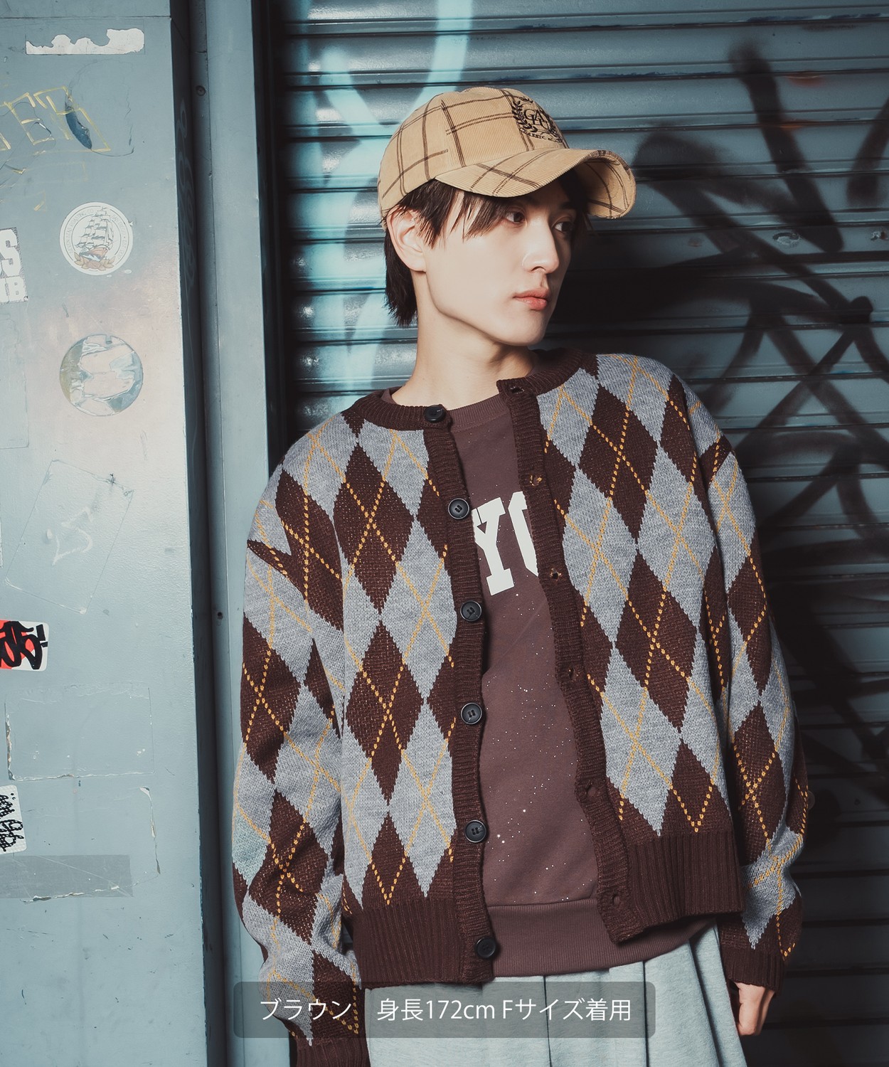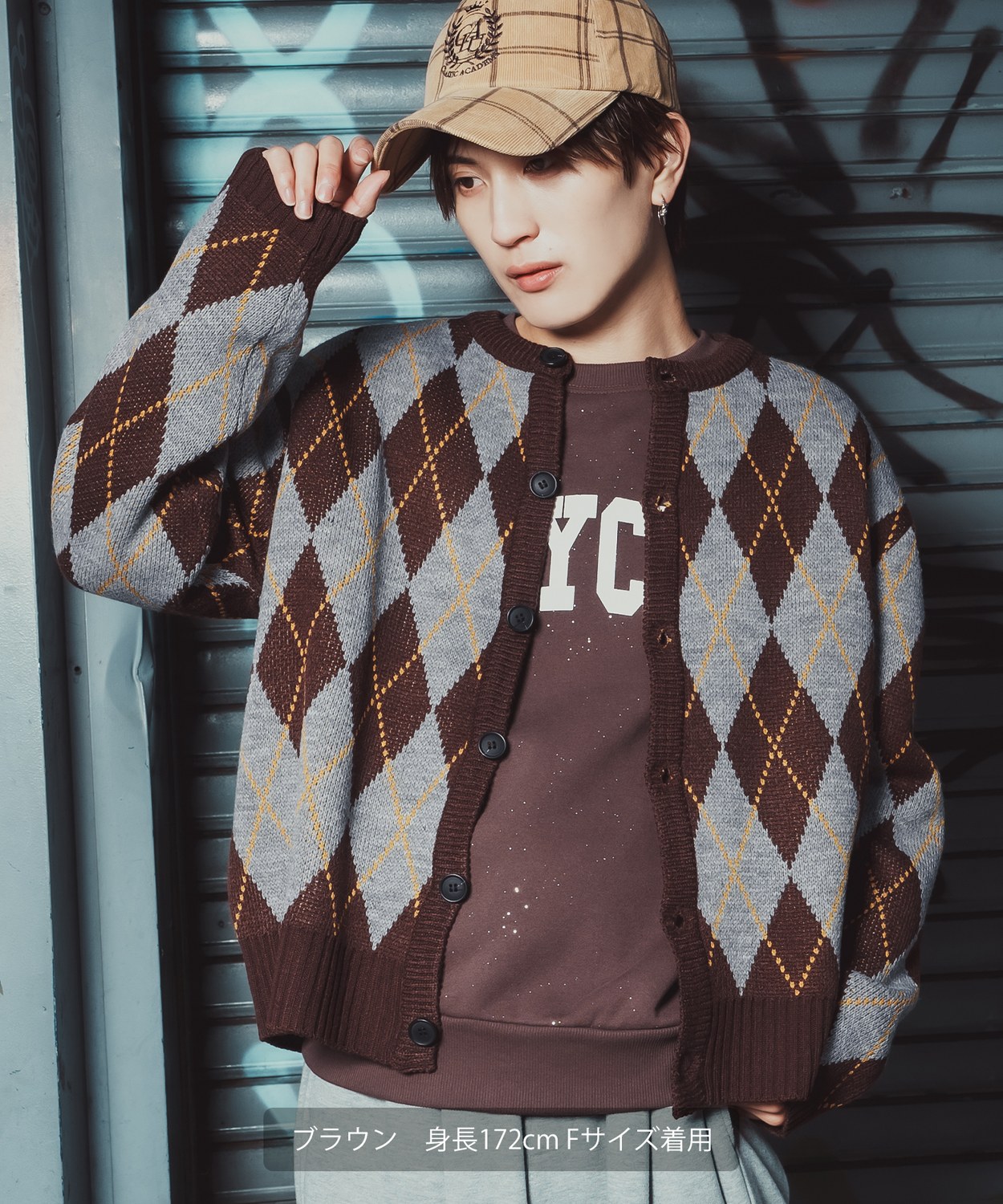 存在感抜群のビッグアーガイルで差をつける!旬のルーズシルエットとクラシックな総柄をミックスした主役級カーデ!