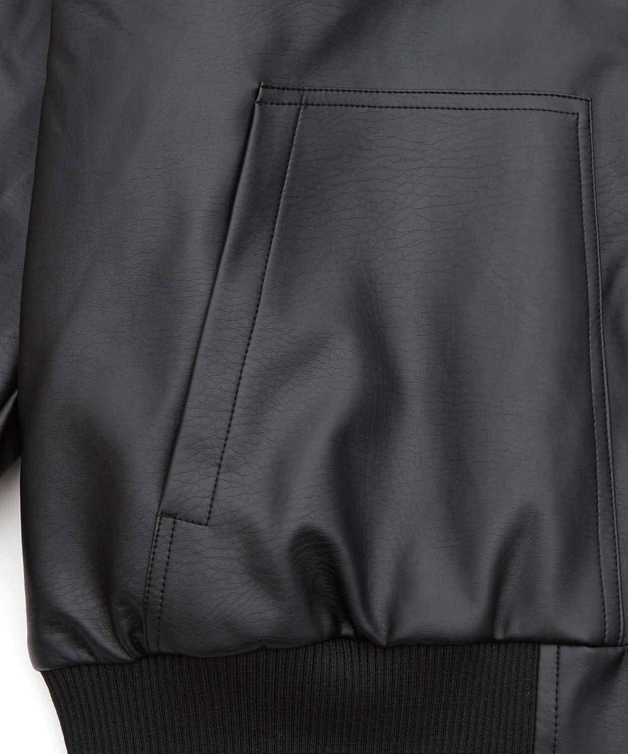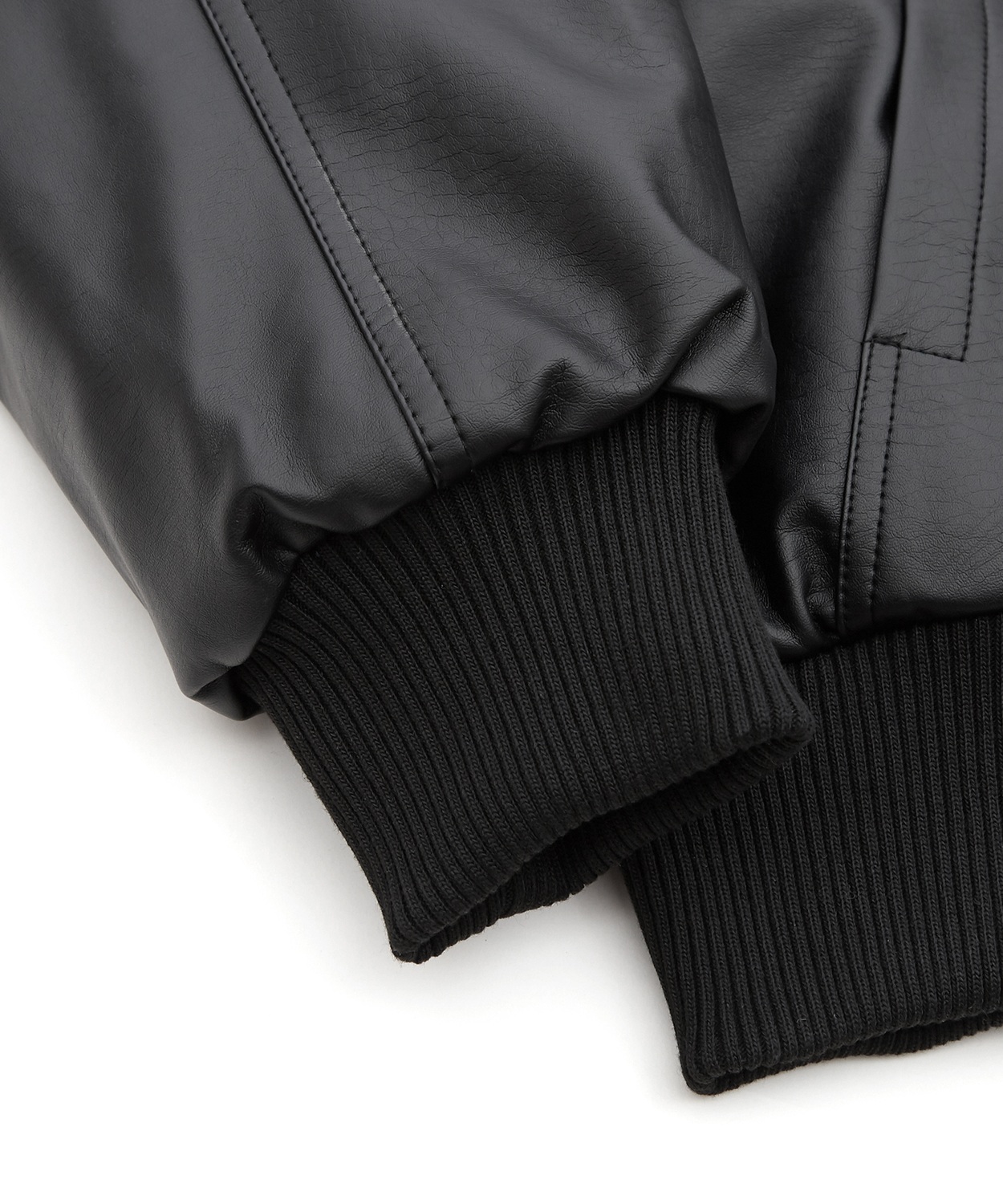 素材[表地]合成皮革(ポリウレタンコーティング)[裏地・中綿]ポリエステル100%[リブ部分]ポリエステル99% ポリウレタン1%