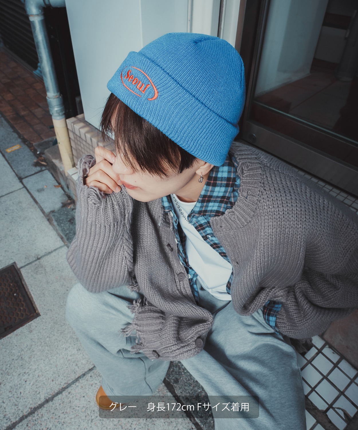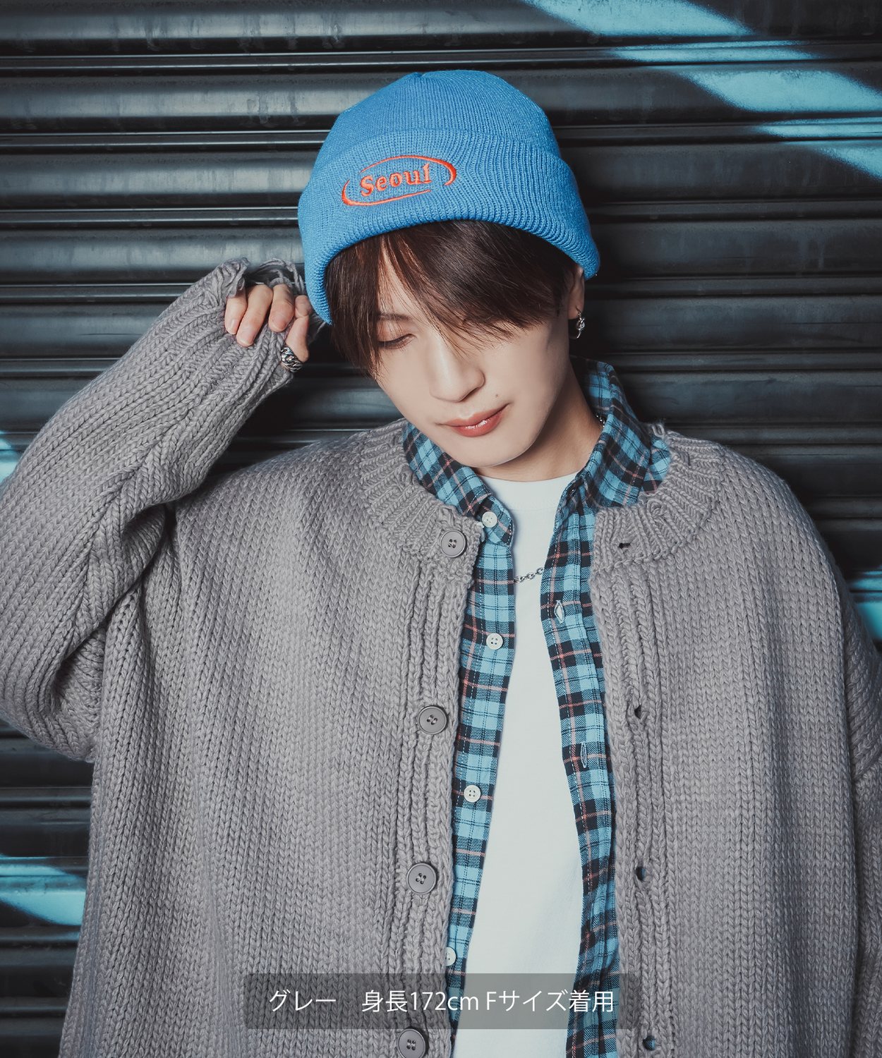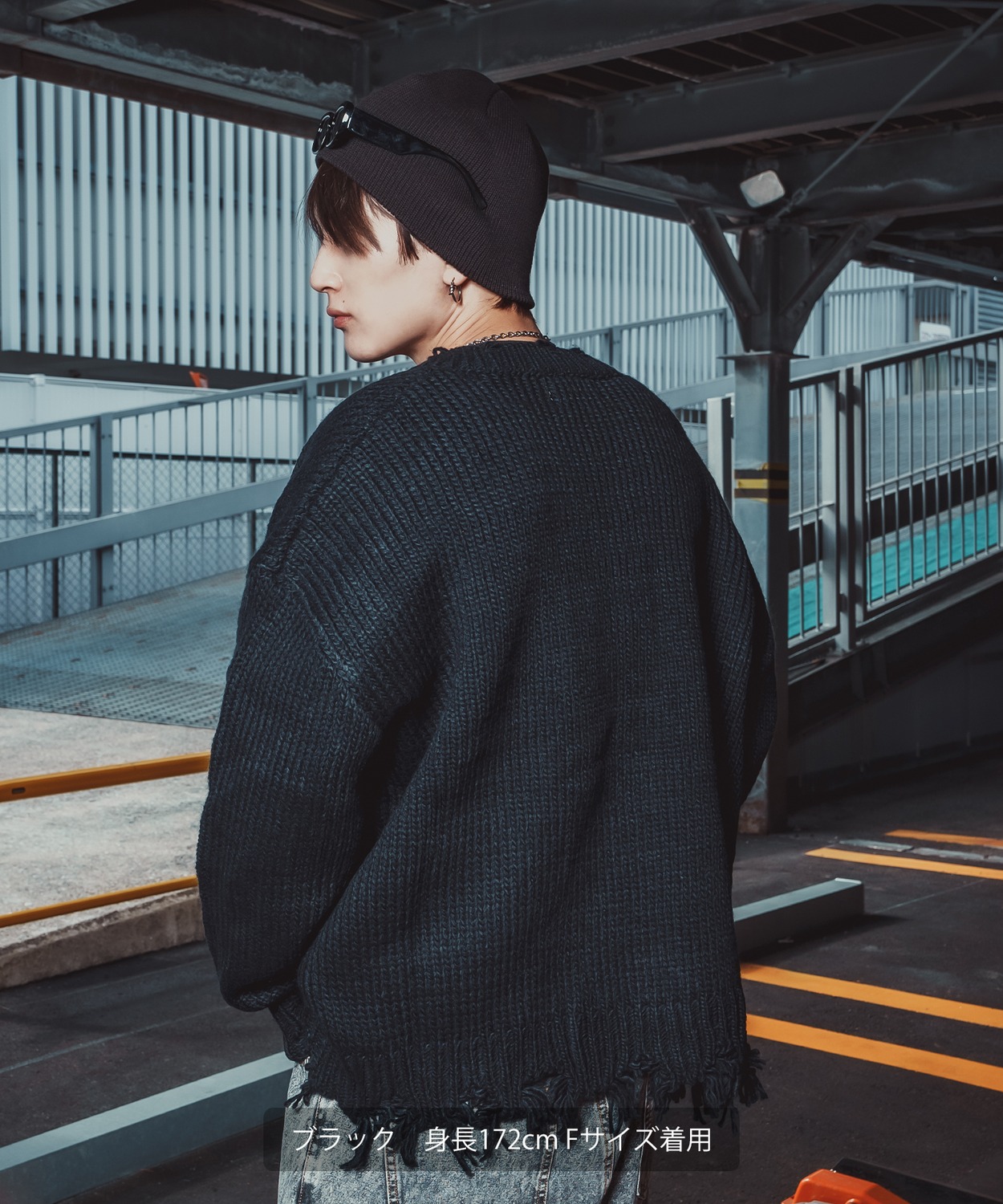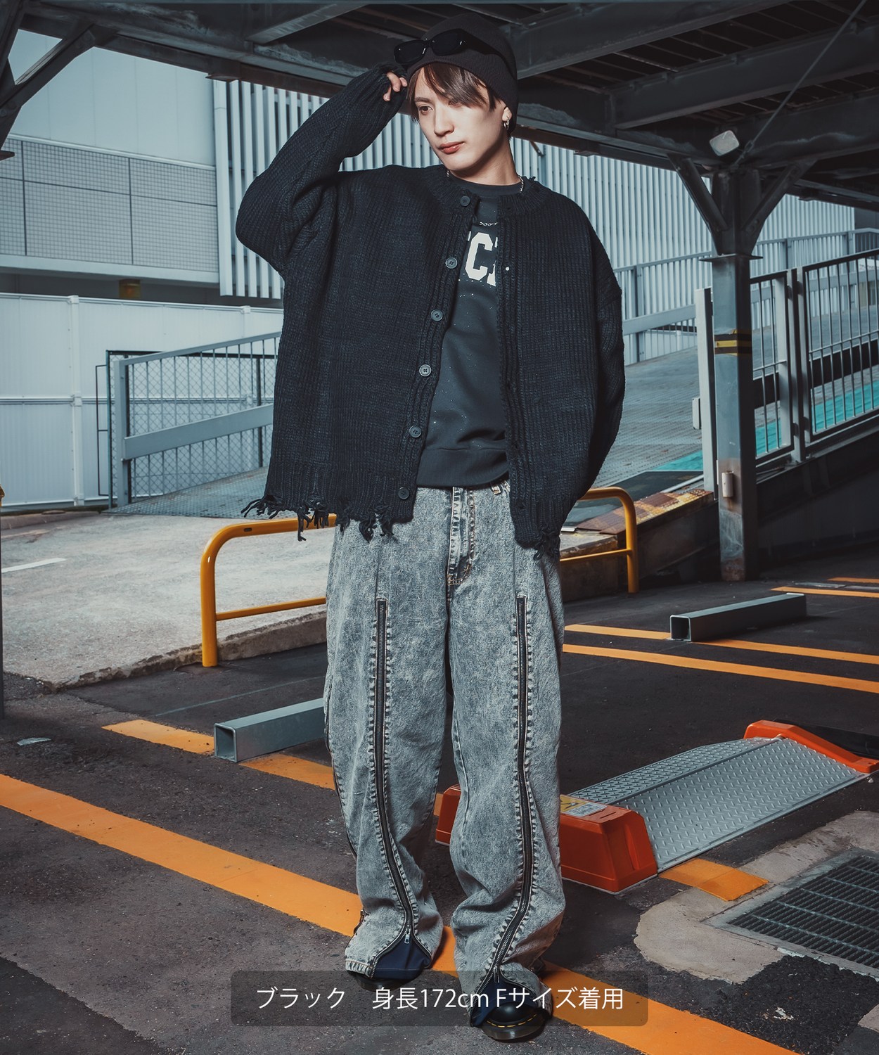 Attention ※ウエストにゴムが入ったパンツのウエスト値は、推奨ウエストのサイズです。伸縮値では御座いませんのでご注意下さい。 ※大量生産による生産過程におきまして、 若干の個体差(1cmから2cm)が生じる場合がございます。 それ以上の差異がある場合は弊社までお問い合わせください。 【サイズの測り方についての詳細はこちら】 ※サイトに掲載されている商品は、モニター環境により実際のものと素材感・色が若干異なって見える場合がございます。 ※加工具合により掲載画像との誤差が見られる場合もございます。 予めご了承くださいますようお願い申し上げます。 image ![]() ![]() ![]() ![]() ![]() ![]() ![]() ![]() ![]() ![]() ![]() ![]() ![]() ![]() ![]() ![]() ![]() ![]() ![]() ![]() 素材・ディテールにこだわったグランジテイストのダメージカーディガン。 ●ざっくりとした太畝の編み地と、袖口・裾に施されたダメージ加工が特徴 ●あえてほつれやフリンジを残したデザインが、退廃的でグランジなムードを演出 ●アクリル100%で、チクチクしにくく肌触りの良い着心地 ●ブラックとグレーのベーシックなカラー展開で、どんなアイテムにも合わせやすいのが魅力 ゆったりとしたオーバーサイズ・ビッグシルエットで、ルーズな今どきスタイルが完成! フロントボタンは同色系で統一し、全体の雰囲気を邪魔しないミニマルなデザインです。 黒を選び、スキニーパンツやブーツと合わせると、よりグランジな雰囲気に。グレーは軽さを出してカジュアルダウンできます。羽織りとしてはもちろん、ボタンを閉めてニットとして着るのもおすすめです。 ほつれとダメージがストリートな雰囲気!退廃的なグランジムードを醸し出すルーズなビッグカーディガン