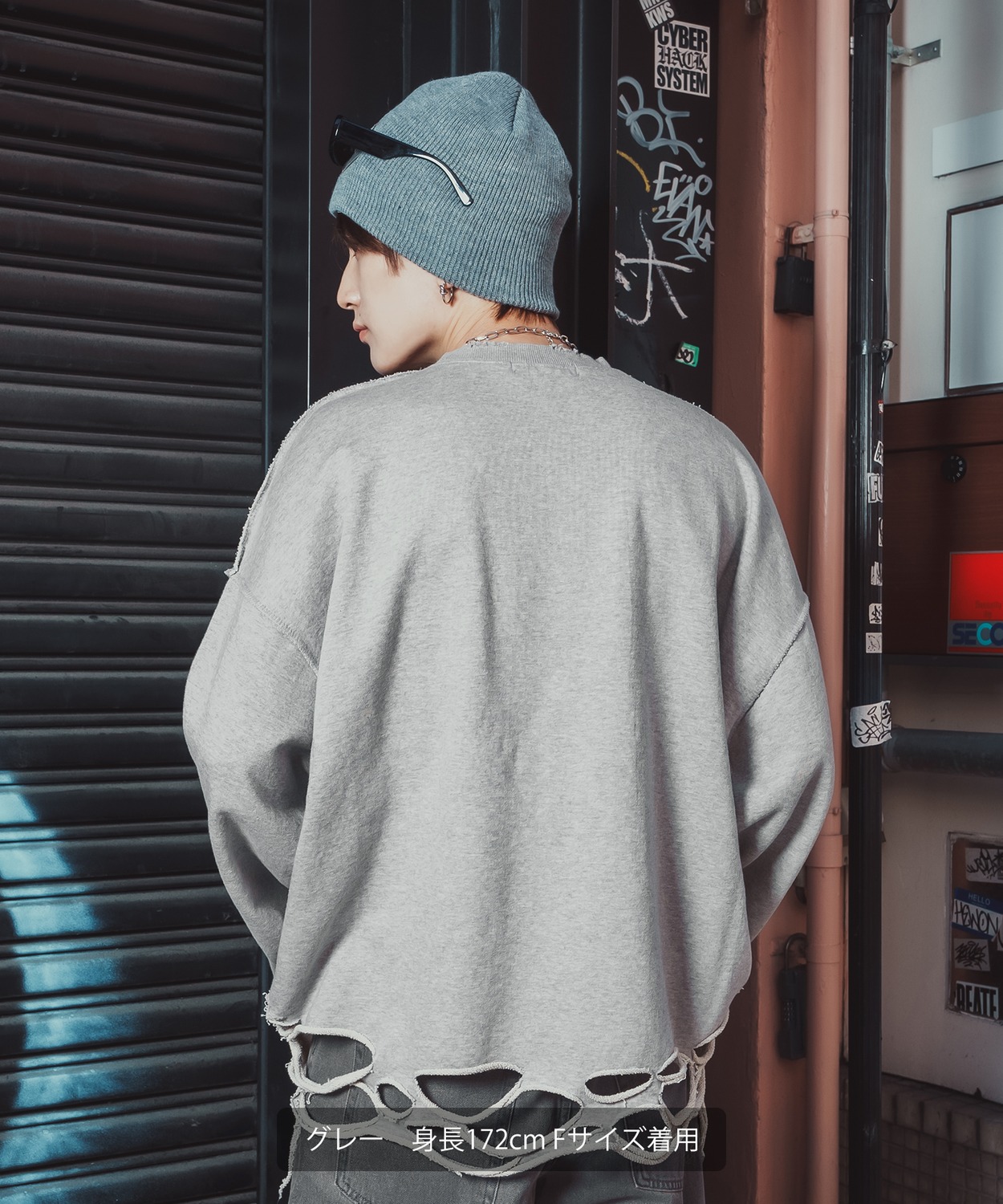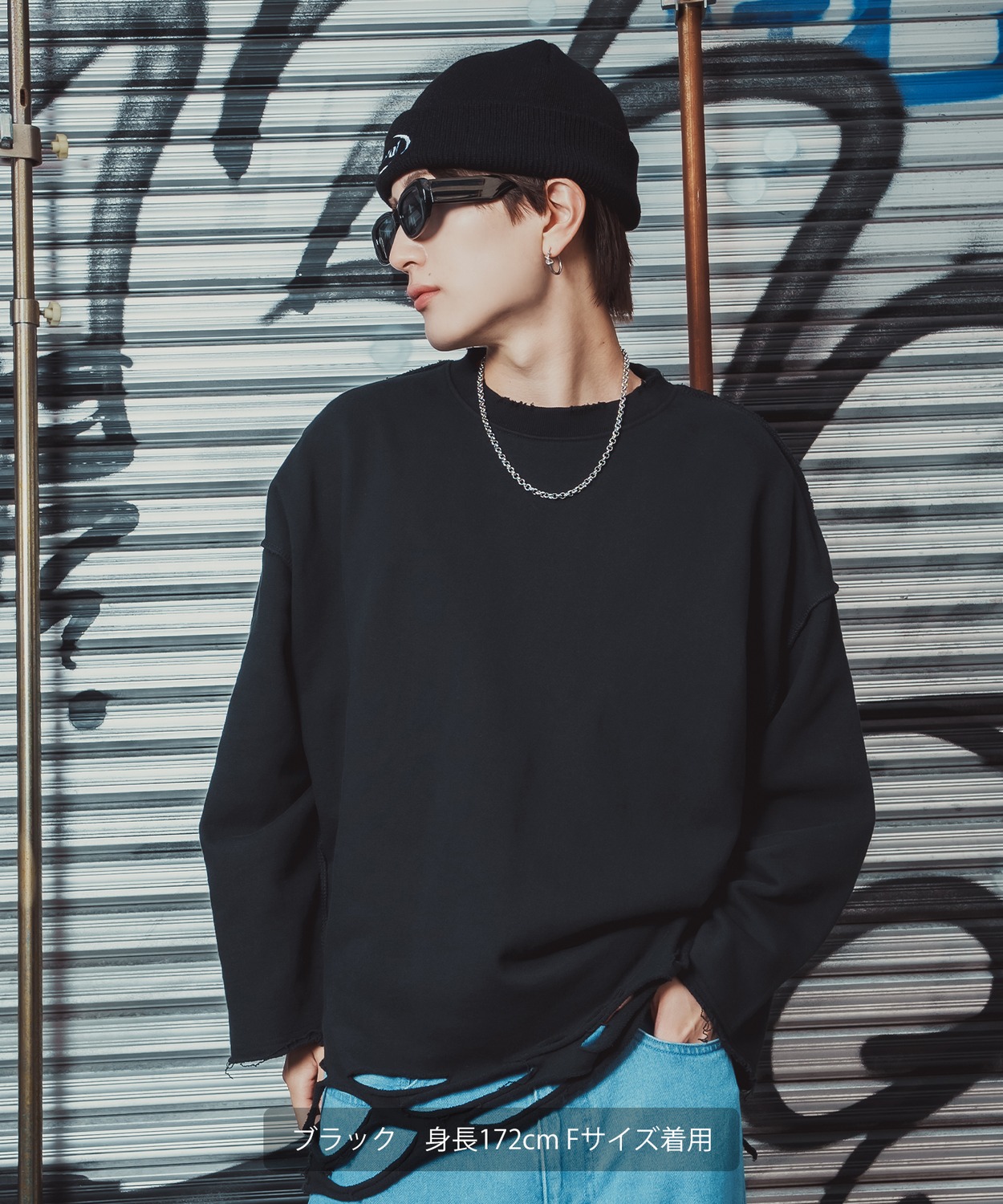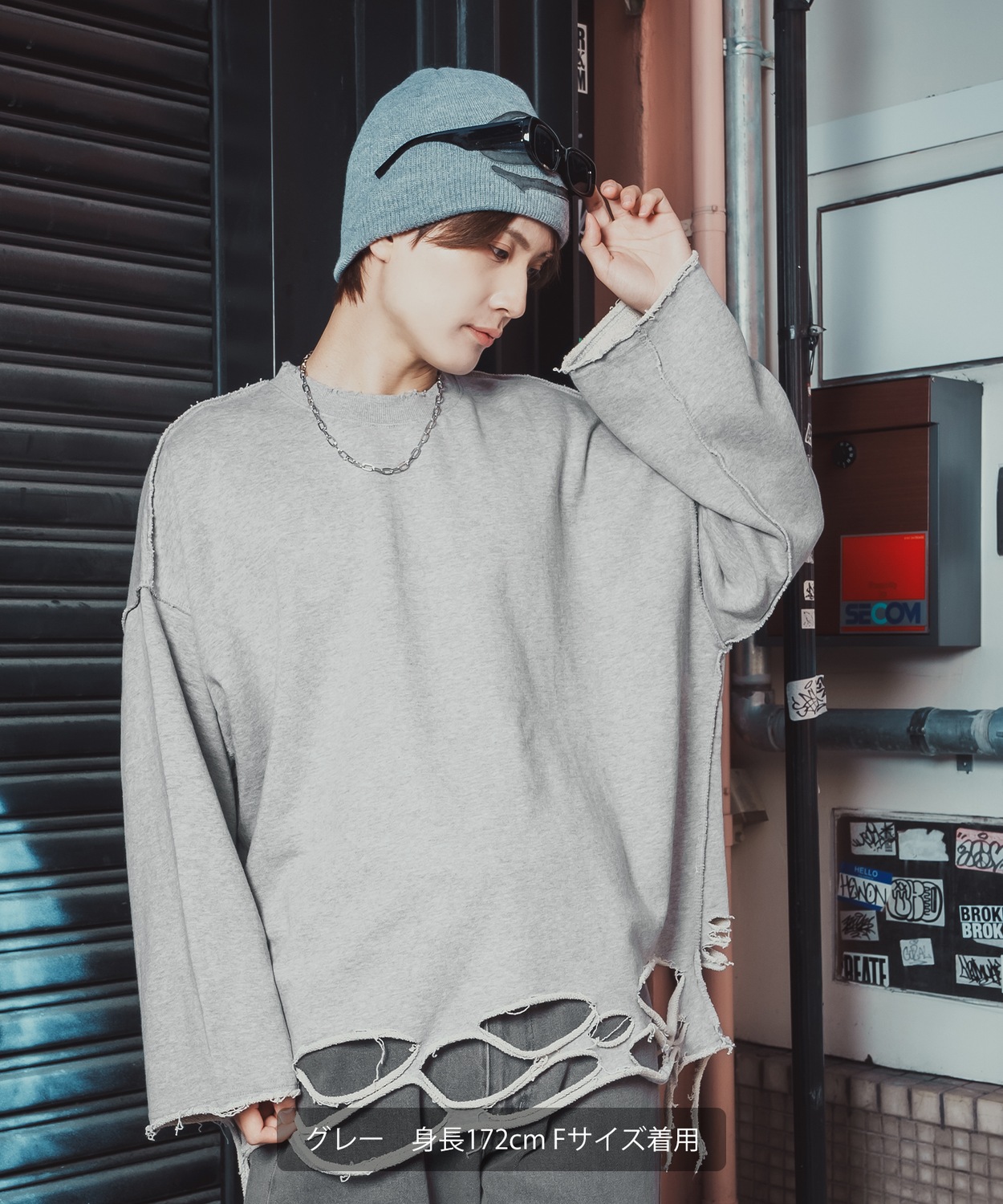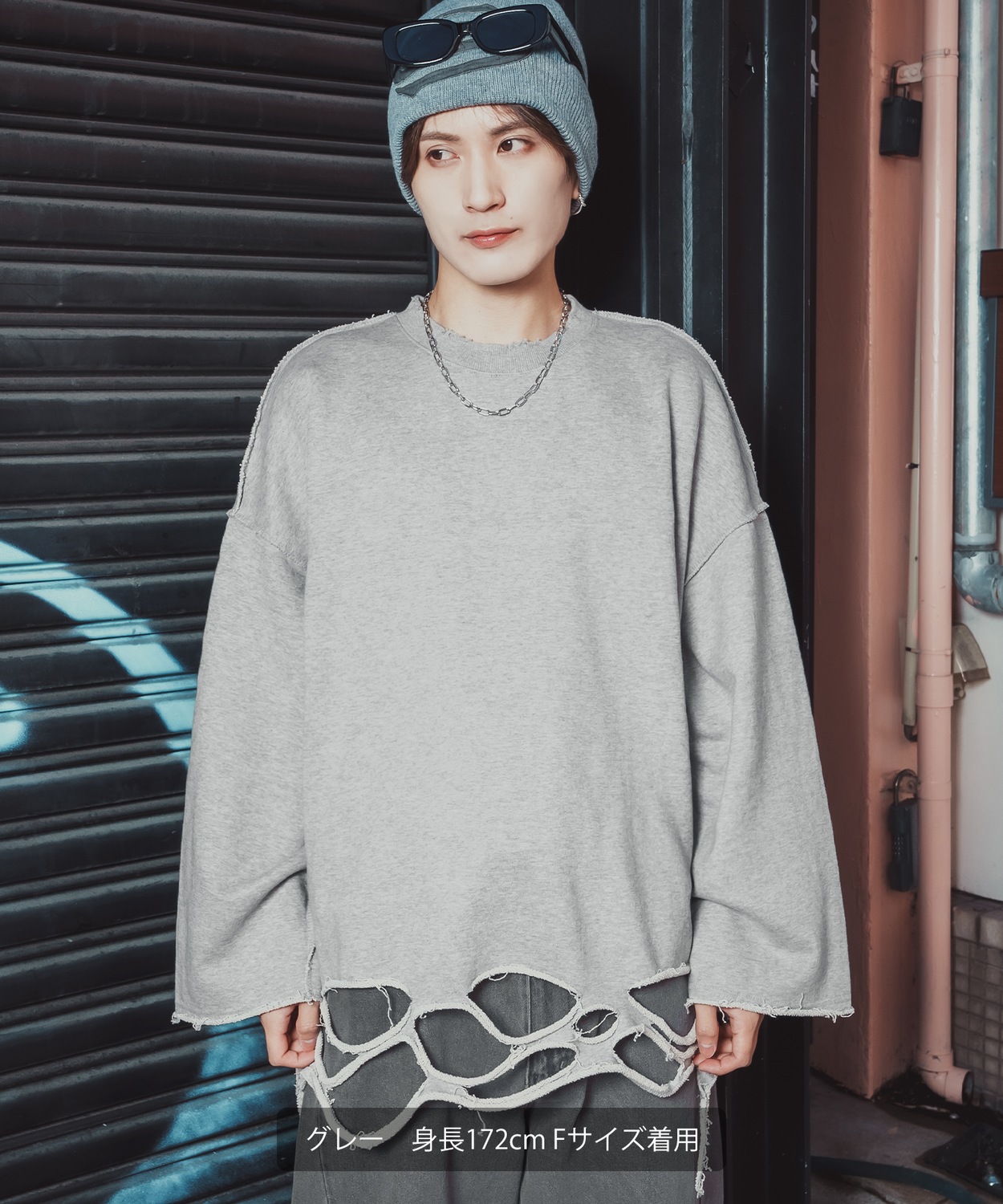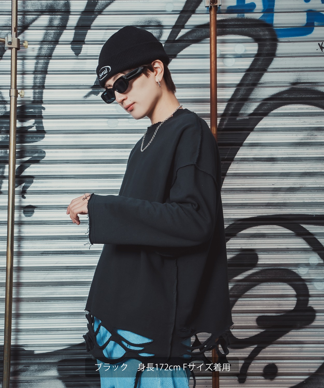 Attention ※ウエストにゴムが入ったパンツのウエスト値は、推奨ウエストのサイズです。伸縮値では御座いませんのでご注意下さい。 ※大量生産による生産過程におきまして、 若干の個体差(1cmから2cm)が生じる場合がございます。 それ以上の差異がある場合は弊社までお問い合わせください。 【サイズの測り方についての詳細はこちら】 ※サイトに掲載されている商品は、モニター環境により実際のものと素材感・色が若干異なって見える場合がございます。 ※加工具合により掲載画像との誤差が見られる場合もございます。 予めご了承くださいますようお願い申し上げます。 image ![]() ![]() ![]() ![]() ![]() ![]() ![]() ![]() ![]() ![]() ![]() ![]() ![]() ![]() ![]() ![]() ![]() ![]() ![]() ![]() 圧倒的なインパクトを放つダメージ加工スウェット。 ●大胆にカットされた裾のダメージがグランジなムードを演出 ●ゆるっとした着こなしが叶うビッグシルエット・オーバーサイズ ●肌触りの良い綿100%の裏パイル素材 ●豊富なカラーバリエーションで色違いでの購入もおすすめ 着るだけで一気に旬のストリートスタイルに導く、ヘビーユース確実なアイテムです。 裾部分の大きなカットオフダメージが、レイヤードするインナーやボトムスをチラ見せし、絶妙な抜け感を演出。 ユニセックスで着用可能!カップルでのペアコーデにもおすすめ! 破れた裾が圧倒的な存在感!退廃的な雰囲気をまとうグランジ×ストリートなオーバーサイズ ダメージスウェット!