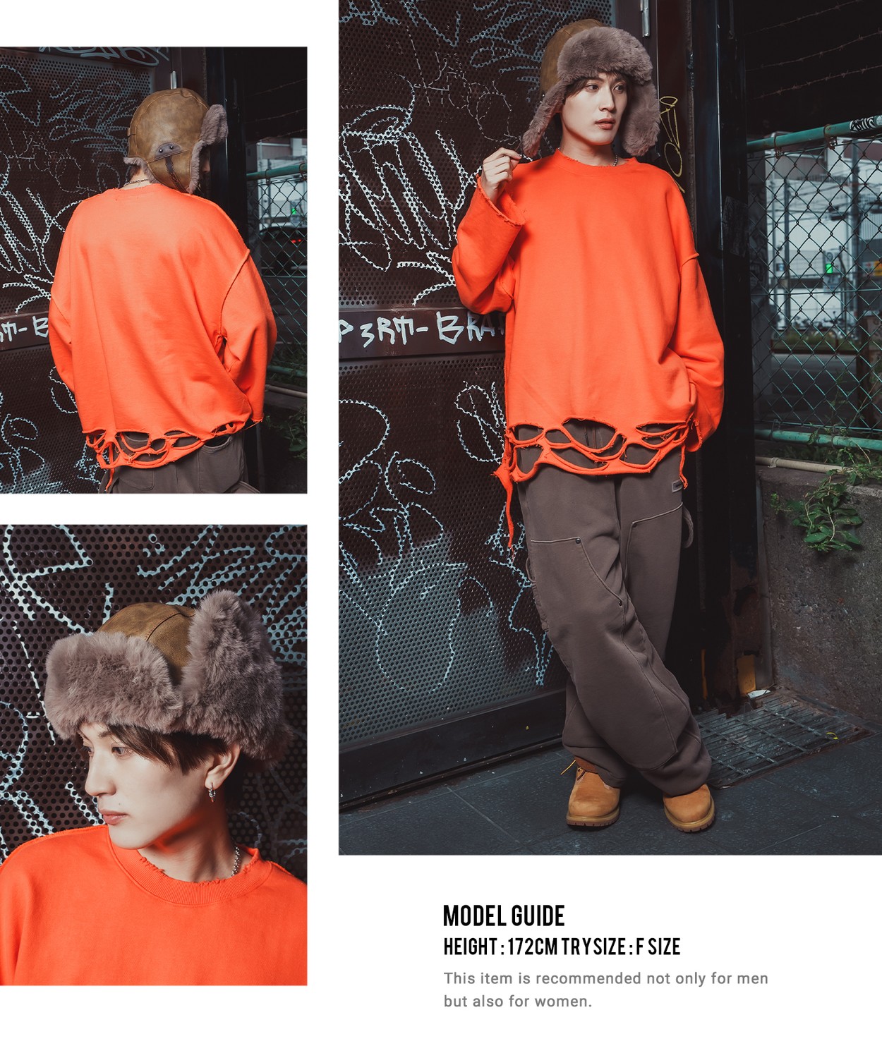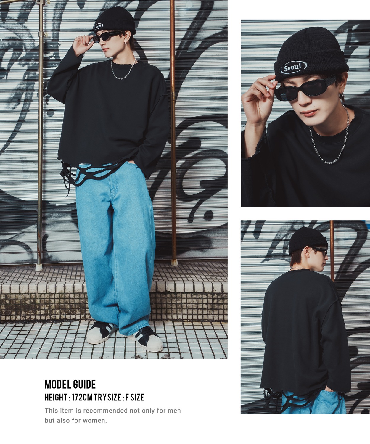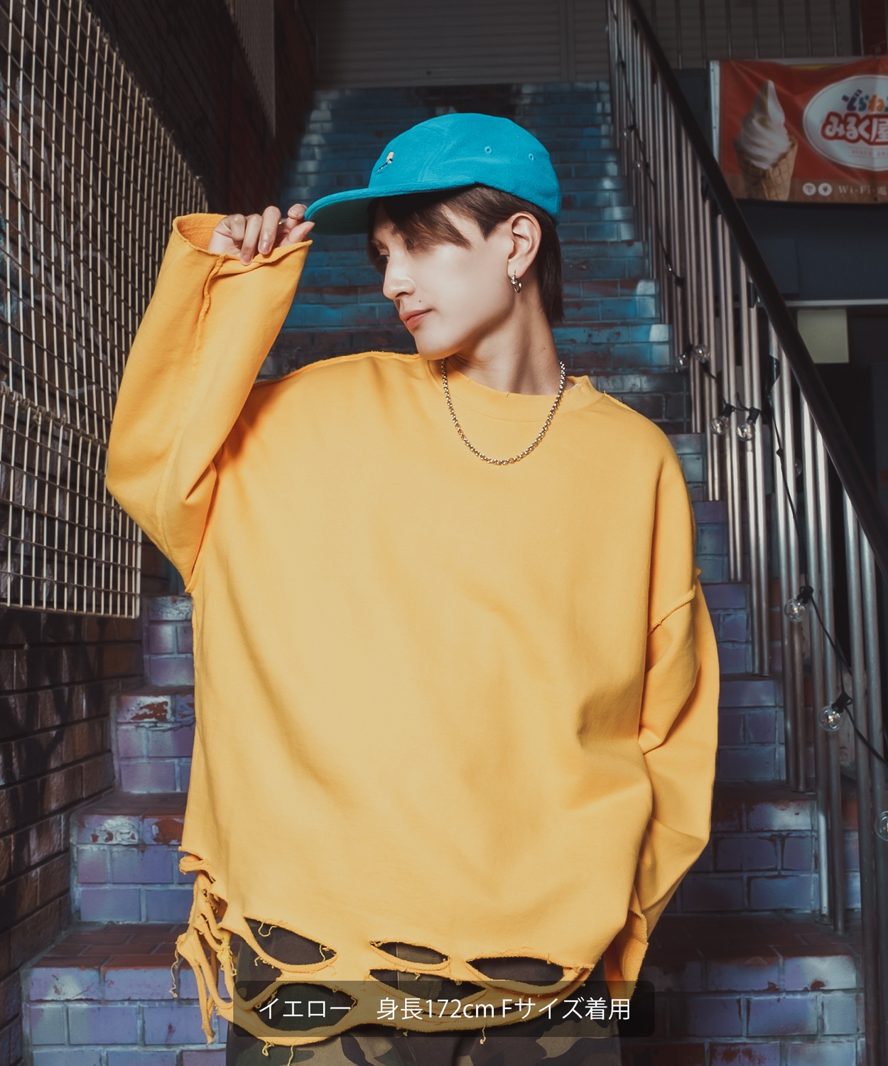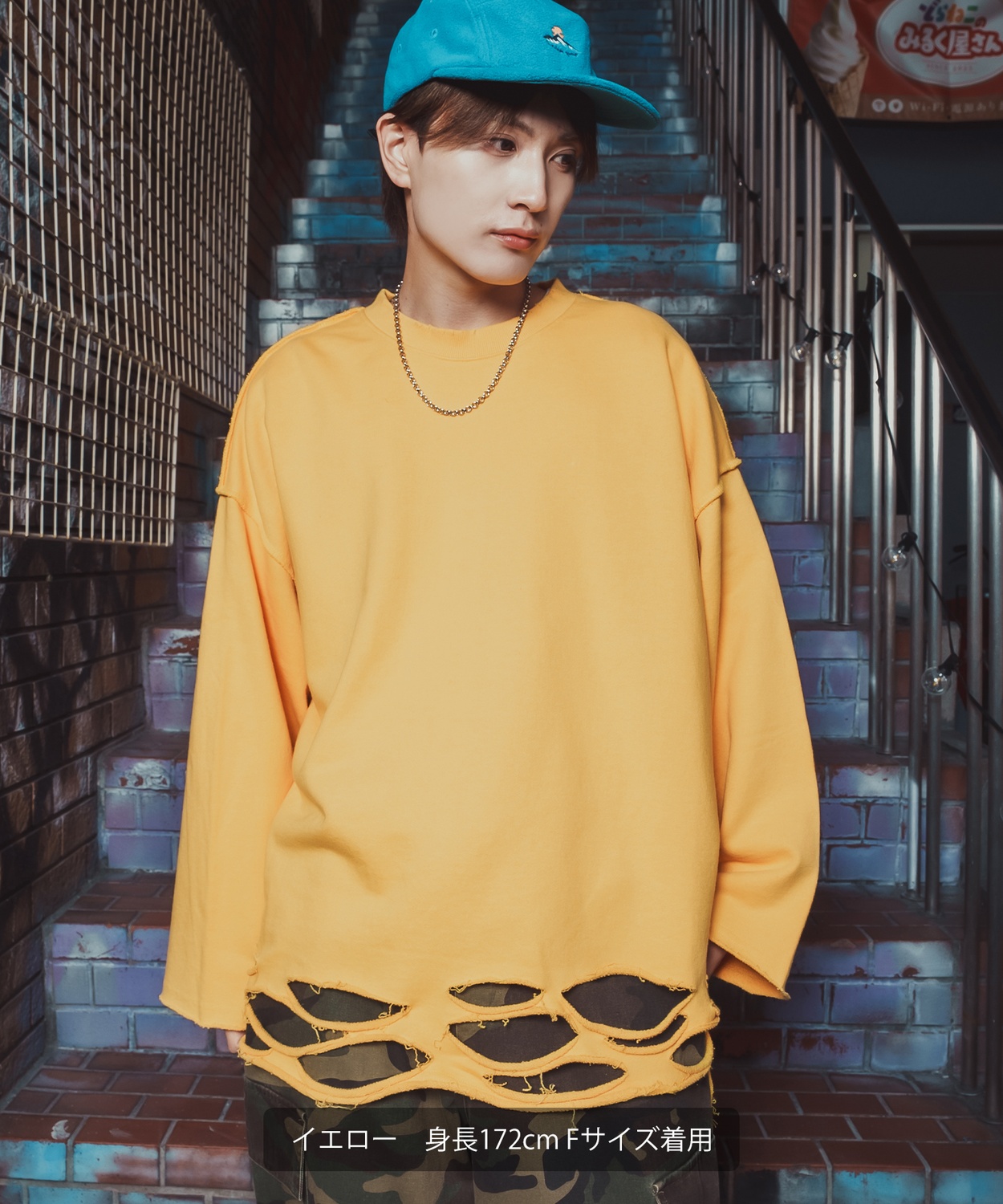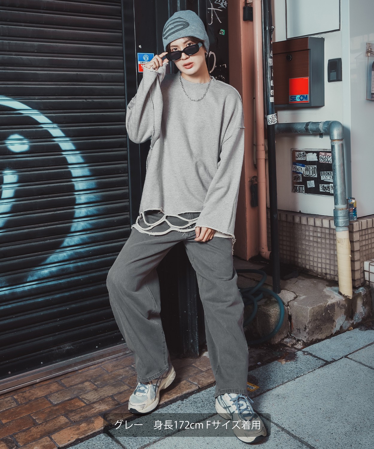 Attention ※ウエストにゴムが入ったパンツのウエスト値は、推奨ウエストのサイズです。伸縮値では御座いませんのでご注意下さい。 ※大量生産による生産過程におきまして、 若干の個体差(1cmから2cm)が生じる場合がございます。 それ以上の差異がある場合は弊社までお問い合わせください。 【サイズの測り方についての詳細はこちら】 ※サイトに掲載されている商品は、モニター環境により実際のものと素材感・色が若干異なって見える場合がございます。 ※加工具合により掲載画像との誤差が見られる場合もございます。 予めご了承くださいますようお願い申し上げます。 image ![]() ![]() ![]() ![]() ![]() ![]() ![]() ![]() ![]() ![]() ![]() ![]() ![]() ![]() ![]() ![]() ![]() ![]() ![]() ![]() 圧倒的なインパクトを放つダメージ加工スウェット。 ●大胆にカットされた裾のダメージがグランジなムードを演出 ●ゆるっとした着こなしが叶うビッグシルエット・オーバーサイズ ●肌触りの良い綿100%の裏パイル素材 ●豊富なカラーバリエーションで色違いでの購入もおすすめ 着るだけで一気に旬のストリートスタイルに導く、ヘビーユース確実なアイテムです。 裾部分の大きなカットオフダメージが、レイヤードするインナーやボトムスをチラ見せし、絶妙な抜け感を演出。 ユニセックスで着用可能!カップルでのペアコーデにもおすすめ! 破れた裾が圧倒的な存在感!退廃的な雰囲気をまとうグランジ×ストリートなオーバーサイズ ダメージスウェット!