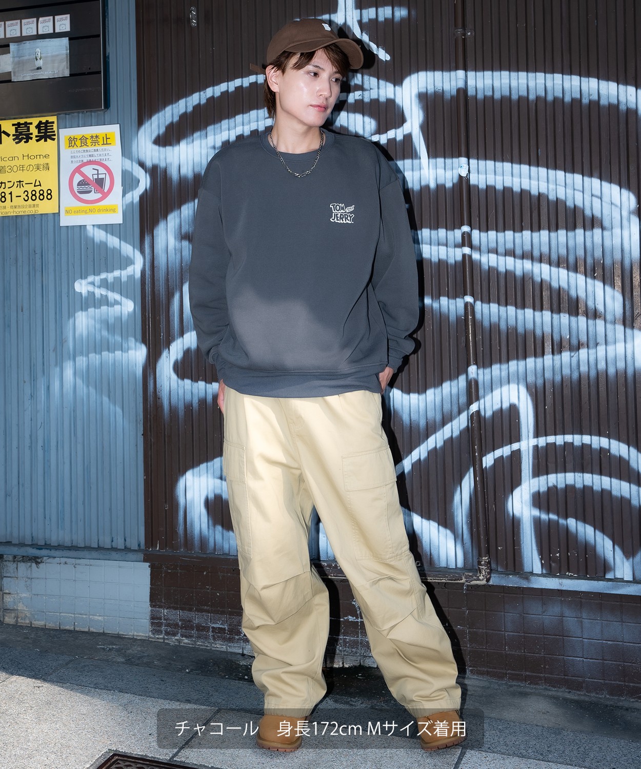Attention ※ウエストにゴムが入ったパンツのウエスト値は、推奨ウエストのサイズです。伸縮値では御座いませんのでご注意下さい。 ※大量生産による生産過程におきまして、 若干の個体差(1cmから2cm)が生じる場合がございます。 それ以上の差異がある場合は弊社までお問い合わせください。 【サイズの測り方についての詳細はこちら】 ※サイトに掲載されている商品は、モニター環境により実際のものと素材感・色が若干異なって見える場合がございます。 ※加工具合により掲載画像との誤差が見られる場合もございます。 予めご了承くださいますようお願い申し上げます。 image ![]() ![]() ![]() ![]() ![]() ![]() ![]() ![]() ![]() ![]() ![]() ![]() ![]() ![]() ![]() ![]() ![]() ![]() ![]() ![]() 大人気の「TOM&JERRY/トムとジェリー」のプリントスウェットがついに新登場! ●保温性に優れ、毛布のような優しい肌触りの裏起毛素材 ●広めの身幅とドロップショルダーによるビッグシルエットは、オーバーサイズでゆったりと着ることのできる仕上がり ●フロントにはシンプルなロゴプリント、バックには可愛いキャラプリント ゆったりしたサイジングでメンズはもちろんレディースにもオススメの一枚。 可愛らしいプリントはワイドパンツやデニムパンツとの相性が良く 秋には一枚でコーデの中心に、冬にはアウター類とのレイヤードがオススメ。 人気のトムジェリシリーズより秋冬にオススメの裏起毛トレーナー