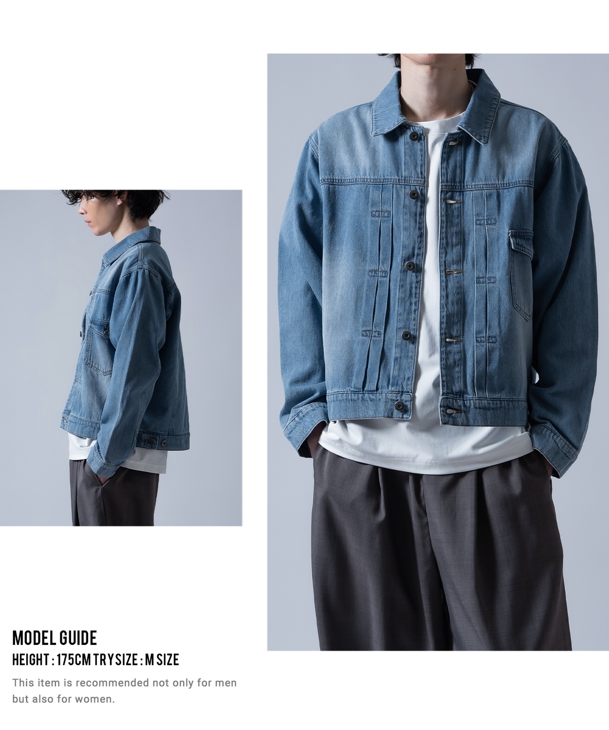 Photograph ![]() ![]() ![]() ![]() ![]() ![]() ![]() ![]() ![]() ![]() ![]() ![]() ![]() ![]() ![]() ![]() ![]() ![]() ![]() ![]() ![]() Item Info 日常をヴィンテージに変える 1stタイプ ショート ジージャン ●バランス良く見せるトレンド感のあるショート丈 ●ドロップショルダーで抜け感を演出 ●程よい厚さのコットン100%を採用 ●定番のブラック、チャコール、インディゴブルー、ブルーの4色展開 ショート丈のシルエットはスタイルアップ効果もあり、ワイドパンツやタックパンツとの相性も抜群。 洗練された黒や紺は、カジュアルからモードまで幅広いスタイルで活躍します。 Item Size