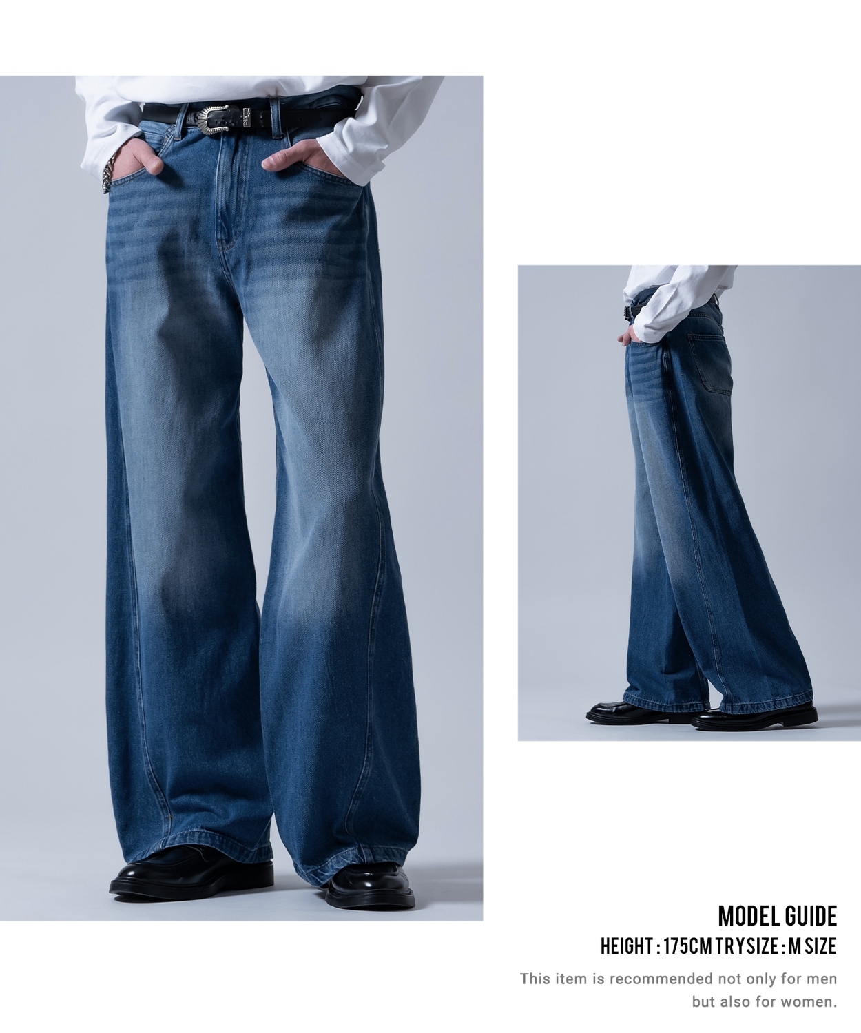 Photograph ![]() ![]() ![]() ![]() ![]() ![]() ![]() ![]() ![]() ![]() ![]() ![]() ![]() ![]() ![]() ![]() ![]() ![]() ![]() ![]() ![]() Item Info ヴィンテージなのに美脚 ワイド フレア デニムパンツ ●膝下から裾にかけて広がるバギーフレアシルエットが脚長効果を実現 ●ウエスト周りのタックなど、きれいめに見えすぎないよう、カジュアルでルーズな雰囲気を演出 ●程よい厚さのコットン100%を採用 ●定番のブラック、チャコール、インディゴブルー、ブルーの4色展開 短丈のトップスとの相性抜群。脚長効果を存分に発揮してくれる一着です。 ビッグシルエットで、男性はもちろん、女性もルーズに着こなせるサイズ感。 古着MIXや韓国ファッションにもマッチします。 Item Size