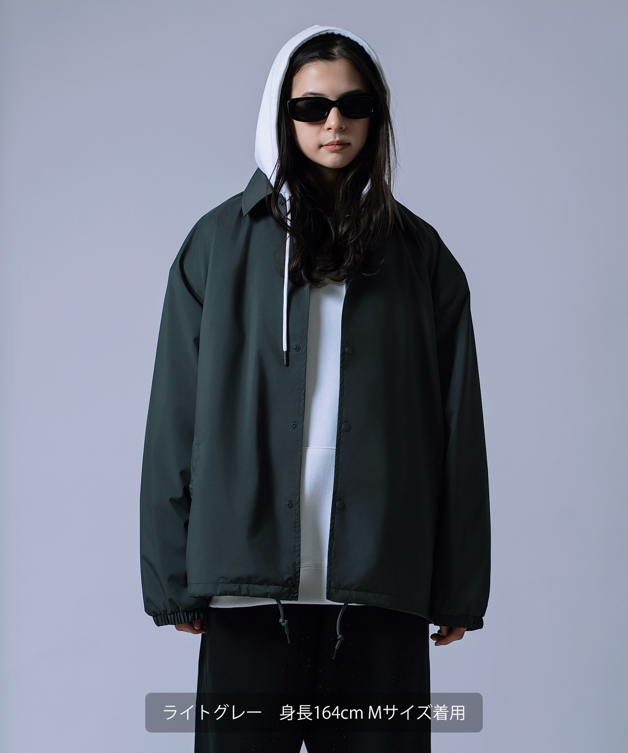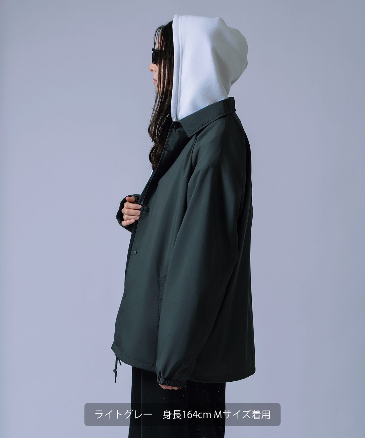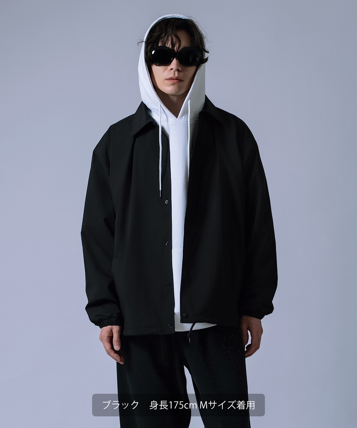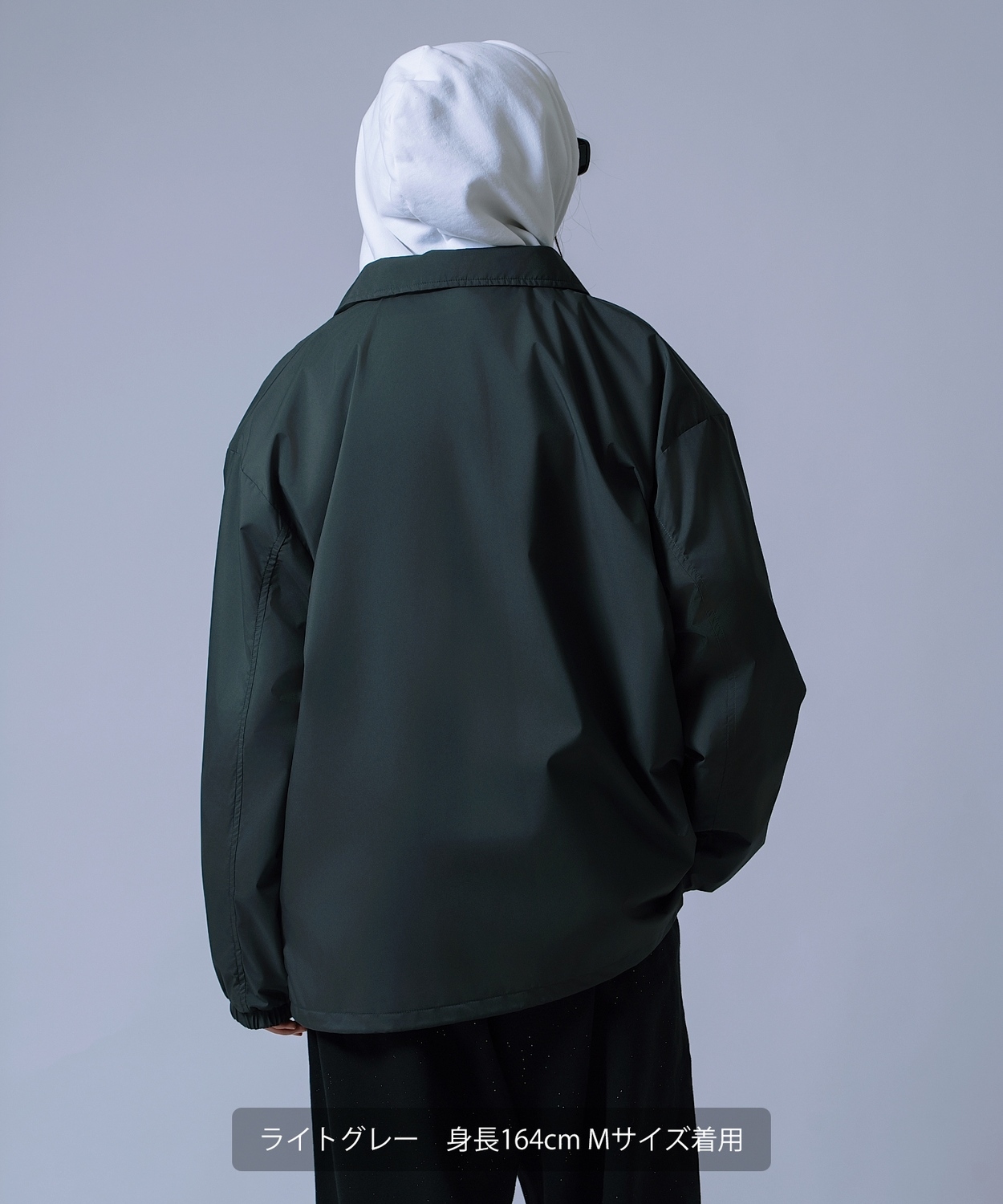 Item Info 都会的なマットな質感が目を惹く無地コーチジャケット。 ●光沢を抑えた上品でマットな質感 ●インナーを選ばないビッグシルエット ●裾のドローコードでフォルムの調節が可能 ●蒸れにくいメッシュの裏地付き ●ユニセックスで着用できるジェンダーレスな設計 カジュアルの定番であるコーチジャケットを、光沢を抑えたマットな質感と完全無地のソリッドなデザインでモダンに仕上げた一着です。無駄を一切削ぎ落としたルックスながら、計算されたルーズなサイズ感がこなれた雰囲気を演出します。パーカーやTシャツの上にさらりと羽織るだけで、トレンド感のあるストリートスタイルが完成します。 Item Size