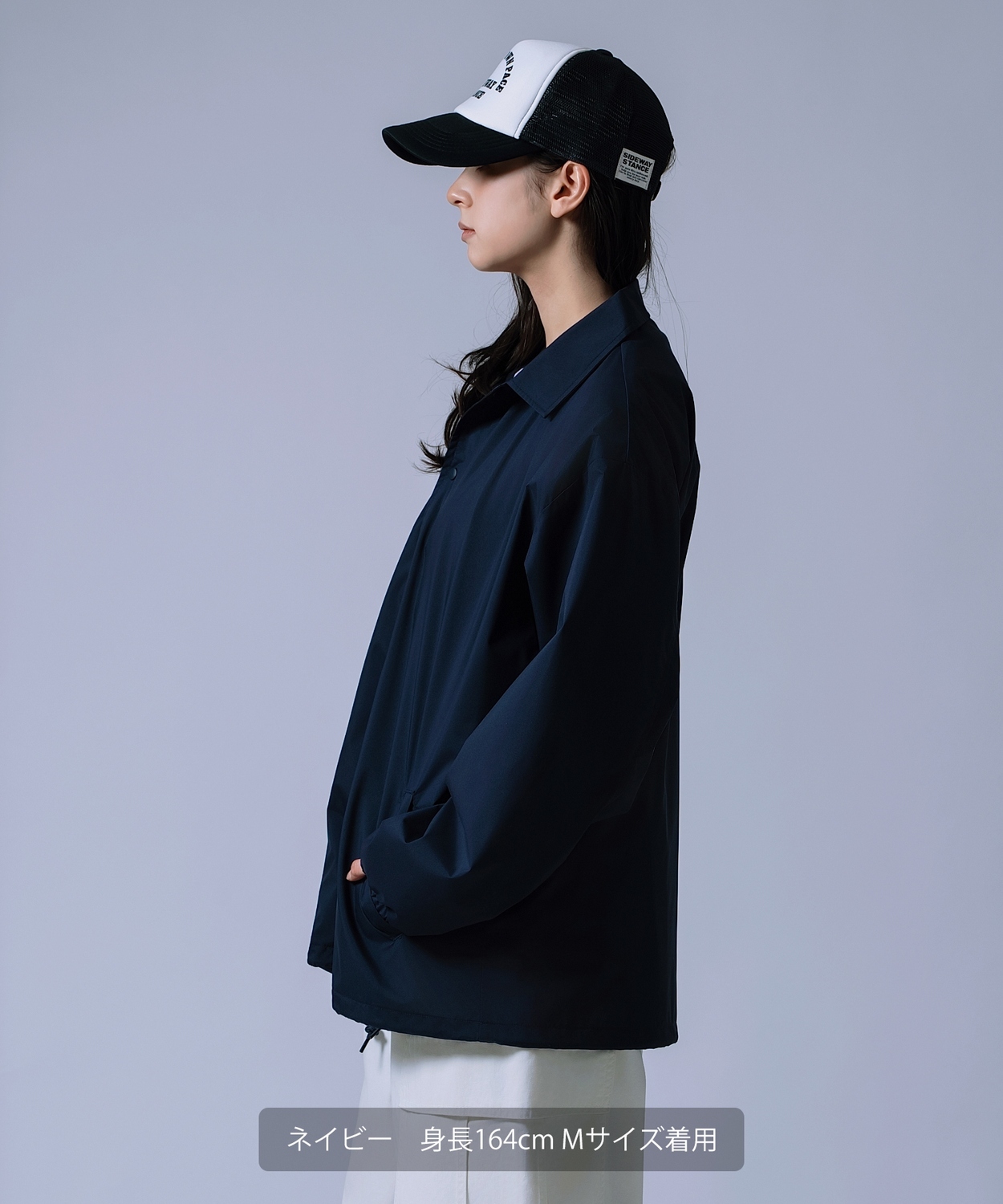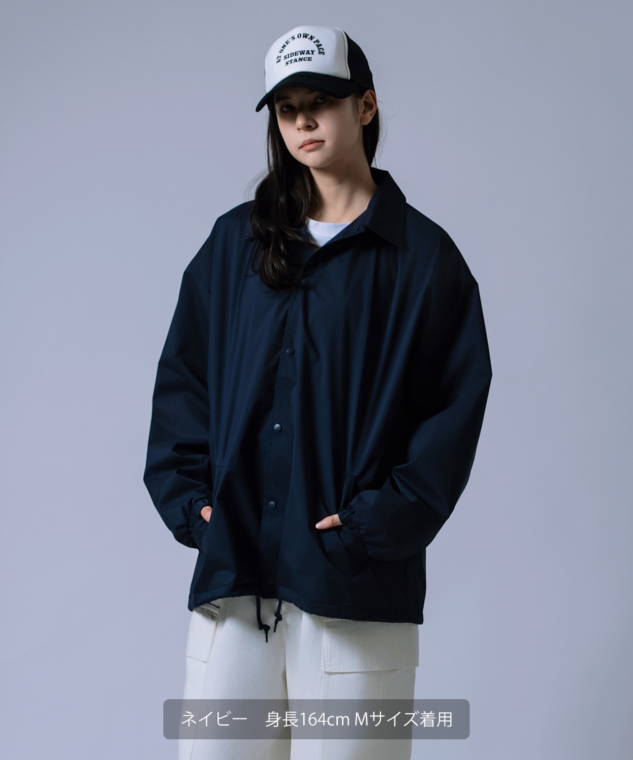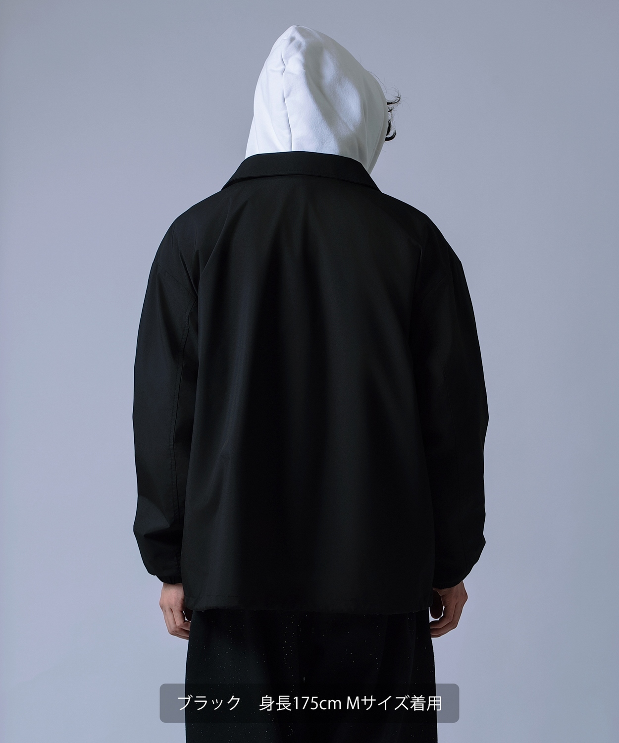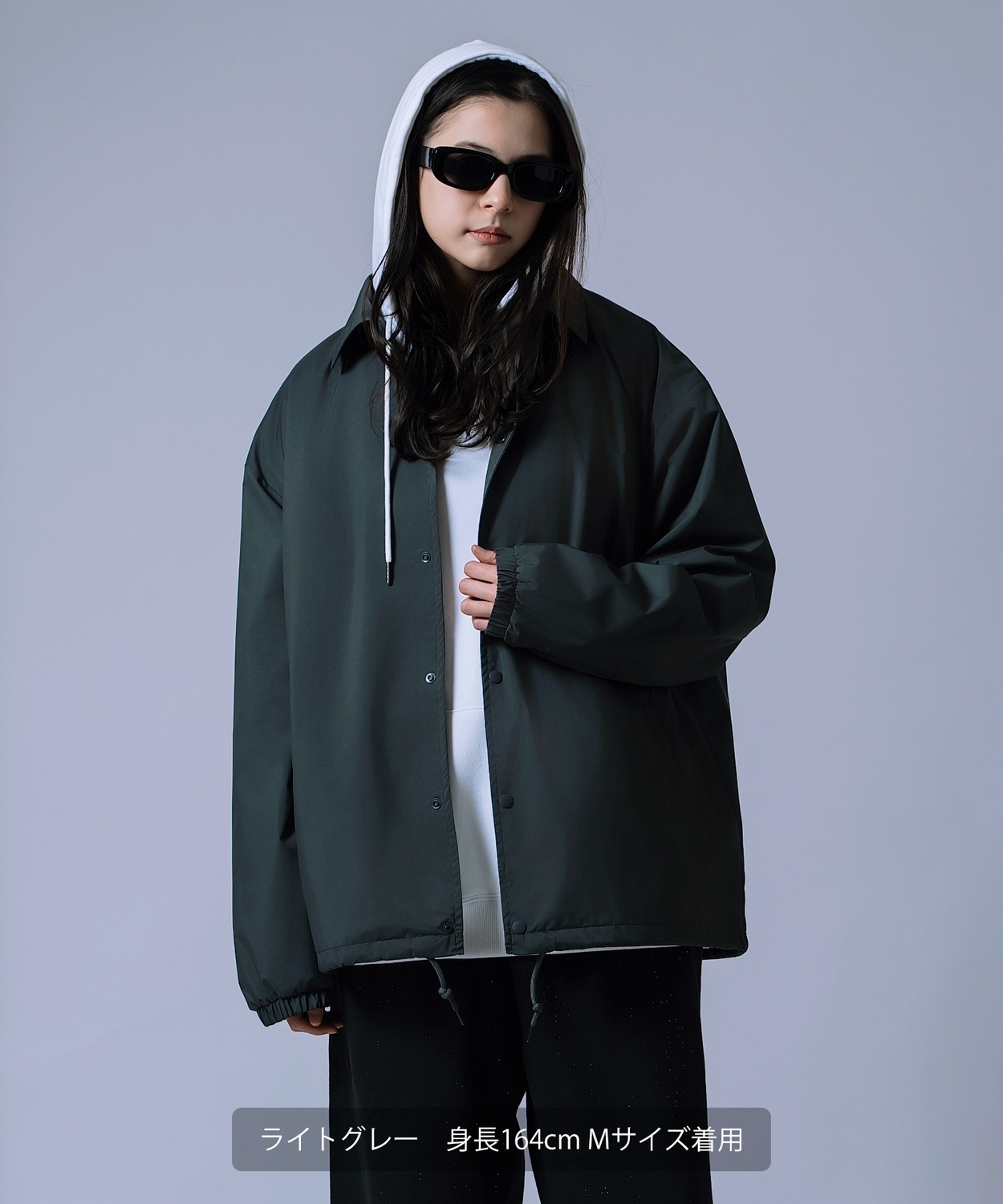 Item Info 都会的なマットな質感が目を惹く無地コーチジャケット。 ●光沢を抑えた上品でマットな質感 ●インナーを選ばないビッグシルエット ●裾のドローコードでフォルムの調節が可能 ●蒸れにくいメッシュの裏地付き ●ユニセックスで着用できるジェンダーレスな設計 カジュアルの定番であるコーチジャケットを、光沢を抑えたマットな質感と完全無地のソリッドなデザインでモダンに仕上げた一着です。無駄を一切削ぎ落としたルックスながら、計算されたルーズなサイズ感がこなれた雰囲気を演出します。パーカーやTシャツの上にさらりと羽織るだけで、トレンド感のあるストリートスタイルが完成します。 Item Size