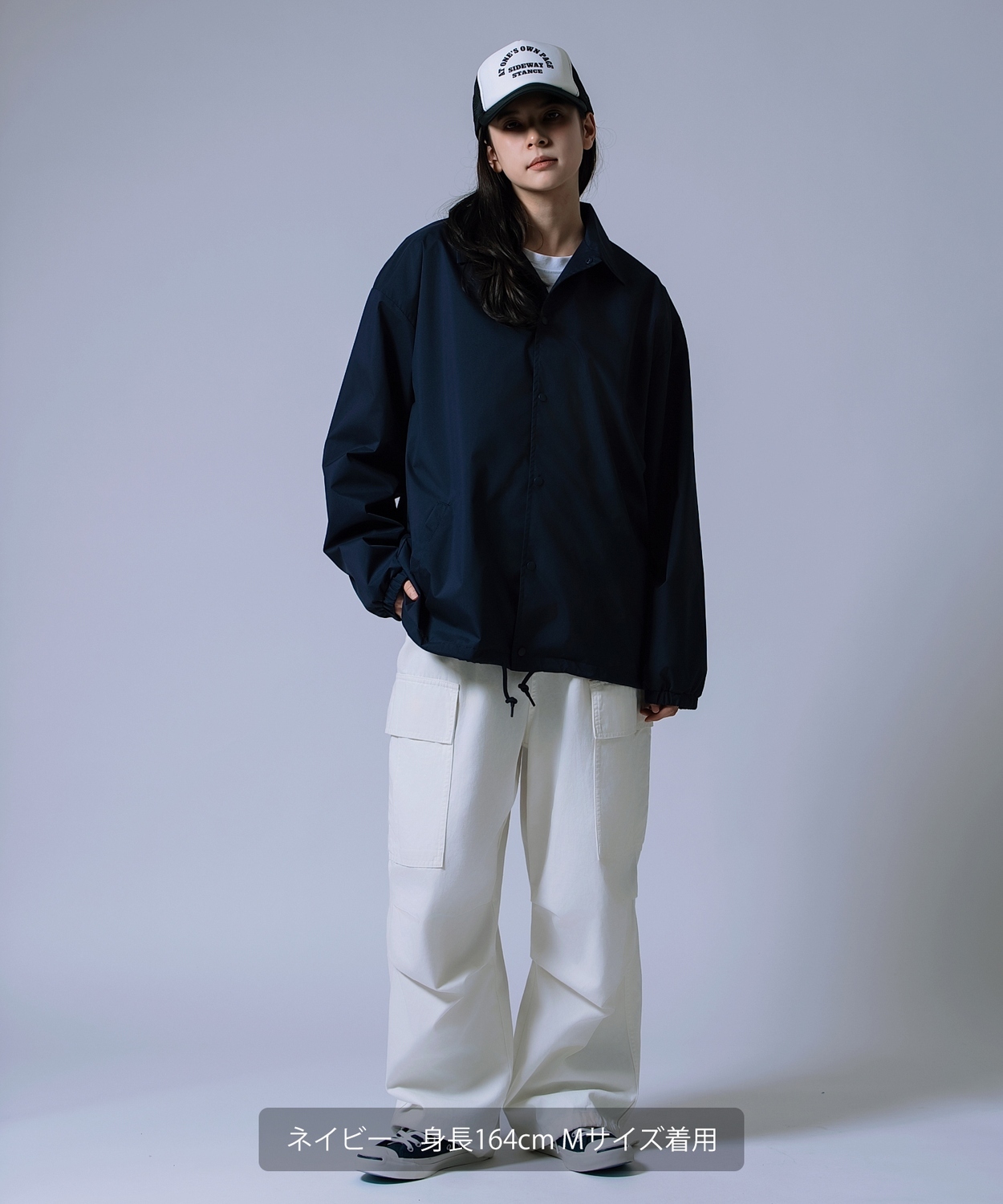 Attention ※ウエストにゴムが入ったパンツのウエスト値は、推奨ウエストのサイズです。伸縮値では御座いませんのでご注意下さい。 ※大量生産による生産過程におきまして、 若干の個体差(1cmから2cm)が生じる場合がございます。 それ以上の差異がある場合は弊社までお問い合わせください。 【サイズの測り方についての詳細はこちら】 ※サイトに掲載されている商品は、モニター環境により実際のものと素材感・色が若干異なって見える場合がございます。 ※加工具合により掲載画像との誤差が見られる場合もございます。 予めご了承くださいますようお願い申し上げます。 image ![]() ![]() ![]() ![]() ![]() ![]() ![]() ![]() ![]() ![]() ![]() ![]() ![]() ![]() ![]() ![]() ![]() ![]() ![]() ![]() 都会的なマットな質感が目を惹く無地コーチジャケット。 ●光沢を抑えた上品でマットな質感 ●インナーを選ばないビッグシルエット ●裾のドローコードでフォルムの調節が可能 ●蒸れにくいメッシュの裏地付き ●ユニセックスで着用できるジェンダーレスな設計 カジュアルの定番であるコーチジャケットを、光沢を抑えたマットな質感と完全無地のソリッドなデザインでモダンに仕上げた一着です。無駄を一切削ぎ落としたルックスながら、計算されたルーズなサイズ感がこなれた雰囲気を演出します。パーカーやTシャツの上にさらりと羽織るだけで、トレンド感のあるストリートスタイルが完成します。 マットな質感とルーズなシルエットが今の気分!究極にミニマルな無地デザインでストリートからモードまで幅広いスタイリングを旬な印象にアップデートせよ!