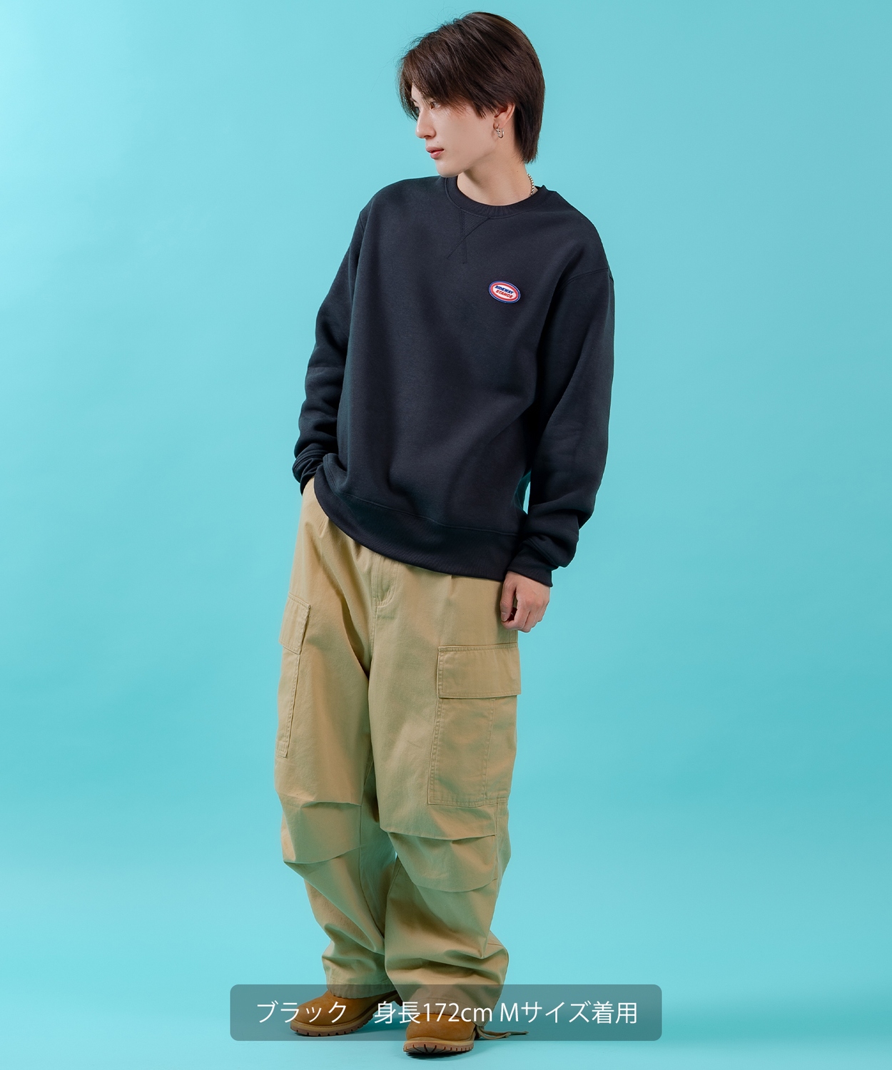 Item Info レトロスポーティーな雰囲気を纏うワッペン付きスウェット。 ●発色の良いラバーワッペンがデザインの主役 ●旬のストリート感を楽しめるビッグシルエット ●ふんわりと体を包み込む裏起毛の質感 ●首元や袖口のタフなリブ仕様 キャッチーなロゴデザインが着こなしのアクセントになるクルーネックトレーナー。 肉厚で暖かな裏起毛生地を採用しているため、寒い季節のメインアイテムとして活躍します。 ゆったりとした身幅と太めの袖ラインが、リラックス感のあるアーバンストリートな着こなしを演出します。 男女問わず着られるジェンダーレスなデザインで、ペアコーデにもおすすめです。 Item Size
