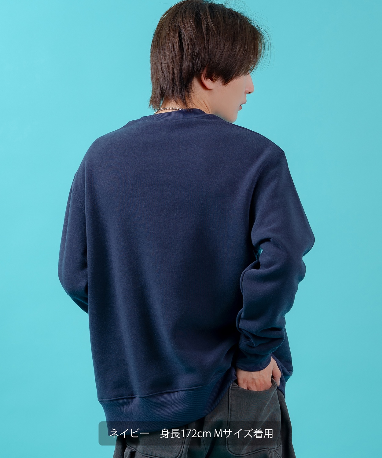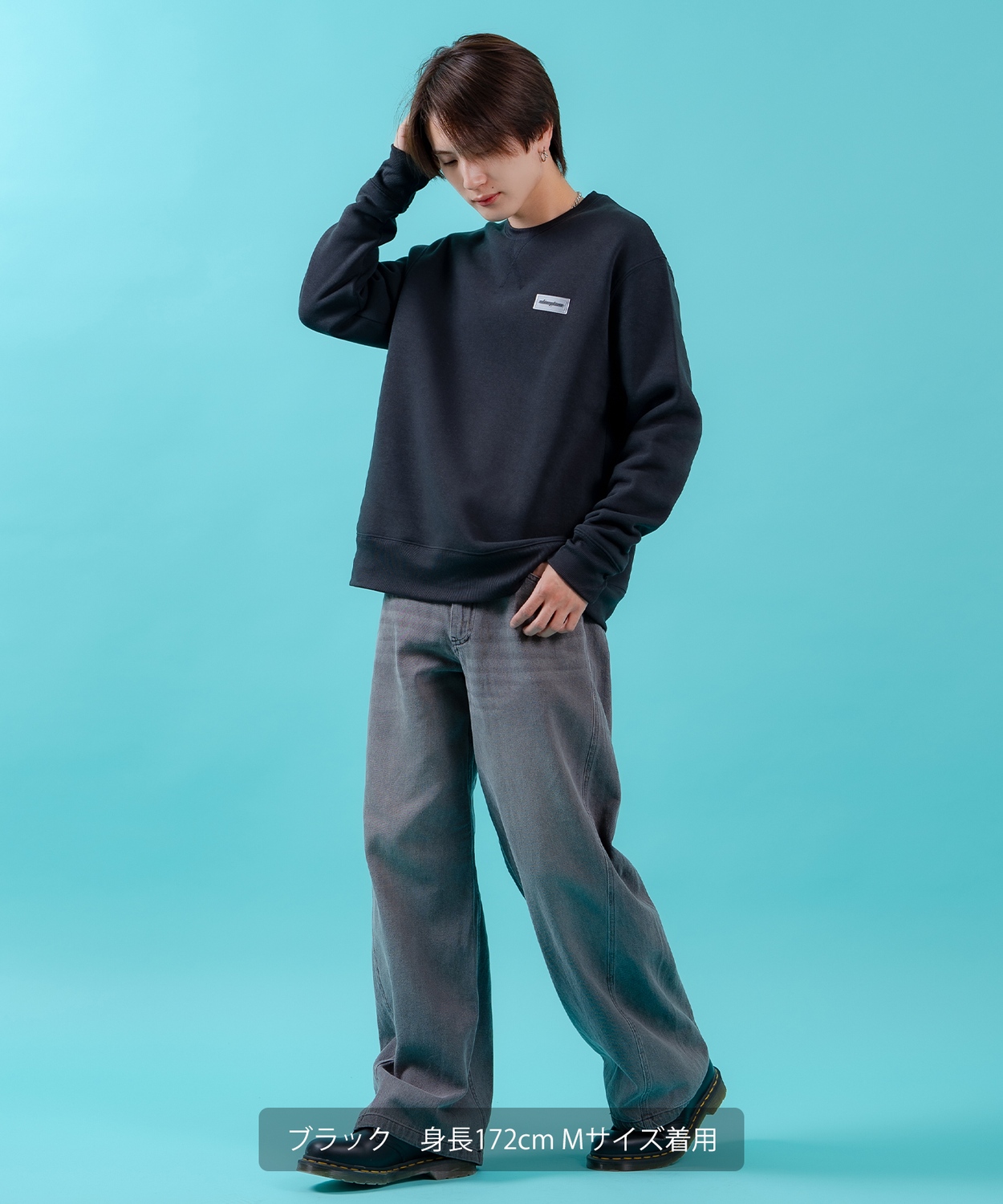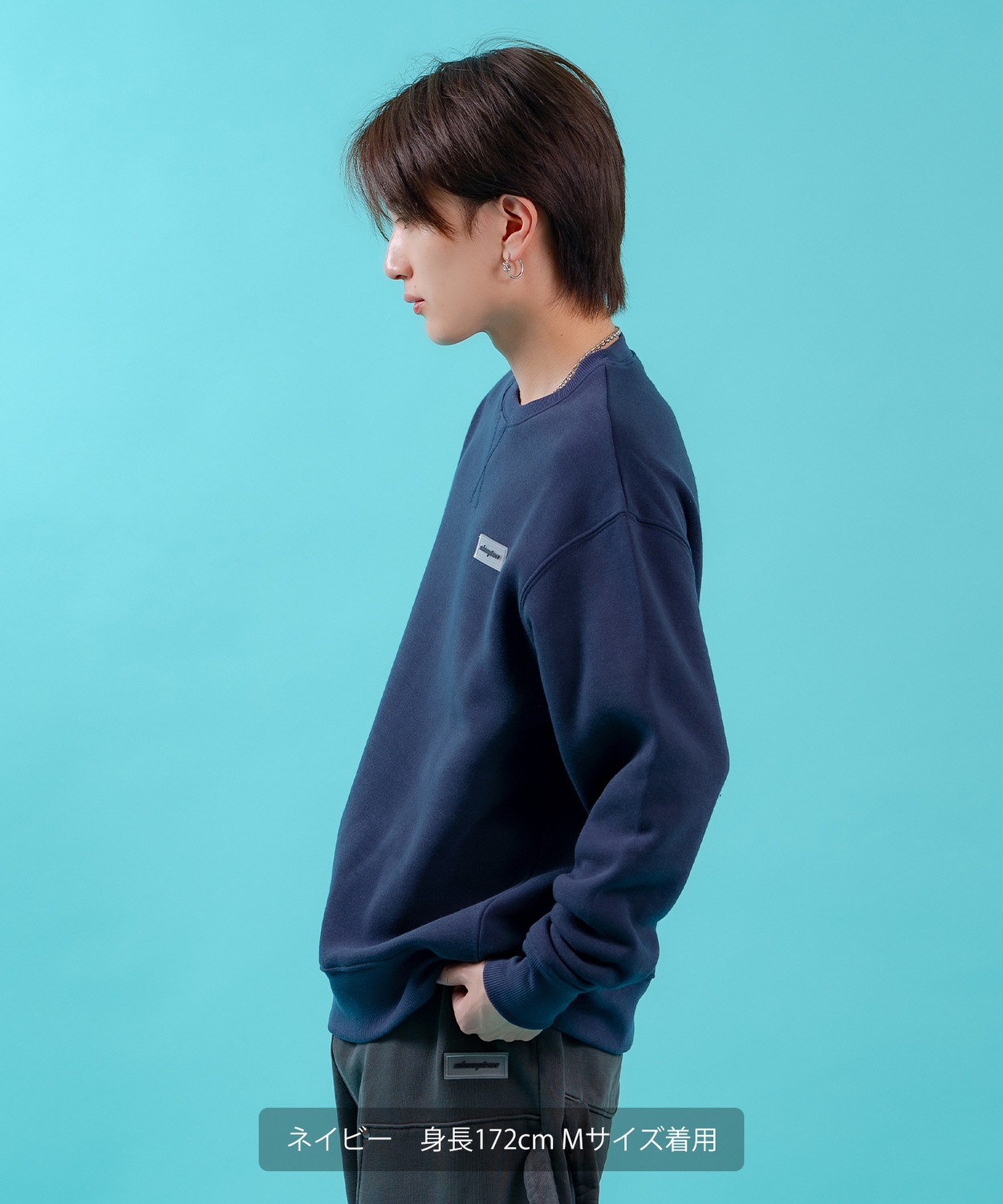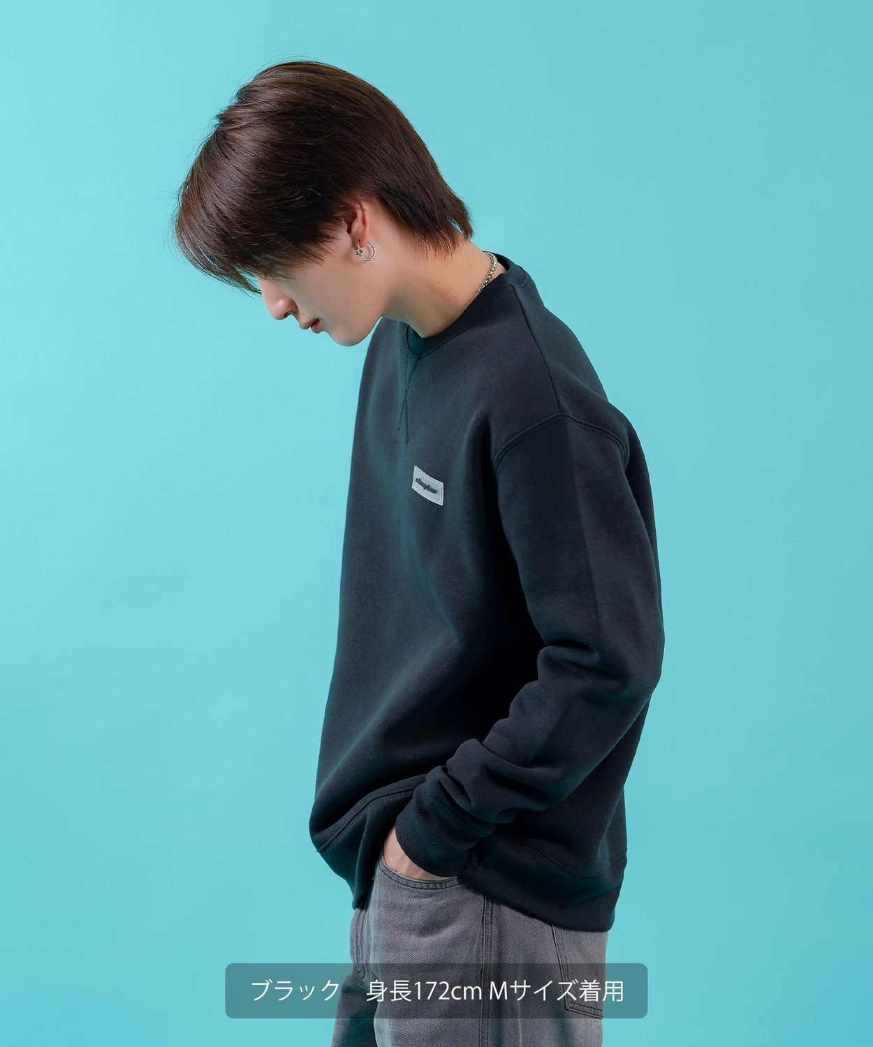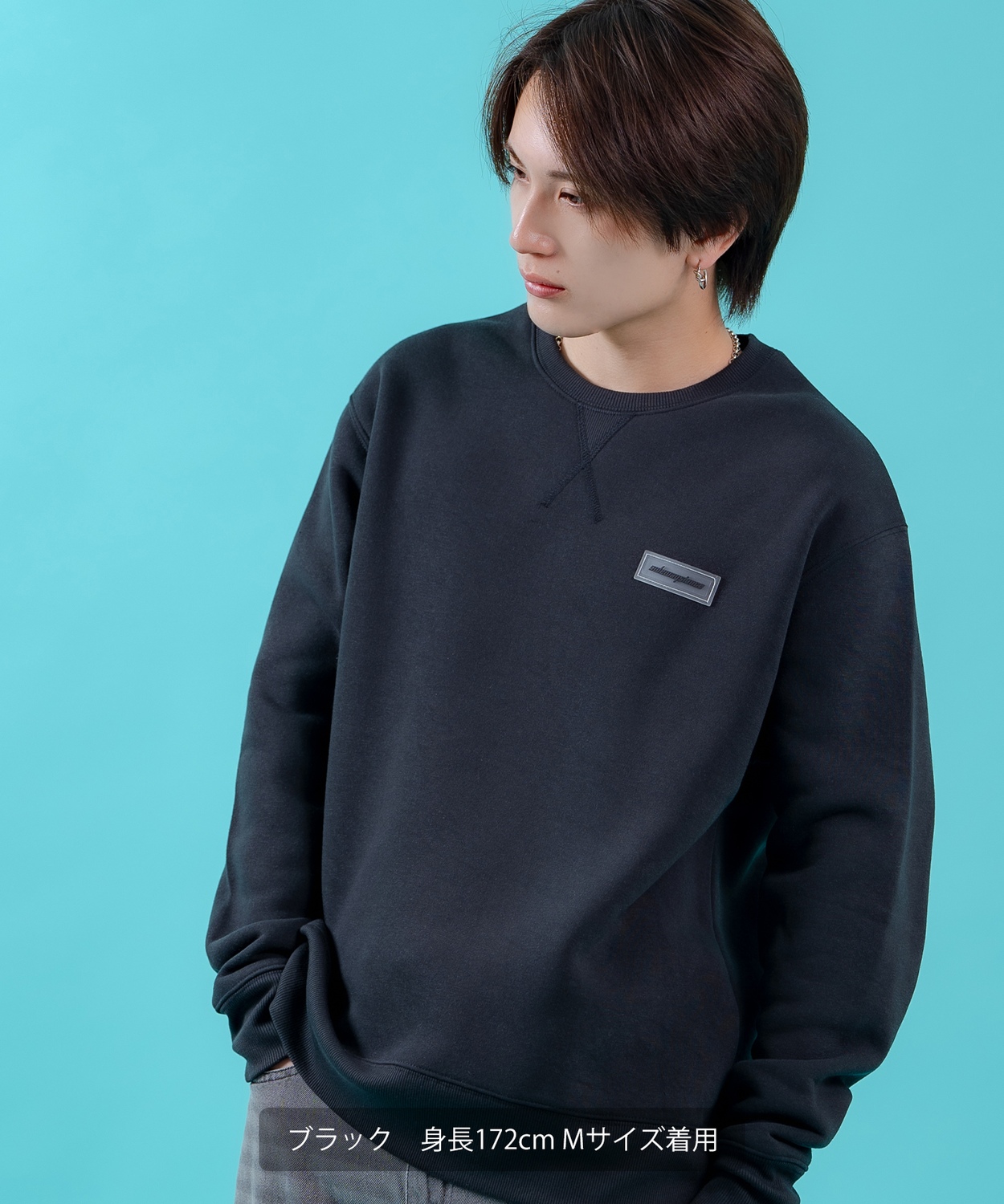 Item Info 立体的な質感が目を引く、洗練されたシリコンワッペン付き裏起毛トレーナー。 ●胸元のシリコンワッペンがテックなアクセント ●首元を補強するVガゼット風のステッチワーク ●保温性に優れたふんわりと柔らかい裏起毛素材 ●ゆったりとした今どきのビッグシルエット 無機質でモダンな印象を与えるシリコン素材のロゴワッペンを胸元に配置した一着。 シンプルながらも異素材の組み合わせが個性を放ちます。 首元のガゼットデザインがクラシックなスウェットのディテールを踏襲しつつ、都会的なストリートスタイルに昇華。 デニムやカーゴパンツと合わせたストリートスタイルはもちろん、スラックスでモードに外す着こなしもおすすめです。 Item Size