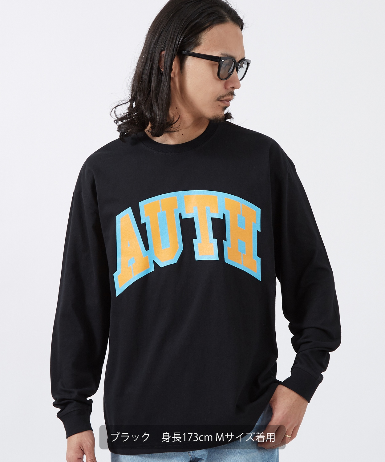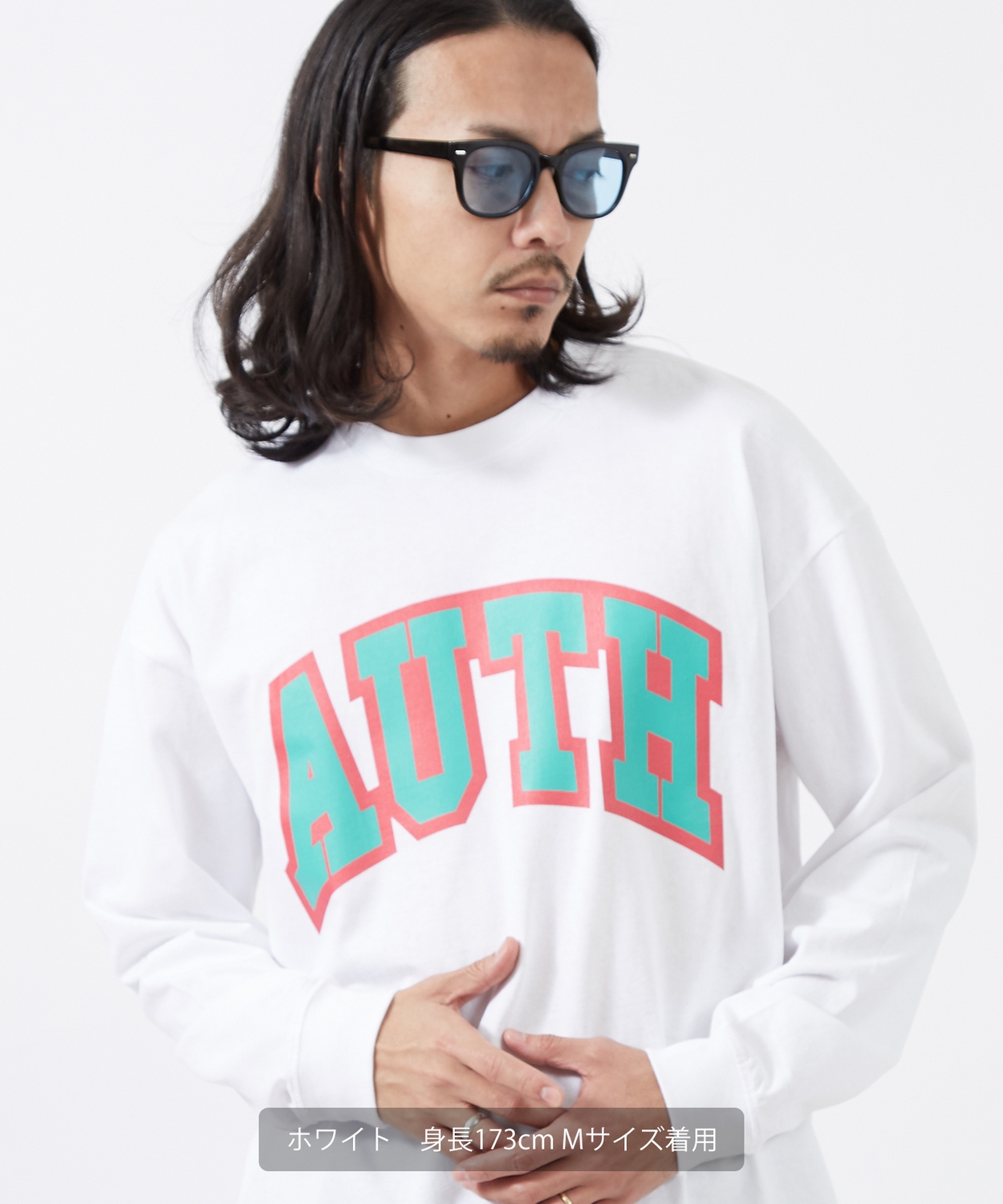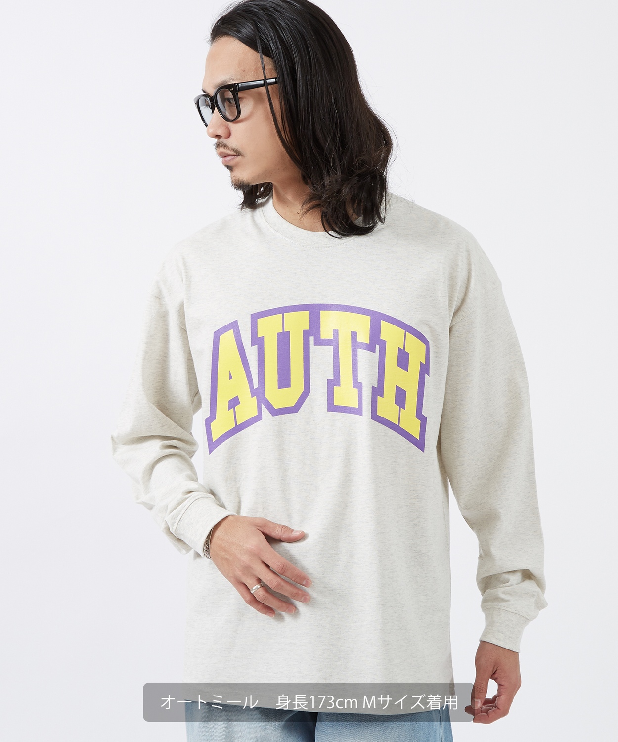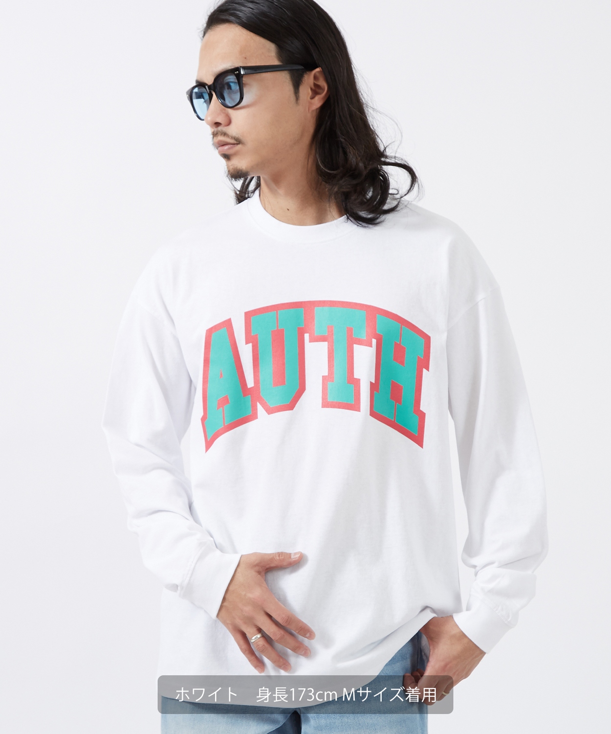 Item Info 王道ストリートを体現する、インパクト抜群のカレッジロゴロンT。 ●大胆な配色が目を惹くアーチ状の「AUTH」カレッジロゴ ●肌馴染みが良くデイリー使いしやすい綿100%素材を採用 ●肩を落としたドロップショルダーのビッグシルエット ●首元と袖口はヨレにくいリブ仕様でタフな仕上がり フロントに施された立体感のあるカレッジプリントが、コーディネートの主役を飾る一着です。 広めの身幅と絶妙な肩の落ち感により、着るだけで今っぽいリラックスした着こなしが完成します。 デニムやカーゴパンツ、ワイドスラックスなど合わせるボトムスを選ばず、シーズンレスで活躍するワードローブの必須アイテムです。 Item Size