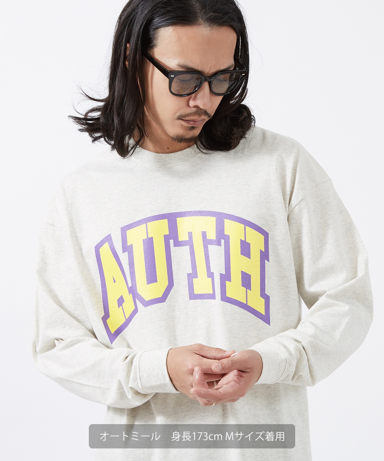 Attention ※ウエストにゴムが入ったパンツのウエスト値は、推奨ウエストのサイズです。伸縮値では御座いませんのでご注意下さい。 ※大量生産による生産過程におきまして、 若干の個体差(1cmから2cm)が生じる場合がございます。 それ以上の差異がある場合は弊社までお問い合わせください。 【サイズの測り方についての詳細はこちら】 ※サイトに掲載されている商品は、モニター環境により実際のものと素材感・色が若干異なって見える場合がございます。 ※加工具合により掲載画像との誤差が見られる場合もございます。 予めご了承くださいますようお願い申し上げます。 image ![]() ![]() ![]() ![]() ![]() ![]() ![]() ![]() ![]() ![]() ![]() ![]() ![]() ![]() ![]() 王道ストリートを体現する、インパクト抜群のカレッジロゴロンT。 ●大胆な配色が目を惹くアーチ状の「AUTH」カレッジロゴ ●肌馴染みが良くデイリー使いしやすい綿100%素材を採用 ●肩を落としたドロップショルダーのビッグシルエット ●首元と袖口はヨレにくいリブ仕様でタフな仕上がり フロントに施された立体感のあるカレッジプリントが、コーディネートの主役を飾る一着です。 広めの身幅と絶妙な肩の落ち感により、着るだけで今っぽいリラックスした着こなしが完成します。 デニムやカーゴパンツ、ワイドスラックスなど合わせるボトムスを選ばず、シーズンレスで活躍するワードローブの必須アイテムです。 トレンド感溢れるアーチ状のカレッジロゴが目を惹く!タフな生地感とルーズなシルエットで幅広く着回せる万能ロンT