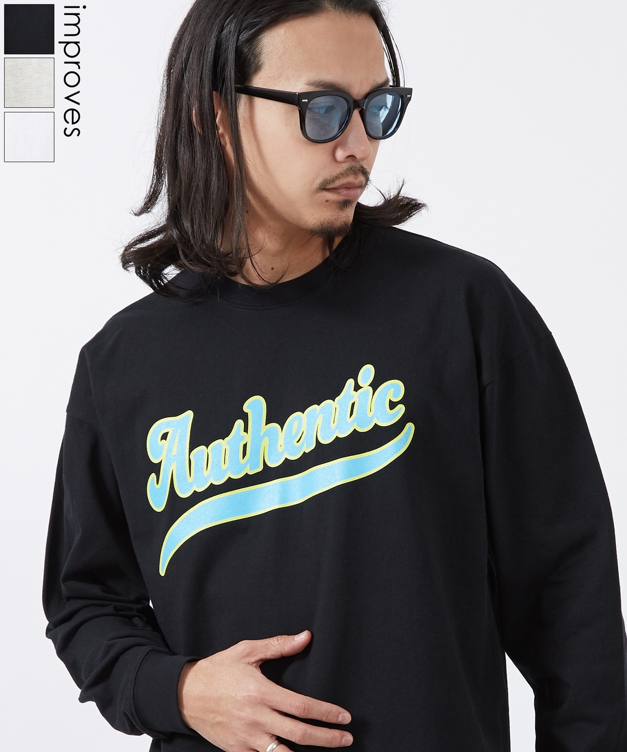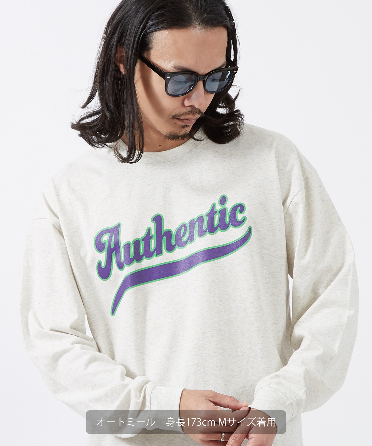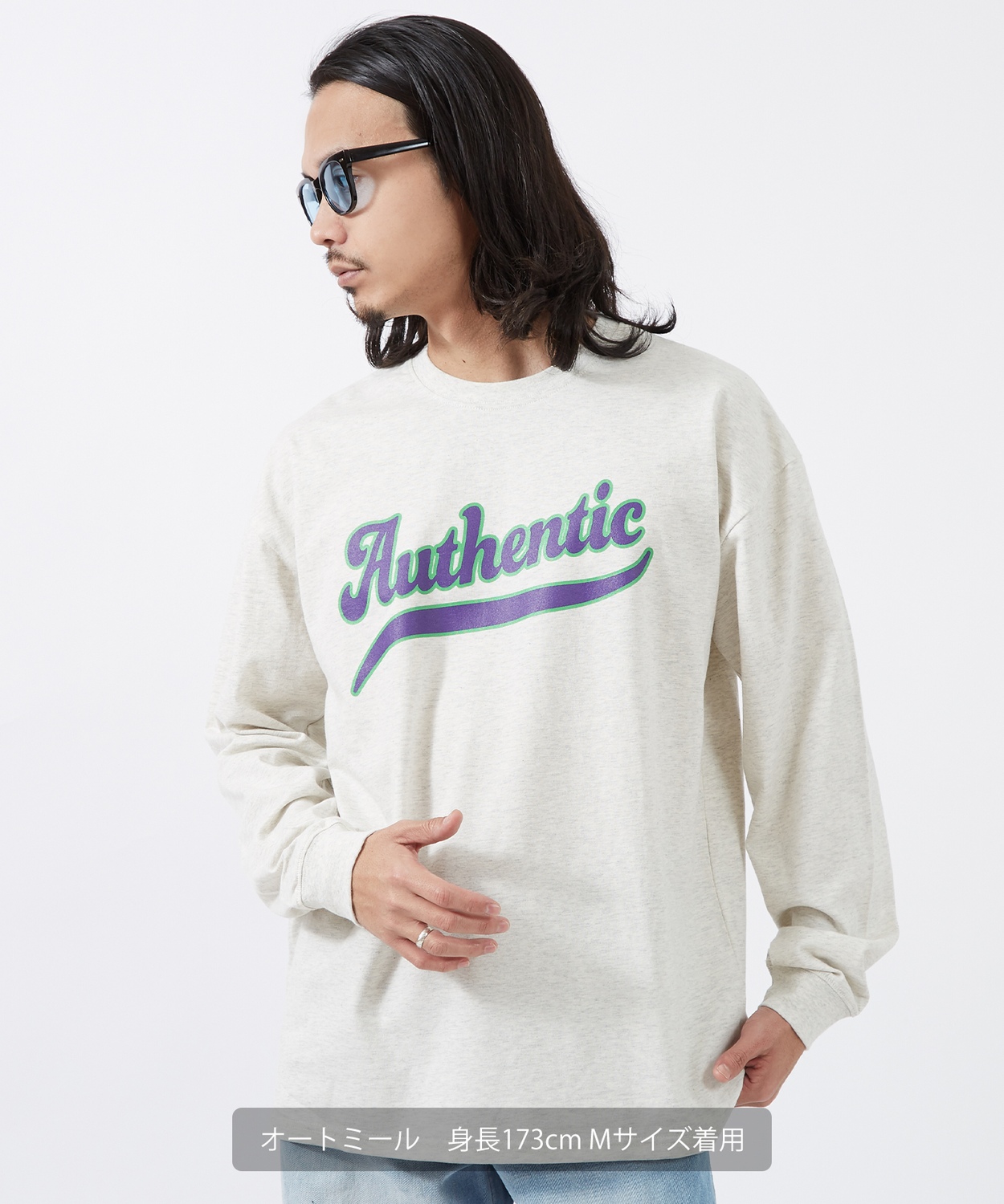 Item Info 一枚でキマる主役級 オーセンティック ロゴプリント ロンT ●フロントのロゴプリントが躍動感とクラシックなスポーツテイストを演出 ●肌馴染みの良いコットン100%のタフな天竺素材を採用 ●肩を落としたドロップショルダーのビッグシルエット ●定番のブラック、ホワイト、オートミールの3色展開 クラシックなロゴプリントを現代的なビッグシルエットに落とし込んだアイテム。 程よく厚みのある綿100%生地を使用しているため、1枚での着用はもちろん、レイヤードスタイルのインナーとしてもロングシーズン活躍。 ワイドパンツやチノパンと合わせた、リラックス感のある古着風コーデにぴったりの1枚です。 Item Size