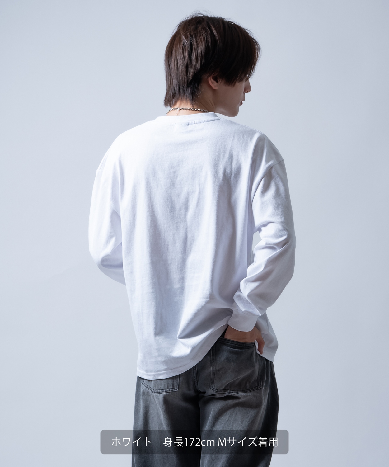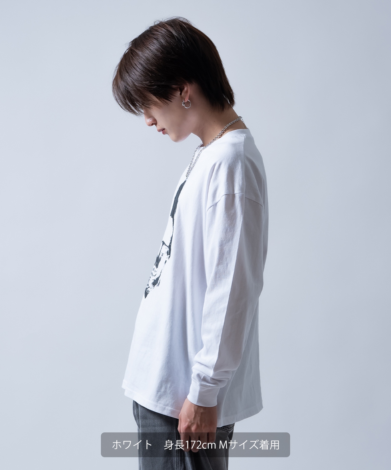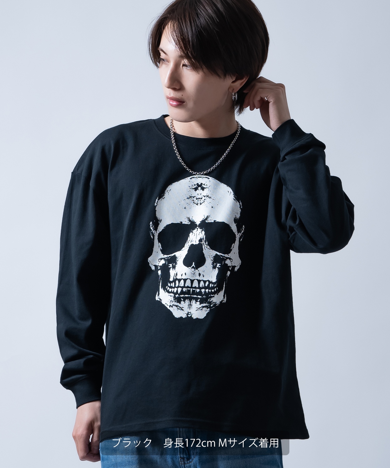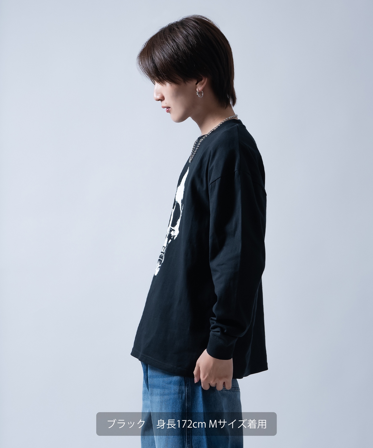 Item Info インパクト抜群のビッグスカルプリントが目を引く長袖Tシャツ。 ●存在感のあるフロントのスカルグラフィック ●こなれ感を演出する絶妙なかすれプリント ●肌なじみが良く、ロングシーズン着回せる綿100%素材 ●ゆったりとした旬のビッグシルエット フロントに大胆に施されたスカルプリントが、ロックやパンクなエッセンスを醸し出す一着です。 ヴィンテージの古着のような質感を表現したかすれプリントが、ストリートスタイルに深みを与えます。 身幅をたっぷりと取ったオーバーサイズ設計なので、一枚で着てもサマになり、レイヤードのインナーとしても重宝します。 デニムやワイドパンツと合わせて、エッジの効いたスタイリングを楽しむのがおすすめです。 Item Size