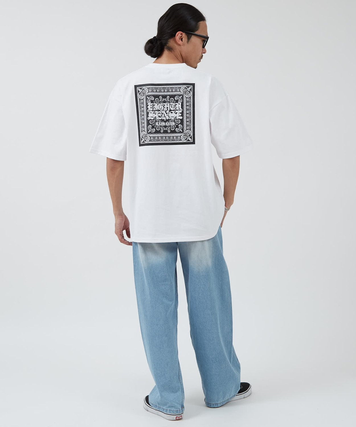 Attention ※ウエストにゴムが入ったパンツのウエスト値は、推奨ウエストのサイズです。伸縮値では御座いませんのでご注意下さい。 ※大量生産による生産過程におきまして、 若干の個体差(1cmから2cm)が生じる場合がございます。 それ以上の差異がある場合は弊社までお問い合わせください。 【サイズの測り方についての詳細はこちら】 ※サイトに掲載されている商品は、モニター環境により実際のものと素材感・色が若干異なって見える場合がございます。 ※加工具合により掲載画像との誤差が見られる場合もございます。 予めご了承くださいますようお願い申し上げます。 image ![]() ![]() ![]() ![]() ![]() ![]() ![]() ![]() ![]() ![]() ![]() ![]() ![]() ![]() ![]() ![]() ![]() ![]() ![]() 時代を超えて愛される「ペイズリー柄」を、洗練されたスクエアロゴに落とし込んだ一枚。 ●吸汗性・通気性に優れた綿100%素材 ●ドロップショルダーと、ゆとりのある身幅のビッグシルエット ●バックに配置されたバンダナ柄のスクエアグラフィックをプリント ●定番のブラック、ホワイトに加え、使いやすいカーキの3色展開 ストリートの象徴であるバンダナ柄を、モダンなスクエアロゴへと昇華した、 一枚でもサマになるオーバーサイズの半袖Tシャツをご紹介。 シンプルになりがちな夏のスタイリングに、程よいアクセントとストリートなスパイスを加えてくれます。 年齢を選ばないベーシックなデザインで どんなファッションにも合わせやすく男性だけでなく女性にもオススメの仕上がりとなりました。 クラシックをモダンに昇華。目を引くバンダナスクエアロゴ