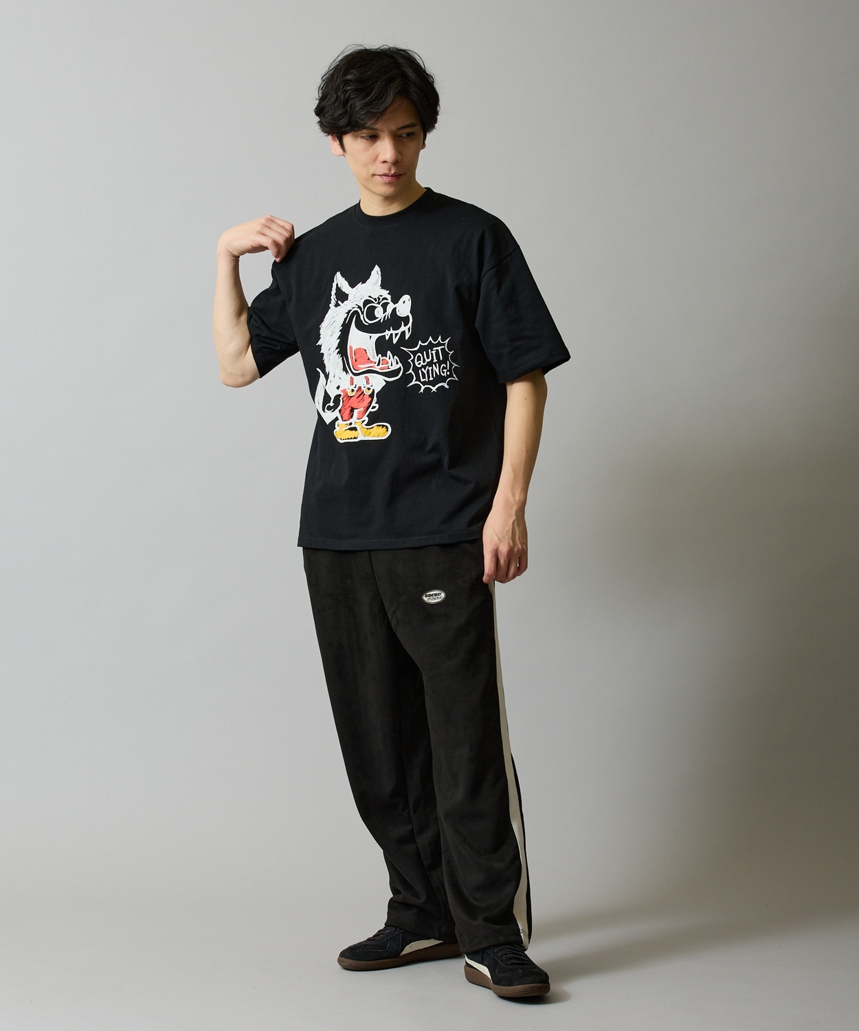 Attention ※ウエストにゴムが入ったパンツのウエスト値は、推奨ウエストのサイズです。伸縮値では御座いませんのでご注意下さい。 ※大量生産による生産過程におきまして、 若干の個体差(1cmから2cm)が生じる場合がございます。 それ以上の差異がある場合は弊社までお問い合わせください。 【サイズの測り方についての詳細はこちら】 ※サイトに掲載されている商品は、モニター環境により実際のものと素材感・色が若干異なって見える場合がございます。 ※加工具合により掲載画像との誤差が見られる場合もございます。 予めご了承くださいますようお願い申し上げます。 image ![]() ![]() ![]() ![]() ![]() ![]() ![]() ![]() ![]() ![]() ![]() ![]() ![]() ![]() ![]() ![]() ![]() ![]() ヴィンテージライクなクレヨンタッチ ウルフプリント 半袖Tシャツ ●コットン100%の手持ち感のしっかりとしたオリジナルボディを使用 ●ストリートシーンを反映した、ゆったりとしたトレンドのサイズ感 ●フロントのコミックライクなプリントが可愛い ●定番のブラック、アッシュグレー、ホワイトのカラー展開 定番のキャラクターからタギング風のイラストやグラフィティロゴ、 オマージュデザインまで、毎シーズンたっぷりと遊び心があって目を引く可愛らしいデザインが人気の秘訣。 ストリート、スケーター、韓国ファッションにオススメでワイドシルエットのチノパンやカーゴパンツ、デニムパンツとの相性バツグン。 男性にはもちろん、メンズライクな女性にも着ていただきたい仕上がりになりました。 ヴィンテージライクなクレヨンタッチ ウルフプリント 半袖Tシャツ