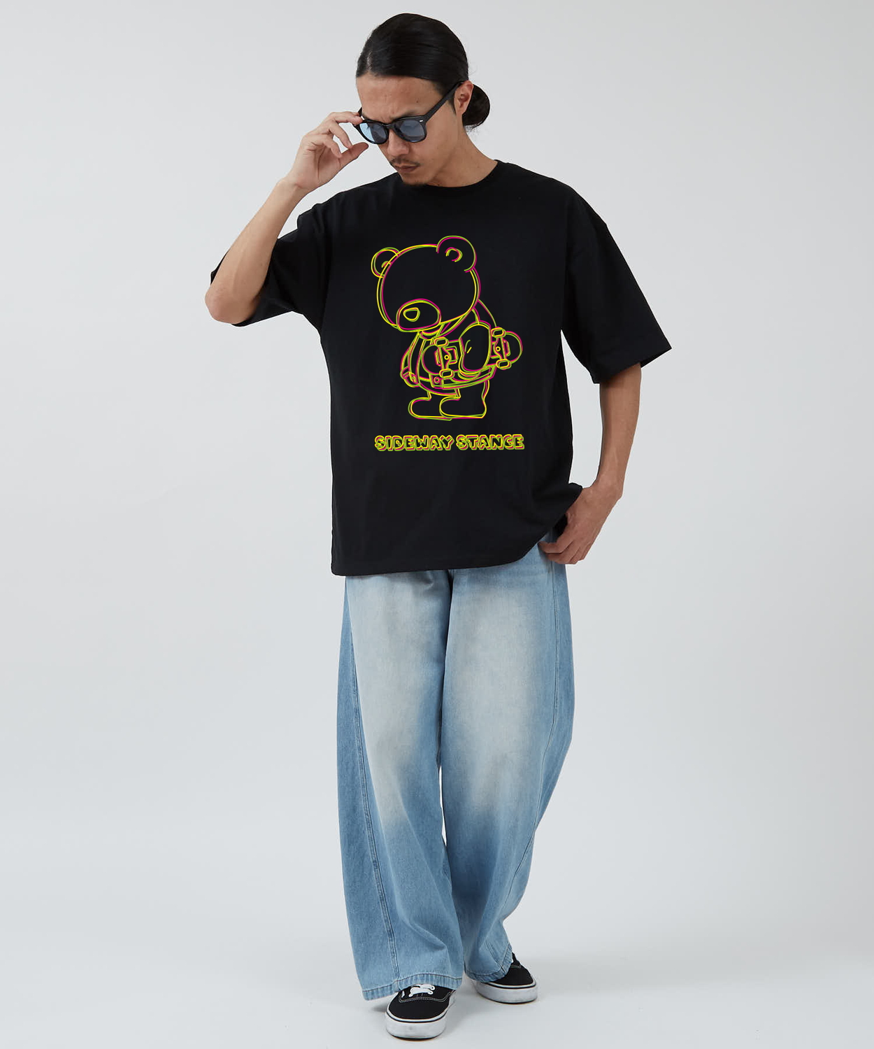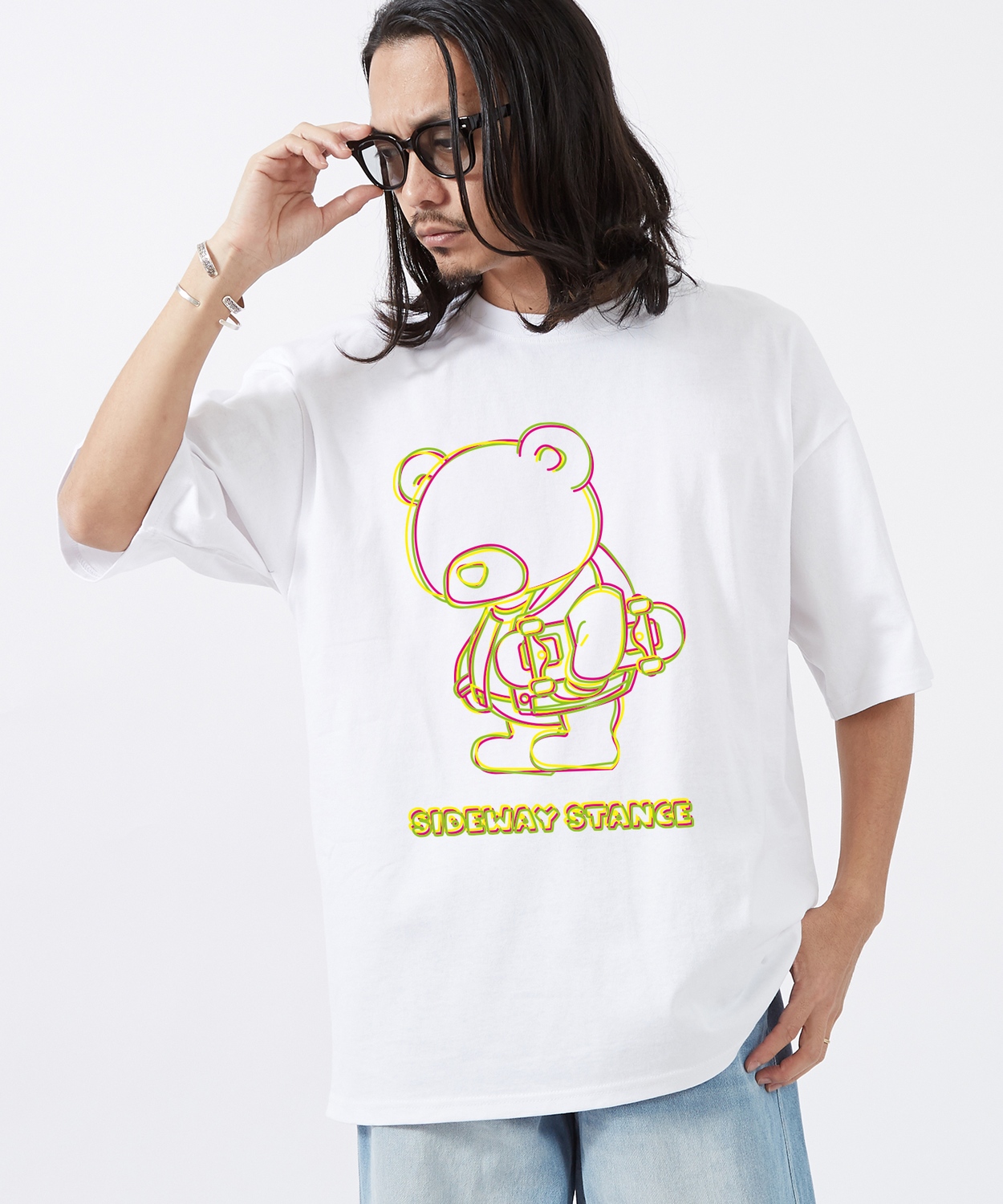 Item Info 光るラインの存在感 SIDEWAY STANCE ネオンダウナーベアー半袖Tシャツ ●コットン100%の手持ち感のしっかりとしたオリジナルボディを使用 ●ストリートシーンを反映した、ゆったりとしたトレンドのサイズ感 ●発色の良いベアーのネオンデザインが躍動感を演出 ●定番のブラック、ホワイトのカラー展開 定番のキャラクターからタギング風のイラストやグラフィティロゴ、 オマージュデザインまで、毎シーズンたっぷりと遊び心があって目を引く可愛らしいデザインが人気の秘訣。 ストリート、スケーター、韓国ファッションにオススメでワイドシルエットのチノパンやカーゴパンツ、デニムパンツとの相性バツグン。 男性にはもちろん、メンズライクな女性にも着ていただきたい仕上がりになりました。 Item Size