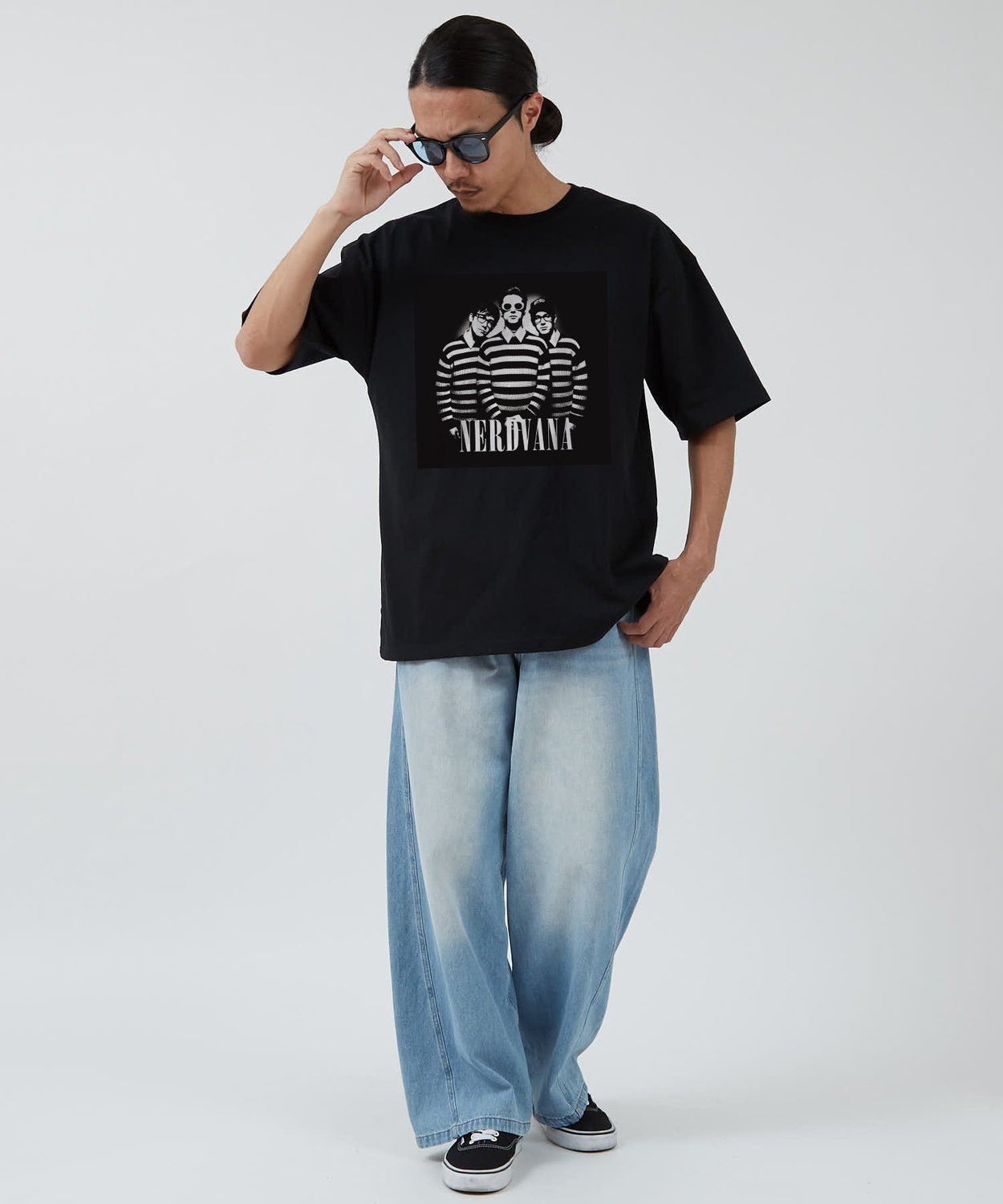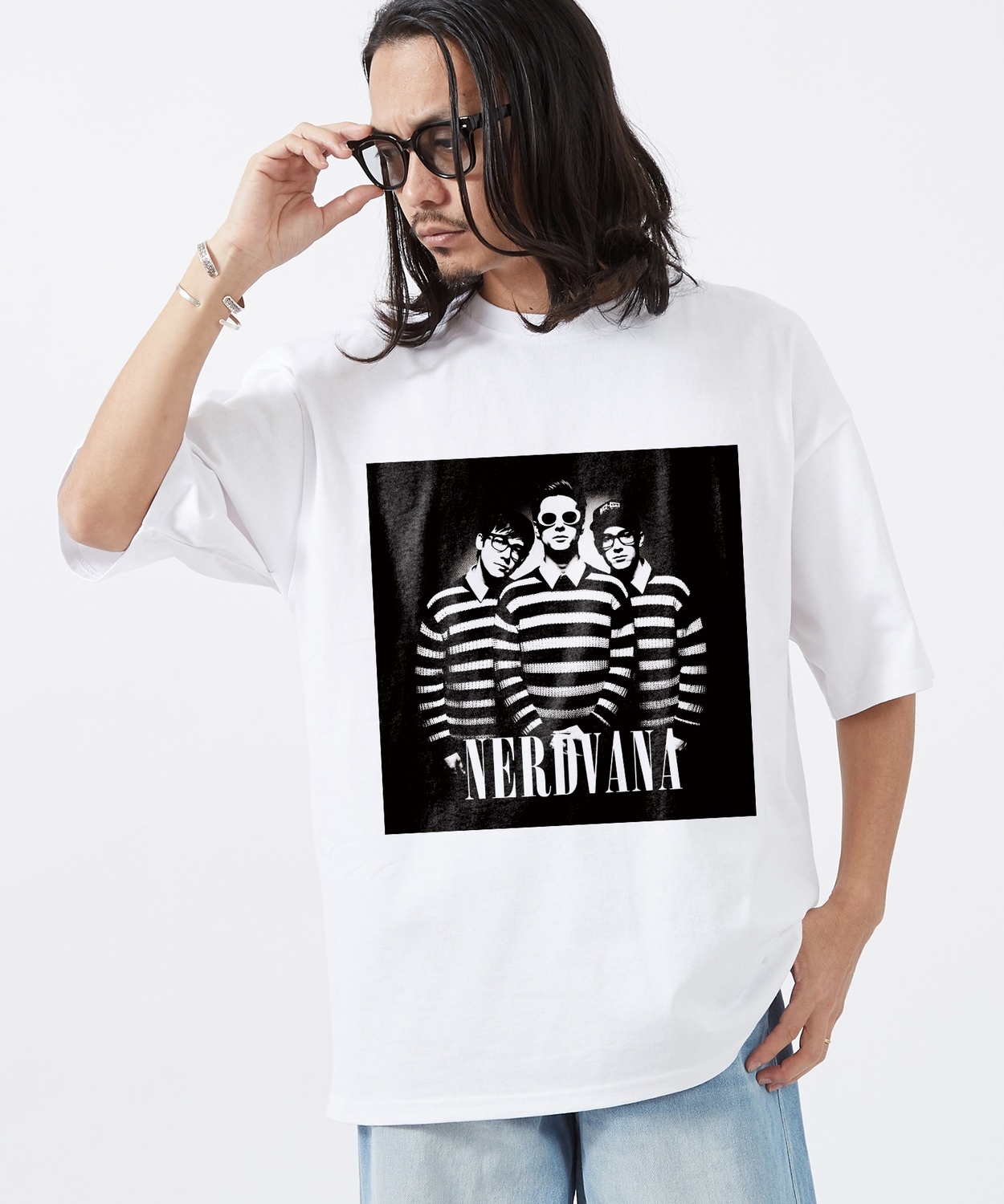 Item Info アイコニックなグラフィックをナードな雰囲気にアレンジした、 NERDVANA モノクロ フォト 半袖Tシャツをご紹介。 ●コットン100%の手持ち感のしっかりとしたオリジナルボディを使用 ●ストリートシーンを反映した、ゆったりとしたトレンドのサイズ感 ●レトロかつストリートな印象のモノクロフォトプリント ●定番のブラック、ホワイトのカラー展開 「NERDVANA」。それは、ナードたちの楽園。 90年代を代表するロックバンドのグラフィックを、コミカルで"ナード"な雰囲気にオマージュしたフォトTシャツが登場。 パロディでありながら、どこかスタイリッシュに仕上げたデザインは、周りと差をつけたい大人の遊び心を満たします。 古着MIXやストリートスタイルにはもちろん、モードな着こなしのスパイスとしても。 男女問わず着ていただける、ジェンダーレスなアイテムです。 Item Size