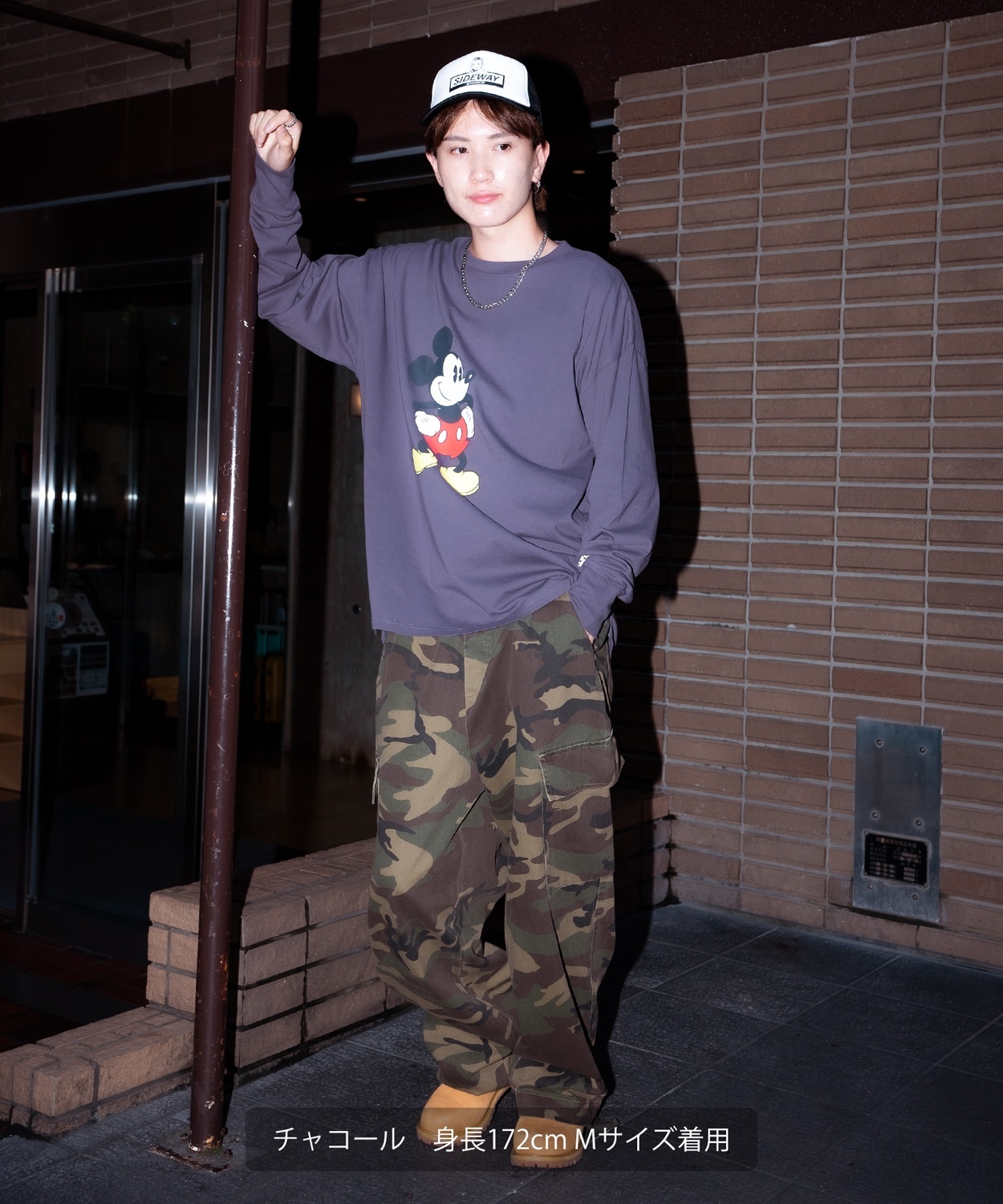 Attention ※ウエストにゴムが入ったパンツのウエスト値は、推奨ウエストのサイズです。伸縮値では御座いませんのでご注意下さい。 ※大量生産による生産過程におきまして、 若干の個体差(1cmから2cm)が生じる場合がございます。 それ以上の差異がある場合は弊社までお問い合わせください。 【サイズの測り方についての詳細はこちら】 ※サイトに掲載されている商品は、モニター環境により実際のものと素材感・色が若干異なって見える場合がございます。 ※加工具合により掲載画像との誤差が見られる場合もございます。 予めご了承くださいますようお願い申し上げます。 image ![]() ![]() ![]() ![]() ![]() ![]() ![]() ![]() ![]() ![]() ![]() ![]() ![]() ![]() ![]() ![]() ![]() 大人気の「MICKEY MOUSE」のプリントTシャツがついに登場!●コットン100%で心地よい肌触り●ルーズフィットでゆったりシルエット●フロントプリントの為羽織り物との相性も◎ゆるっと着こなすオーバーサイズロンTが登場。フロントに大きく施されたキャラクターグラフィックが、ストリートコーデに遊び心をプラス。トレンド感がでるY2K・ストリート、カジュアルなスタイリングにお勧めでデニムやカーゴパンツ、スウェットとの相性◎ユニセックスなので女性にもおすすめです。 ミッキーマウスのプリントがかわいい一枚