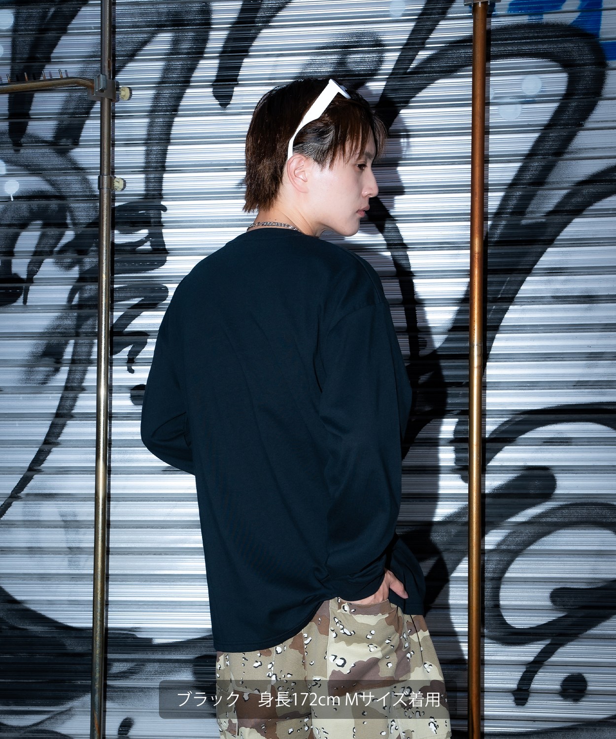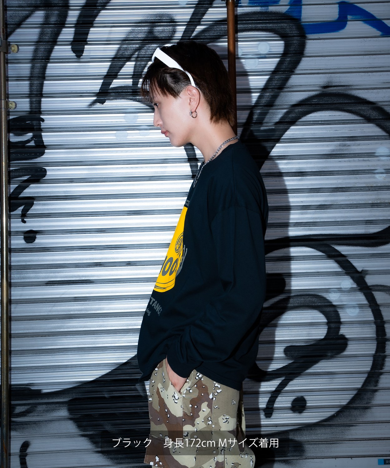 ストリートグラフィティタッチで描き下ろしたプリントが印象的なロンT。