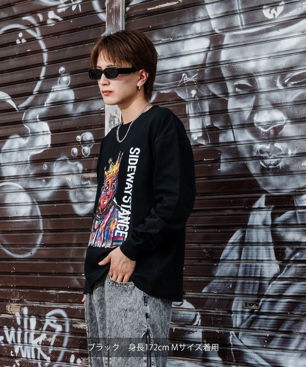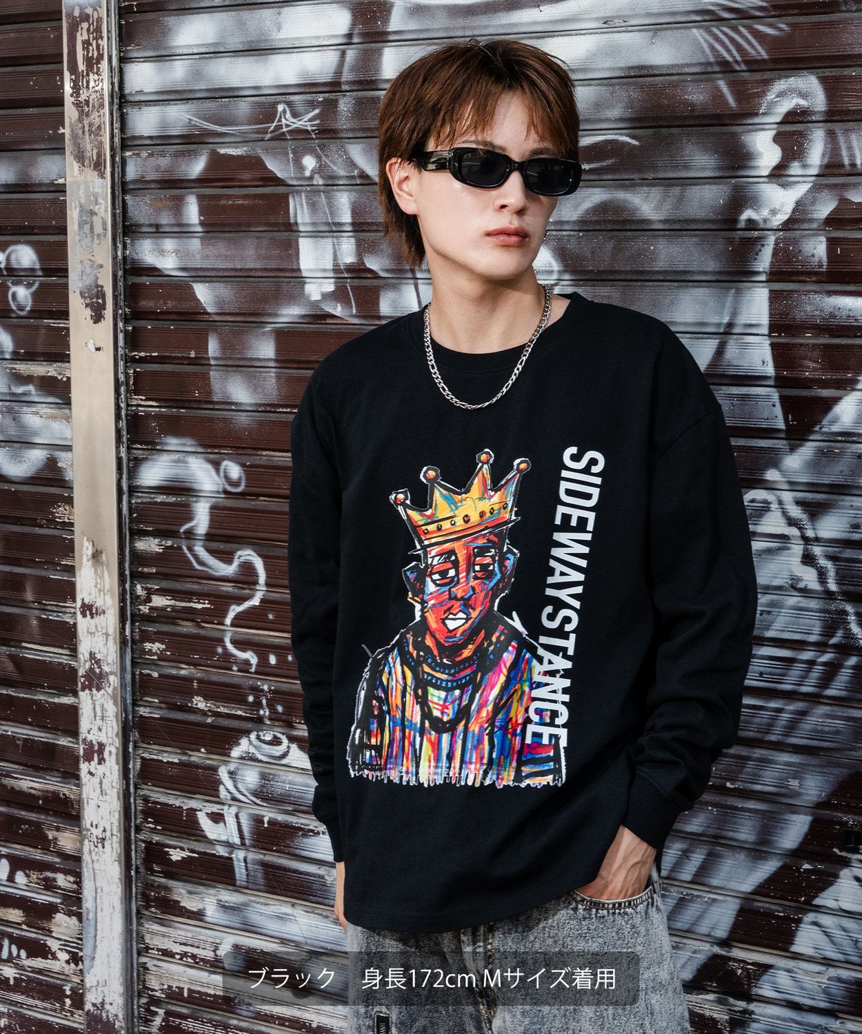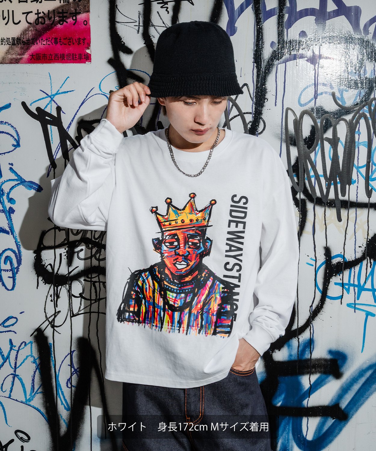 ストリートグラフィティタッチで描き下ろしたプリントが印象的なロンT。SIDEWAY STANCEならではのキャッチーな長袖Tシャツが新登場。 ●誰もが使いやすい定番のブラックとホワイトをセレクト●コットン100%の程よい質感が魅力のオリジナルボディを採用●クレヨンで描いたようなカラフルなタッチで表現した王冠をかぶった人物定番のキャラクターからタギング風のイラストやグラフィティロゴ、オマージュデザインまで、毎シーズンたっぷりと遊び心があって目を引く可愛らしいデザインが人気の秘訣。ストリート、スケーター、韓国ファッションにオススメでワイドシルエットのチノパンやカーゴパンツ、デニムパンツとの相性バツグン。男性にはもちろん、メンズライクな女性にも着ていただきたい仕上がりになりました。【ブランド】SIDEWAY STANCE/サイドウェイスタンス「YOU CAN RELAX EVERY DAY - 毎日がリラックスできる」をコンセプトに、横ノリカルチャーとストリートの要素を融合。キャッチーなグラフィックとユニセックスなデザインで、日常に""遊び心”と""自由""をプラスするライフスタイルブランド。
