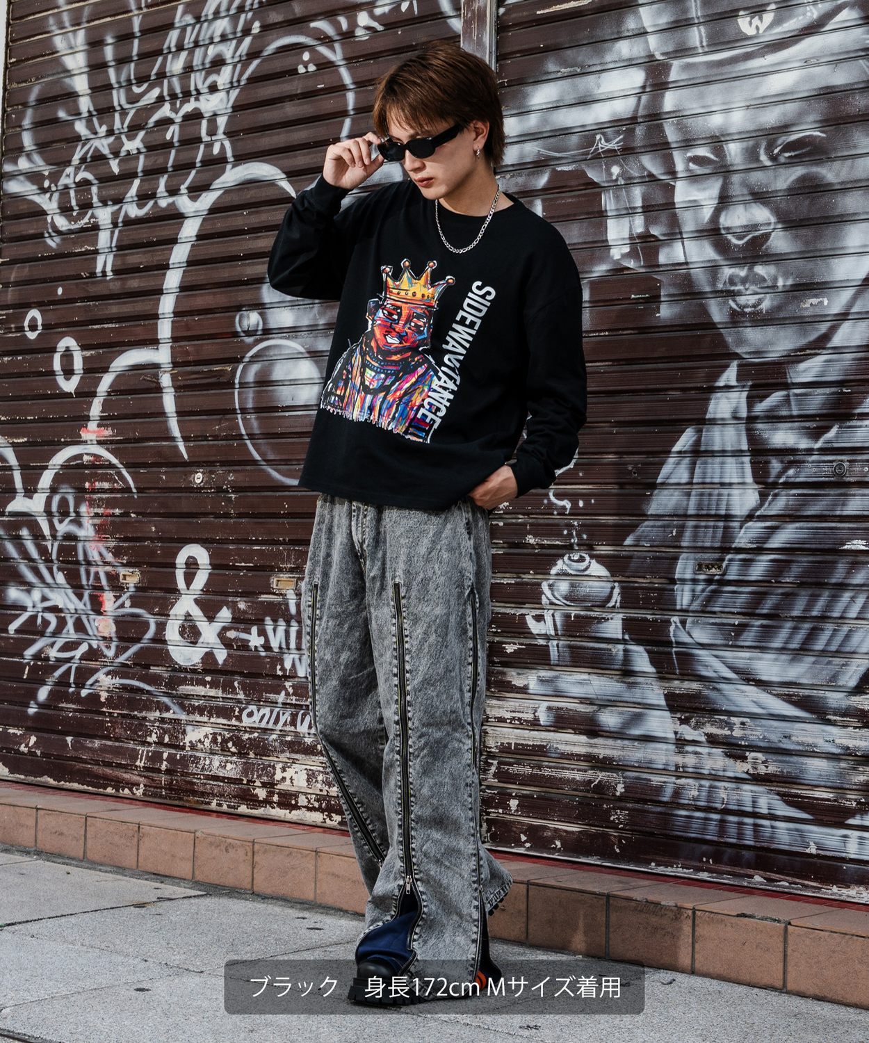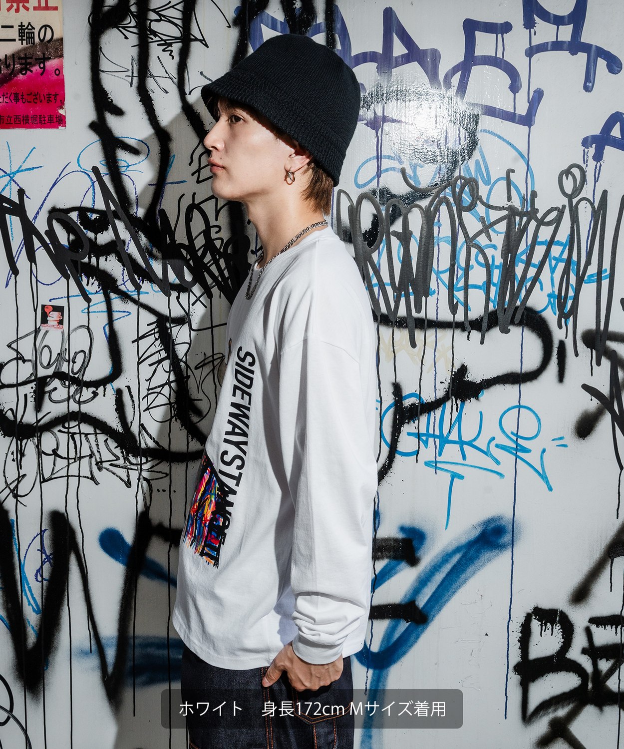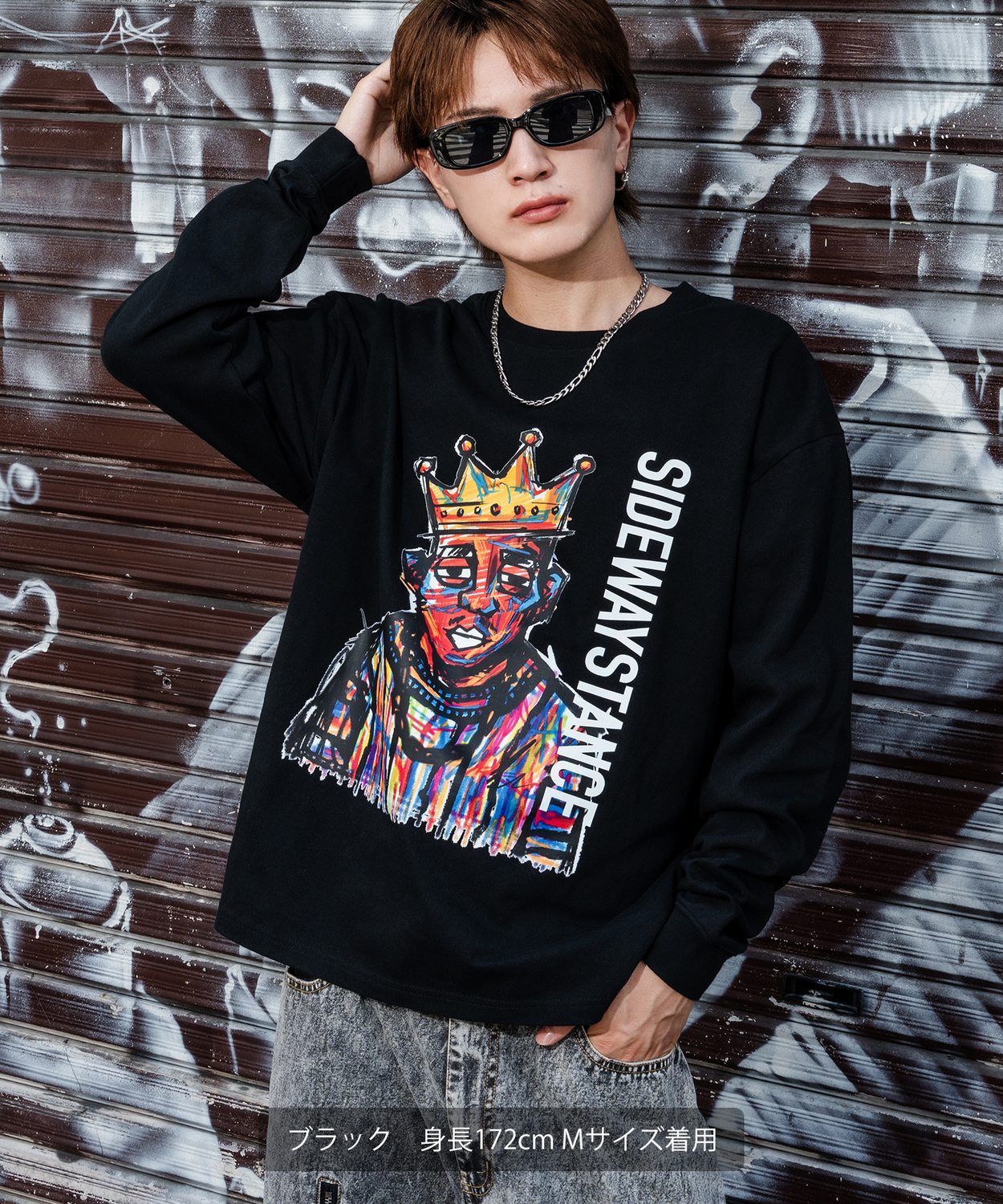 ストリートグラフィティタッチで描き下ろしたプリントが印象的なロンT。SIDEWAY STANCEならではのキャッチーな長袖Tシャツが新登場。 ●誰もが使いやすい定番のブラックとホワイトをセレクト●コットン100%の程よい質感が魅力のオリジナルボディを採用●クレヨンで描いたようなカラフルなタッチで表現した王冠をかぶった人物定番のキャラクターからタギング風のイラストやグラフィティロゴ、オマージュデザインまで、毎シーズンたっぷりと遊び心があって目を引く可愛らしいデザインが人気の秘訣。ストリート、スケーター、韓国ファッションにオススメでワイドシルエットのチノパンやカーゴパンツ、デニムパンツとの相性バツグン。男性にはもちろん、メンズライクな女性にも着ていただきたい仕上がりになりました。【ブランド】SIDEWAY STANCE/サイドウェイスタンス「YOU CAN RELAX EVERY DAY - 毎日がリラックスできる」をコンセプトに、横ノリカルチャーとストリートの要素を融合。キャッチーなグラフィックとユニセックスなデザインで、日常に""遊び心”と""自由""をプラスするライフスタイルブランド。