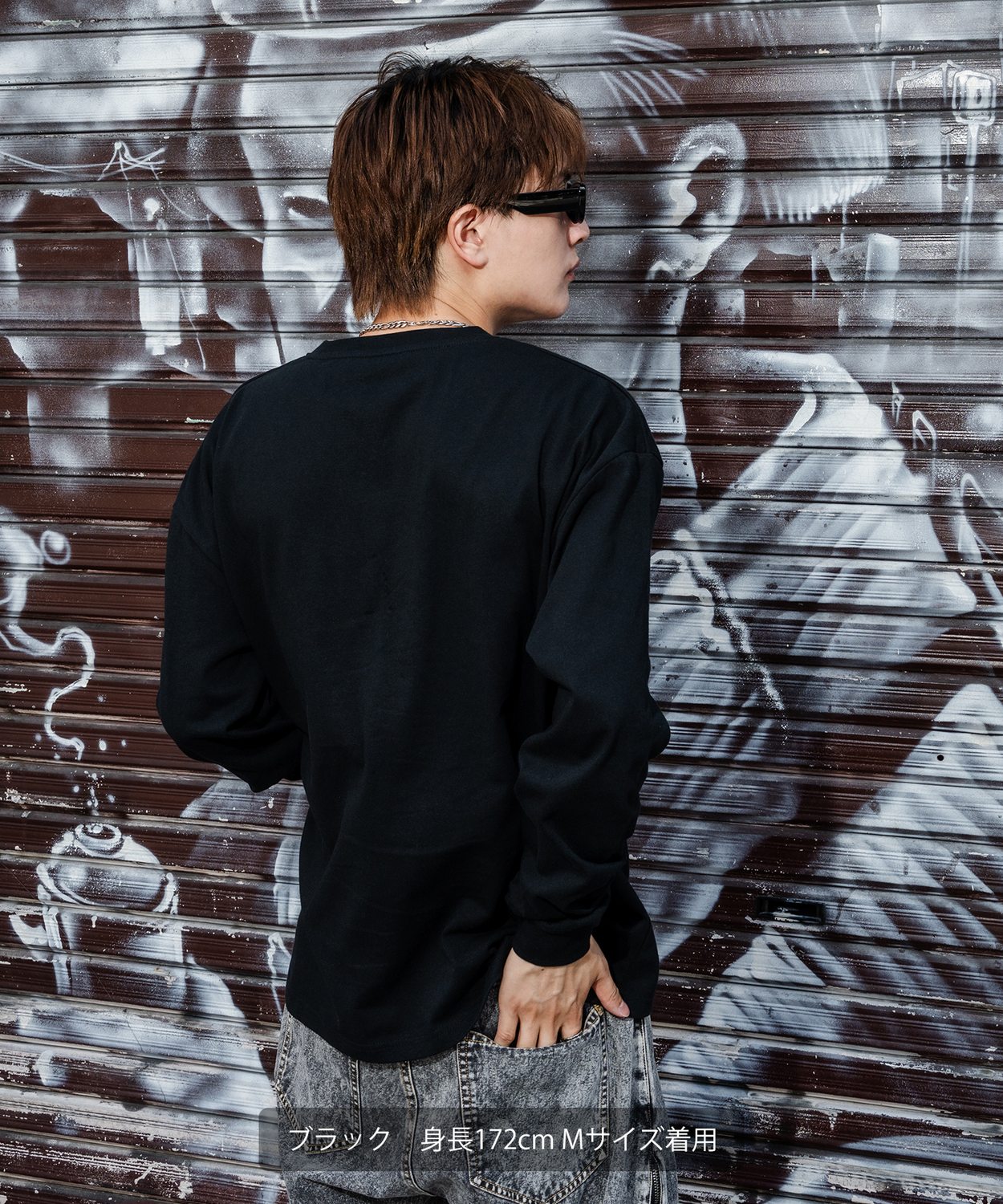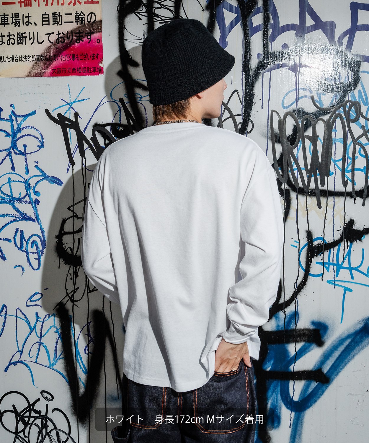 ストリートグラフィティタッチで描き下ろしたプリントが印象的なロンT。
