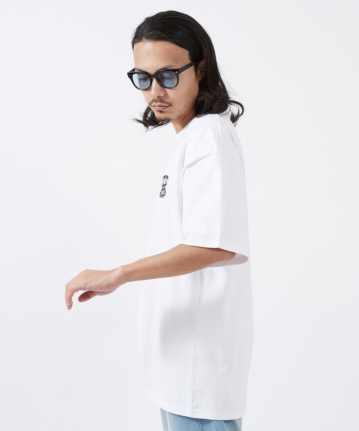 胸元のドクロプリントがアクセントになったワンポイントTシャツをご紹介。