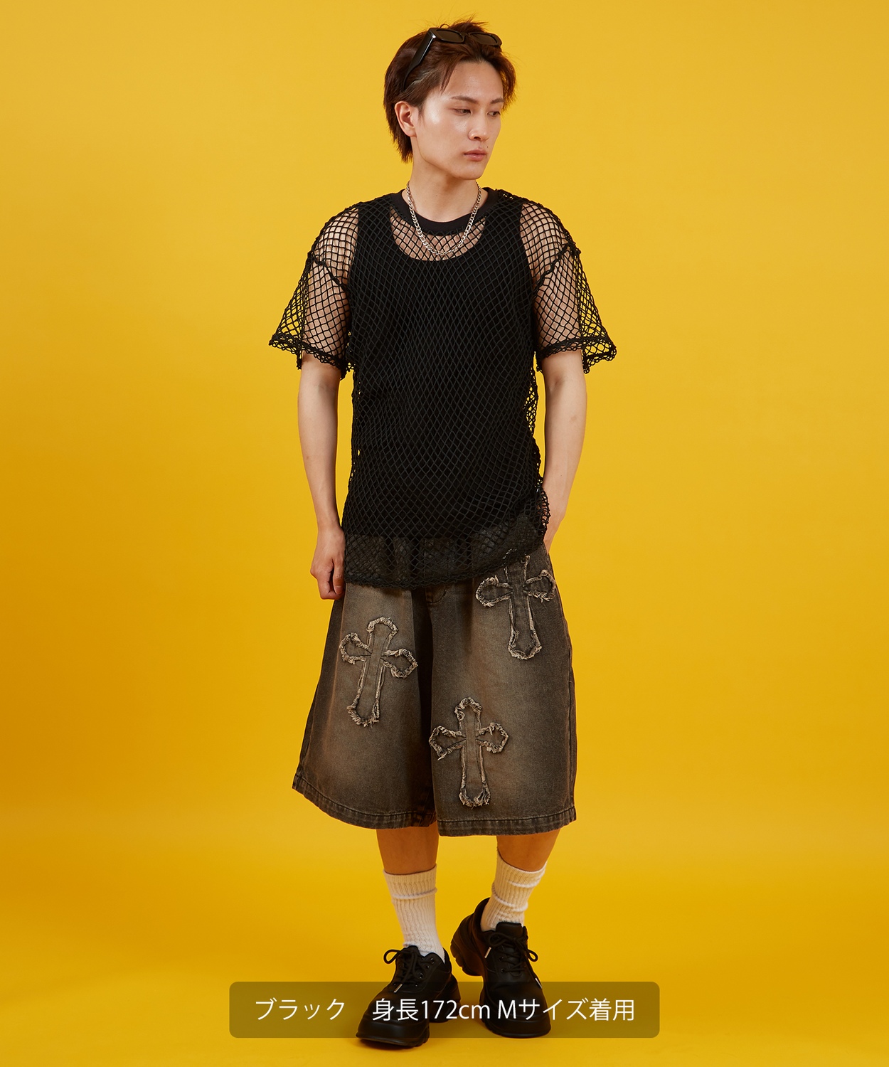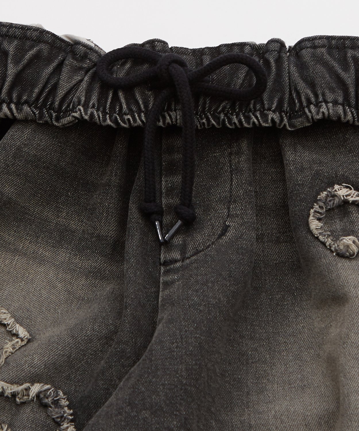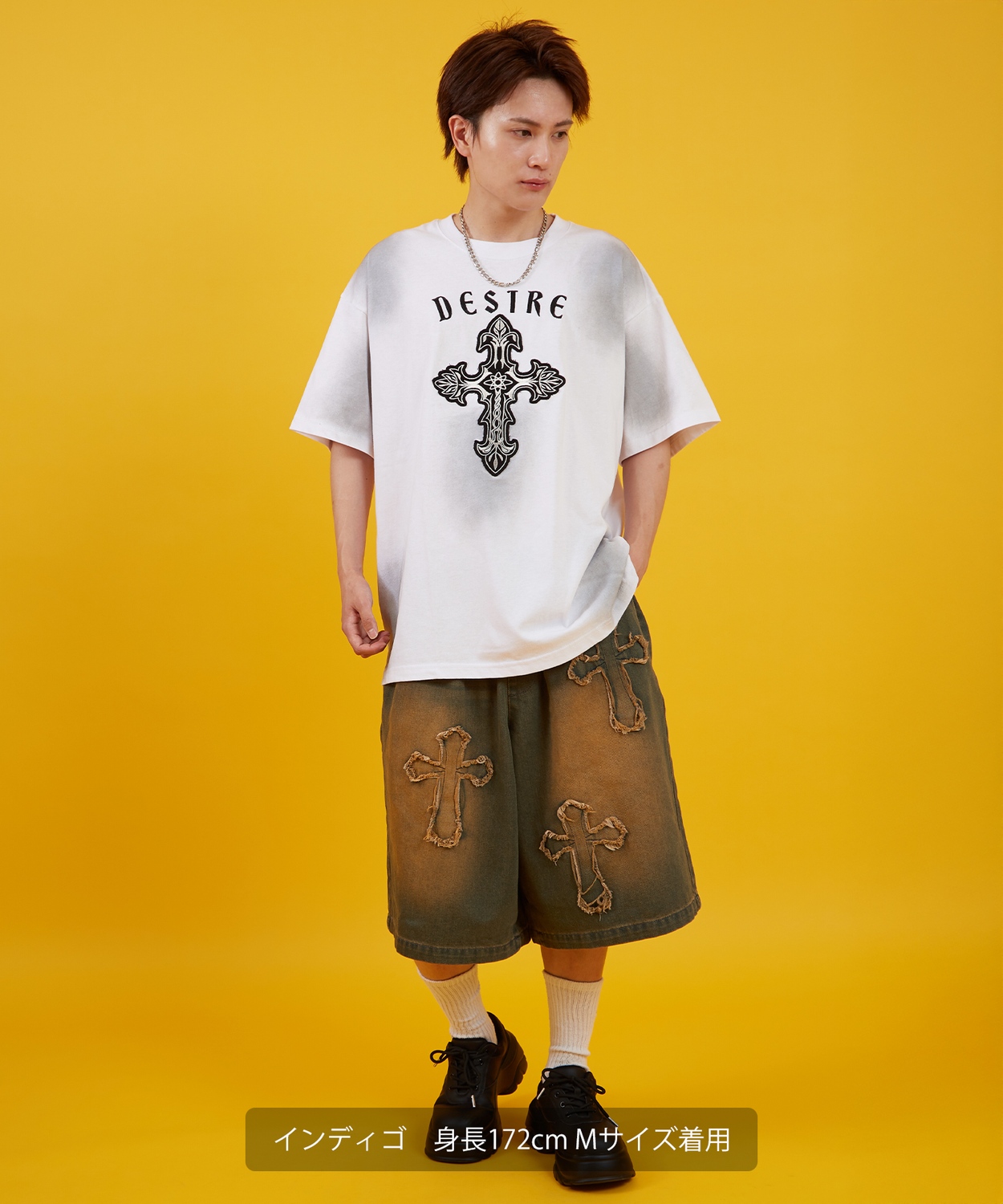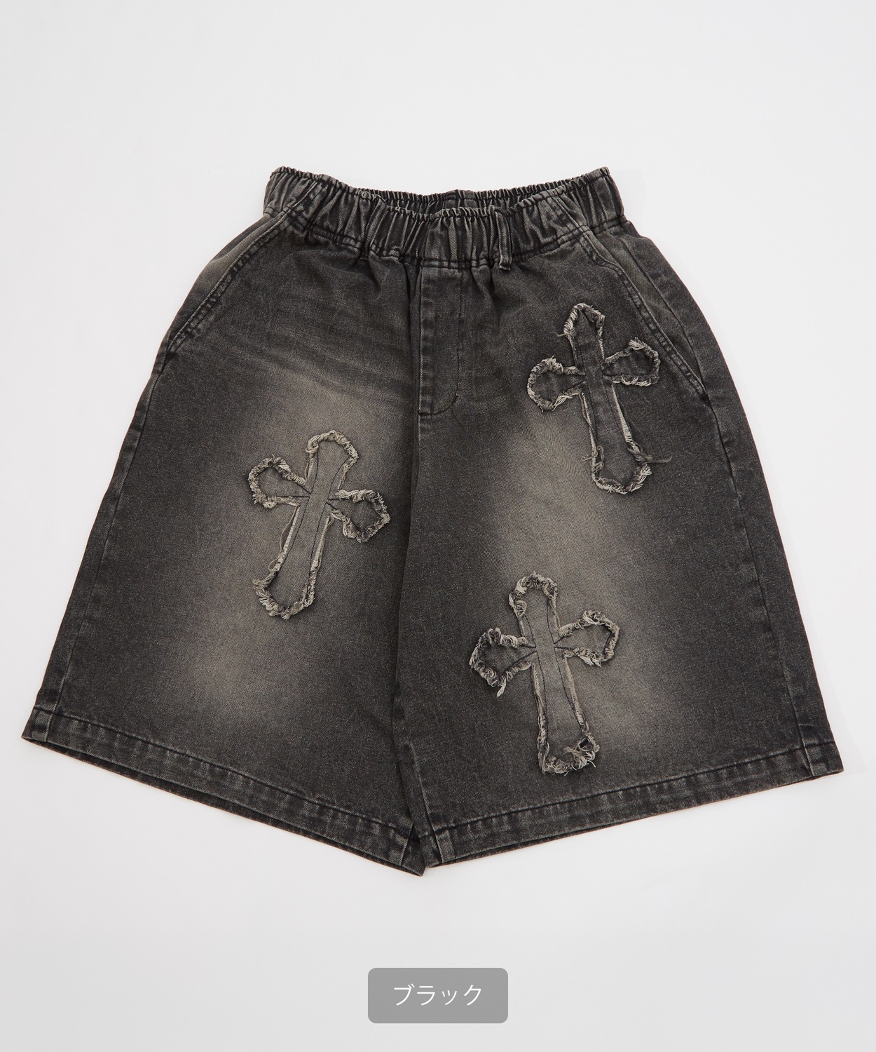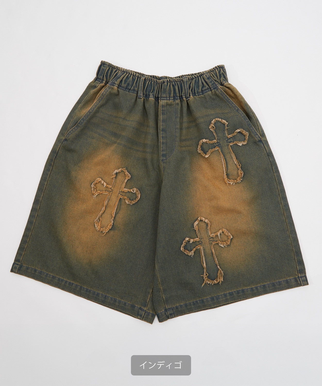 「主役は君だ。大胆なクロスパッチで差をつける。」大人のための個性派ショートパンツをご紹介。●程よい厚さで10ozデニム●人気のブラックデニムと定番のインディゴをセレクト●ゴムウエストを装着したイージーパンツヴィンテージ感のある自然な風合いの色褪せたような加工でワイドシルエットでゆったりとしたTシャツやパーカーを合わせてのストリート、スケーター、韓国ファッション、Y2Kはもちろん定番のアメカジ、ワークスタイルにピッタリの一本。メンズライクなレディースにもオススメしたいアイテムです。