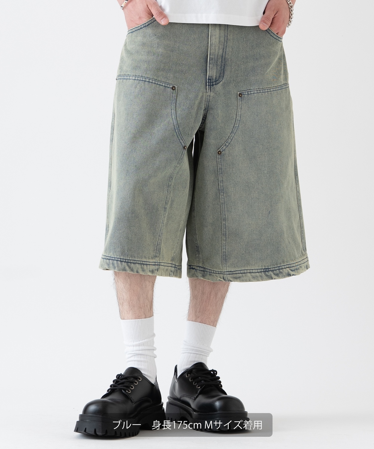 12oz デニム ダブルニー ハーフパンツ