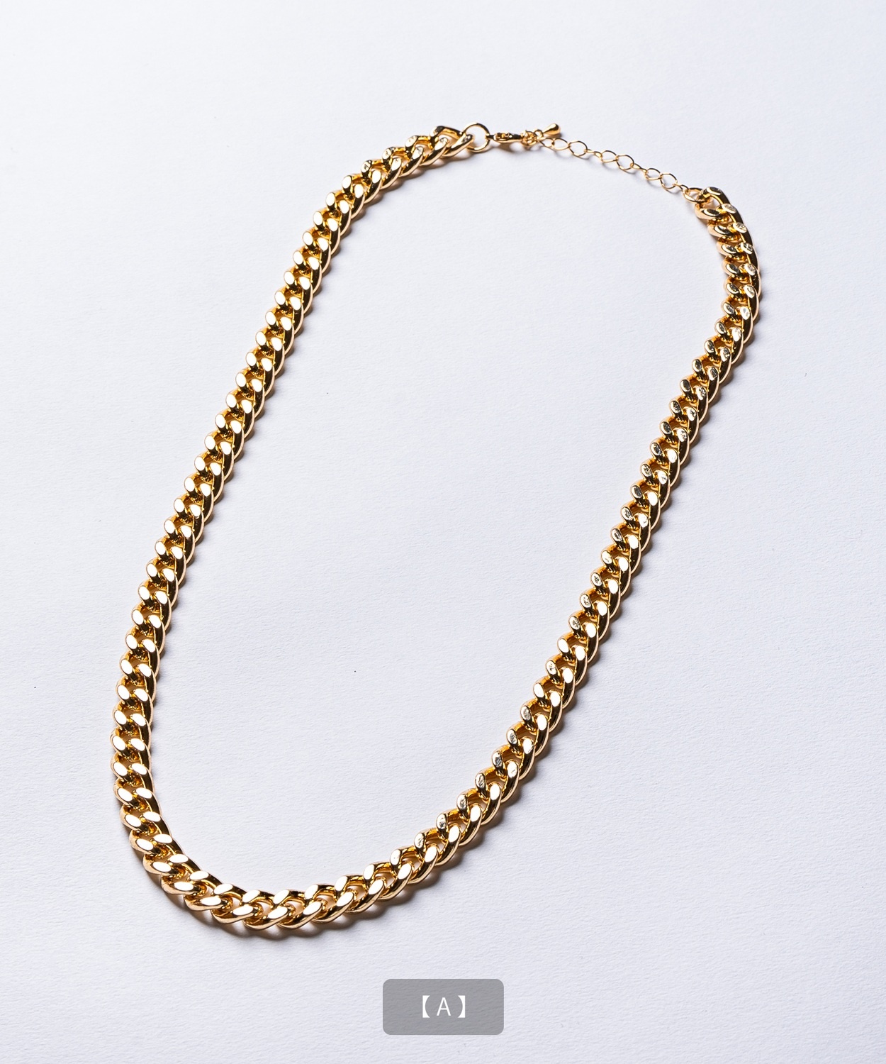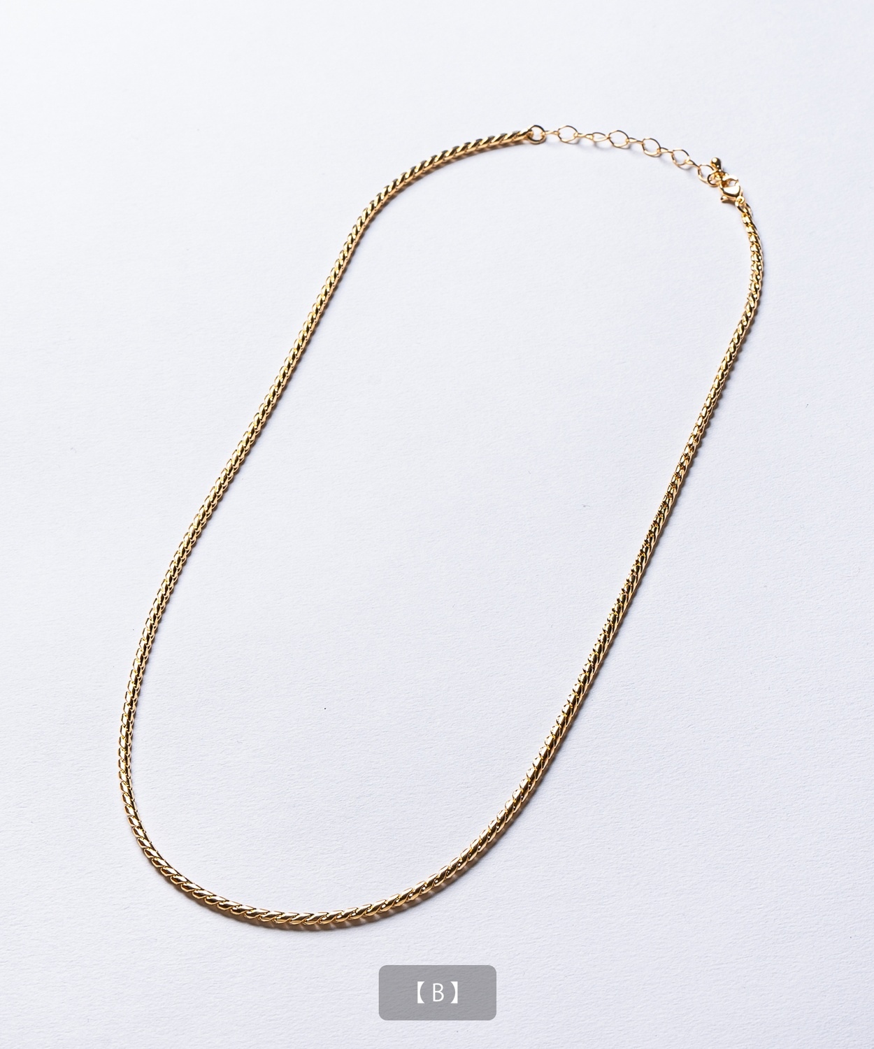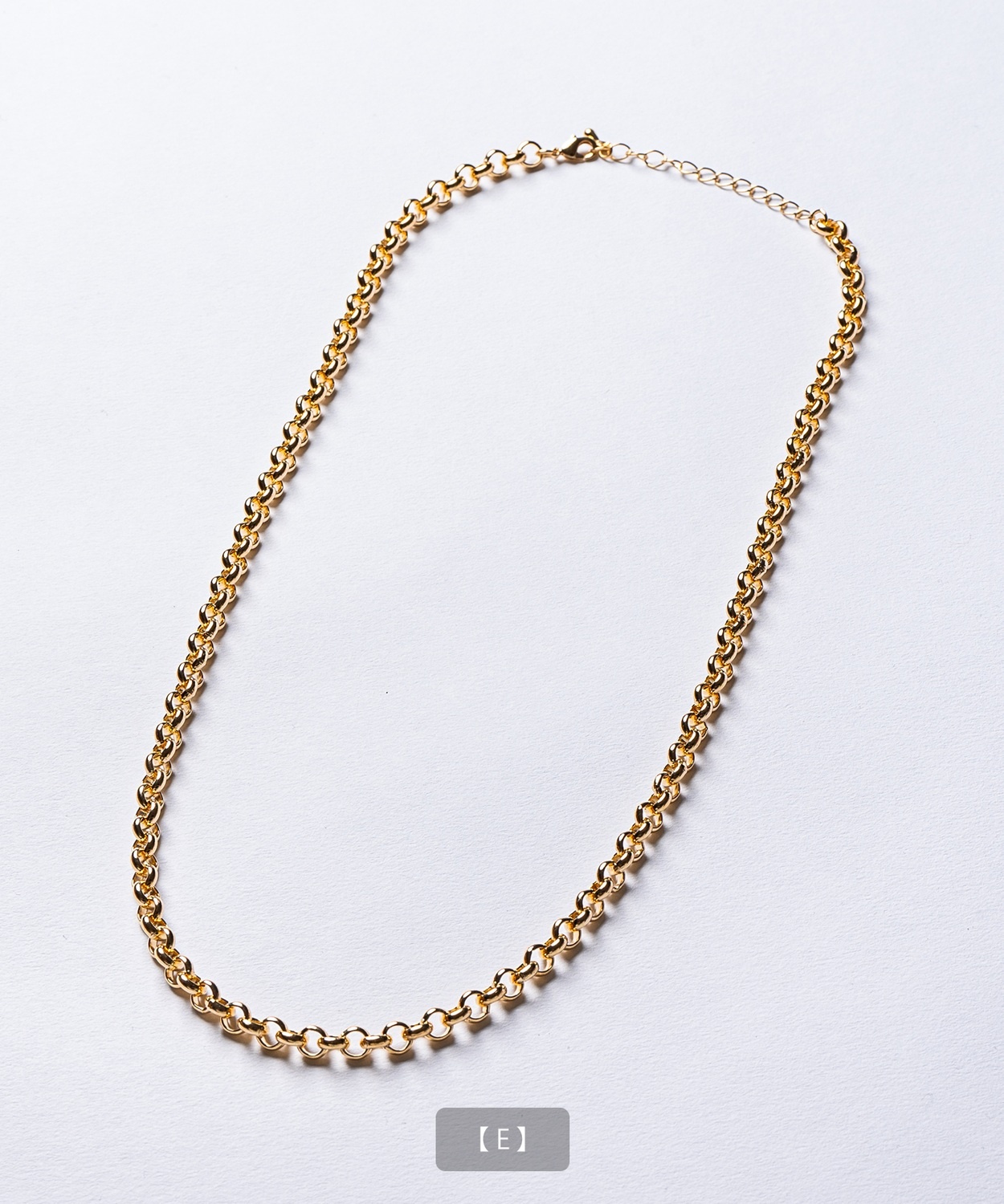 Attention ※ウエストにゴムが入ったパンツのウエスト値は、推奨ウエストのサイズです。伸縮値では御座いませんのでご注意下さい。 ※大量生産による生産過程におきまして、 若干の個体差(1cmから2cm)が生じる場合がございます。 それ以上の差異がある場合は弊社までお問い合わせください。 【サイズの測り方についての詳細はこちら】 ※サイトに掲載されている商品は、モニター環境により実際のものと素材感・色が若干異なって見える場合がございます。 ※加工具合により掲載画像との誤差が見られる場合もございます。 予めご了承くださいますようお願い申し上げます。 image ![]() ![]() ![]() ![]() ![]() ![]() ![]() ![]() ![]() ![]() ![]() ![]() ![]() ![]() ![]() ![]() ![]() ![]() ![]() スタイリングに品格と存在感をプラスするゴールドチェーンネックレス。 ●選べる多彩なチェーンデザインを展開 ●首元をすっきりと見せる絶妙な50cm丈 ●上品な光沢を放つゴールドコーティングを採用 ●ユニセックスで着用可能なシンプルデザイン 胸元に確かな存在感を放つ、洗練されたデザインのゴールドネックレスです。 Tシャツやスウェットなどのカジュアルな装いにはもちろん、シャツやセットアップなどのきれいめな着こなしのアクセントとしても活躍します。 適度な重厚感がありながら、長時間の着用でも疲れにくい軽快なつけ心地も魅力。きれいめからストリートまで幅広いスタイルに対応可能です。 パートナーとのペアアクセサリーや、大切な方へのプレゼントとしても喜ばれる、今シーズンのマストアイテムです。 首元に圧倒的な存在感と華やぎを!洗練されたゴールドの輝きでいつものコーデを格上げせよ!