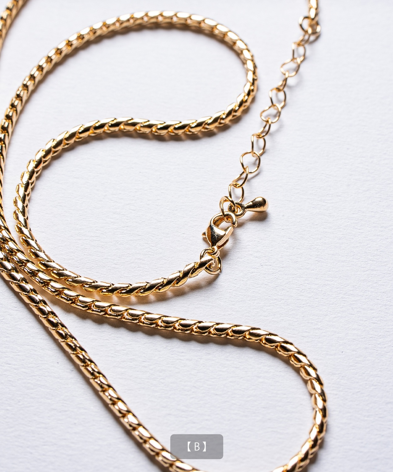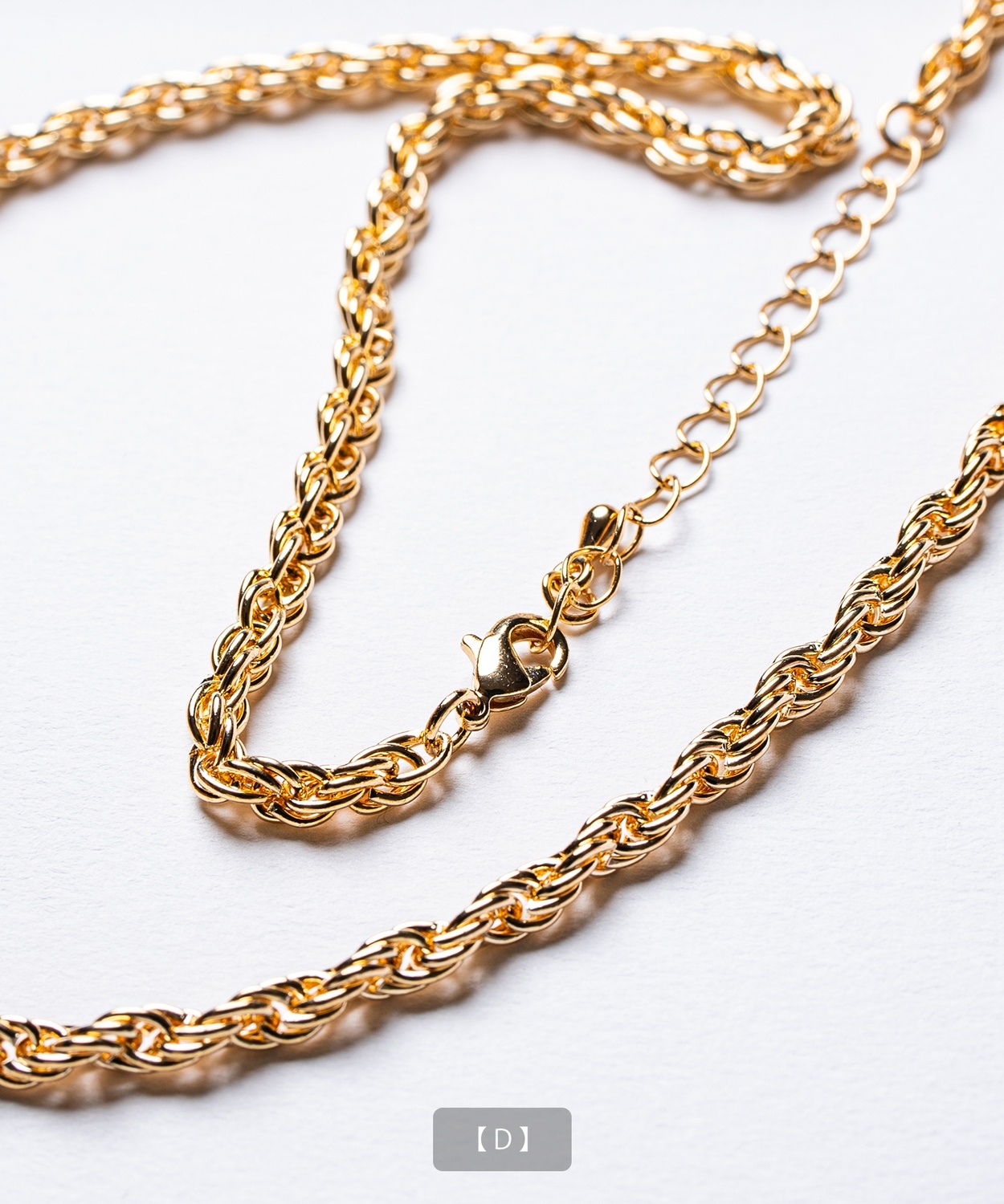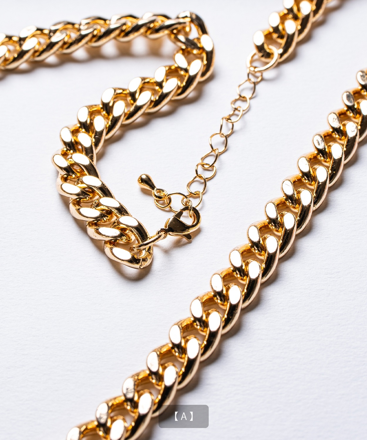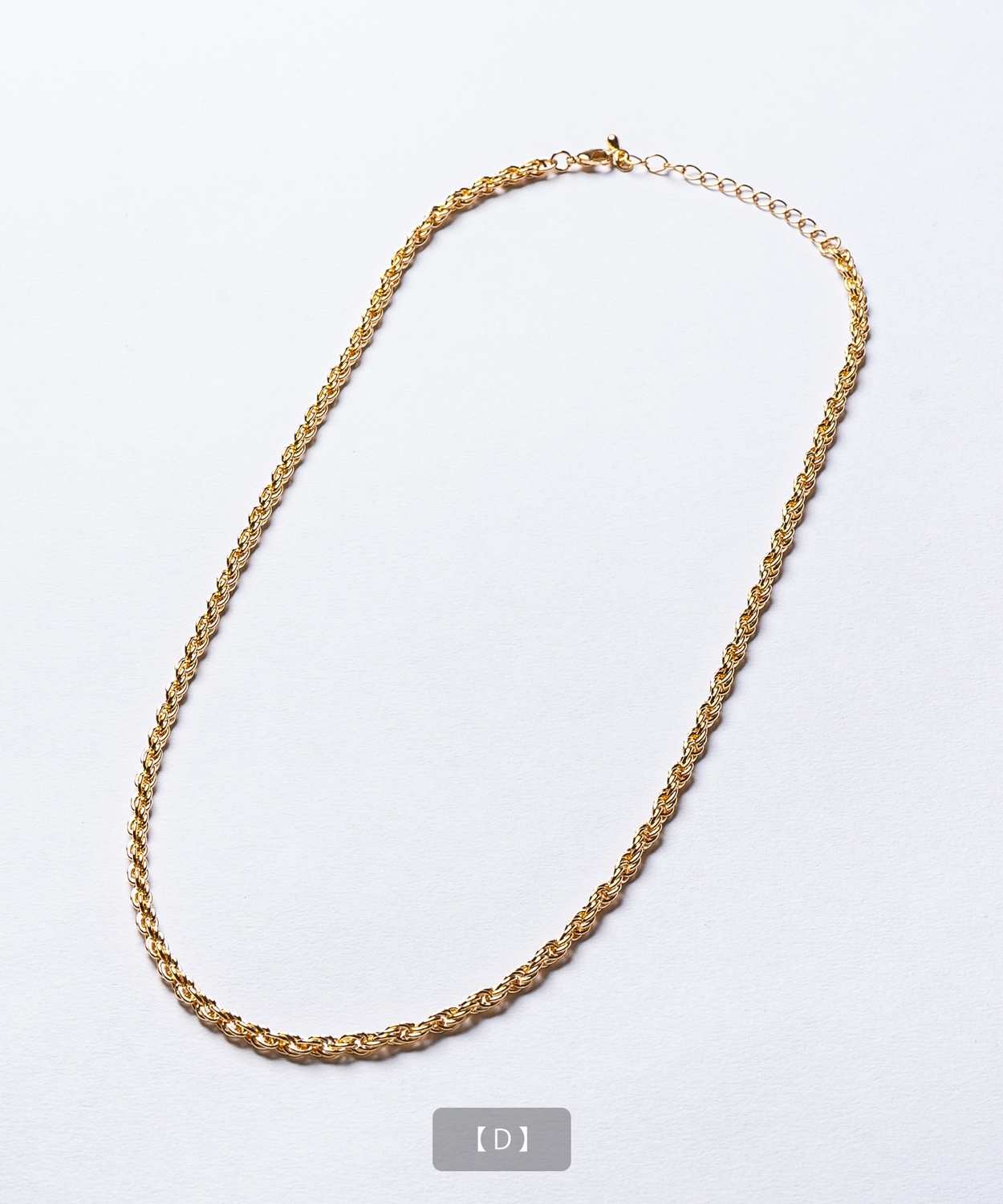 Attention ※ウエストにゴムが入ったパンツのウエスト値は、推奨ウエストのサイズです。伸縮値では御座いませんのでご注意下さい。 ※大量生産による生産過程におきまして、 若干の個体差(1cmから2cm)が生じる場合がございます。 それ以上の差異がある場合は弊社までお問い合わせください。 【サイズの測り方についての詳細はこちら】 ※サイトに掲載されている商品は、モニター環境により実際のものと素材感・色が若干異なって見える場合がございます。 ※加工具合により掲載画像との誤差が見られる場合もございます。 予めご了承くださいますようお願い申し上げます。 image ![]() ![]() ![]() ![]() ![]() ![]() ![]() ![]() ![]() ![]() ![]() ![]() ![]() ![]() ![]() ![]() ![]() ![]() ![]() スタイリングに品格と存在感をプラスするゴールドチェーンネックレス。 ●選べる多彩なチェーンデザインを展開 ●首元をすっきりと見せる絶妙な50cm丈 ●上品な光沢を放つゴールドコーティングを採用 ●ユニセックスで着用可能なシンプルデザイン 胸元に確かな存在感を放つ、洗練されたデザインのゴールドネックレスです。 Tシャツやスウェットなどのカジュアルな装いにはもちろん、シャツやセットアップなどのきれいめな着こなしのアクセントとしても活躍します。 適度な重厚感がありながら、長時間の着用でも疲れにくい軽快なつけ心地も魅力。きれいめからストリートまで幅広いスタイルに対応可能です。 パートナーとのペアアクセサリーや、大切な方へのプレゼントとしても喜ばれる、今シーズンのマストアイテムです。 首元に圧倒的な存在感と華やぎを!洗練されたゴールドの輝きでいつものコーデを格上げせよ!