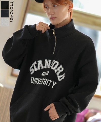 カレッジロゴプリント スウェット ハーフジップ トレーナー