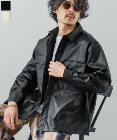 PUレザー オーバーサイズ CPOシャツ