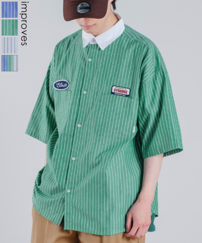 ワッペン刺しゅう クレリック 半袖 ワークシャツ