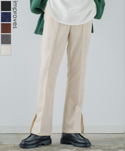 センタープリーツ サイドスリット フレアスラックス&デニムパンツ